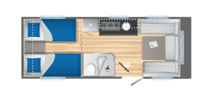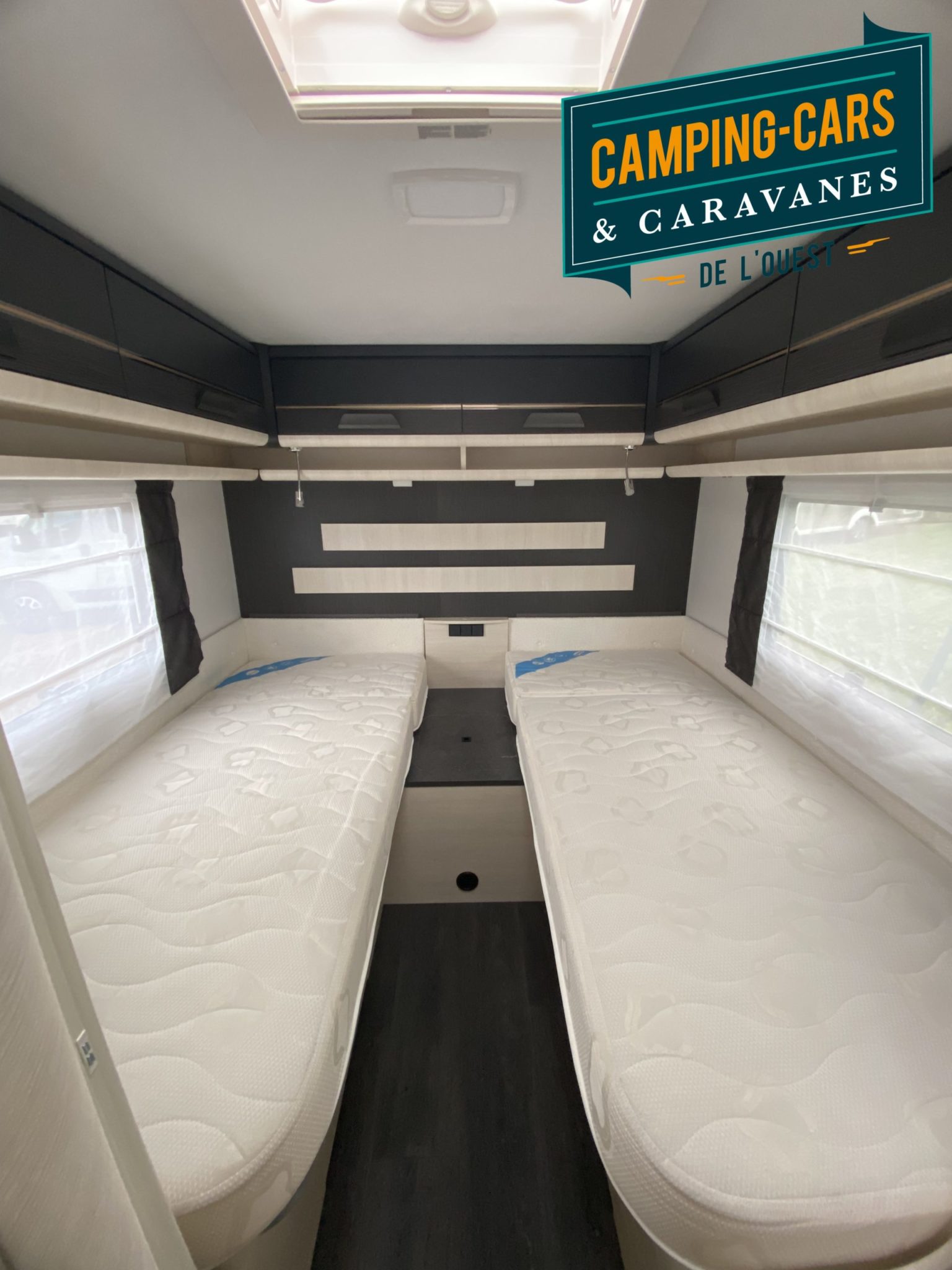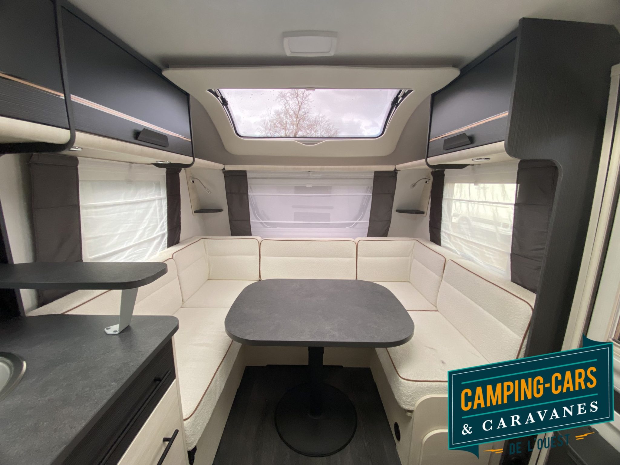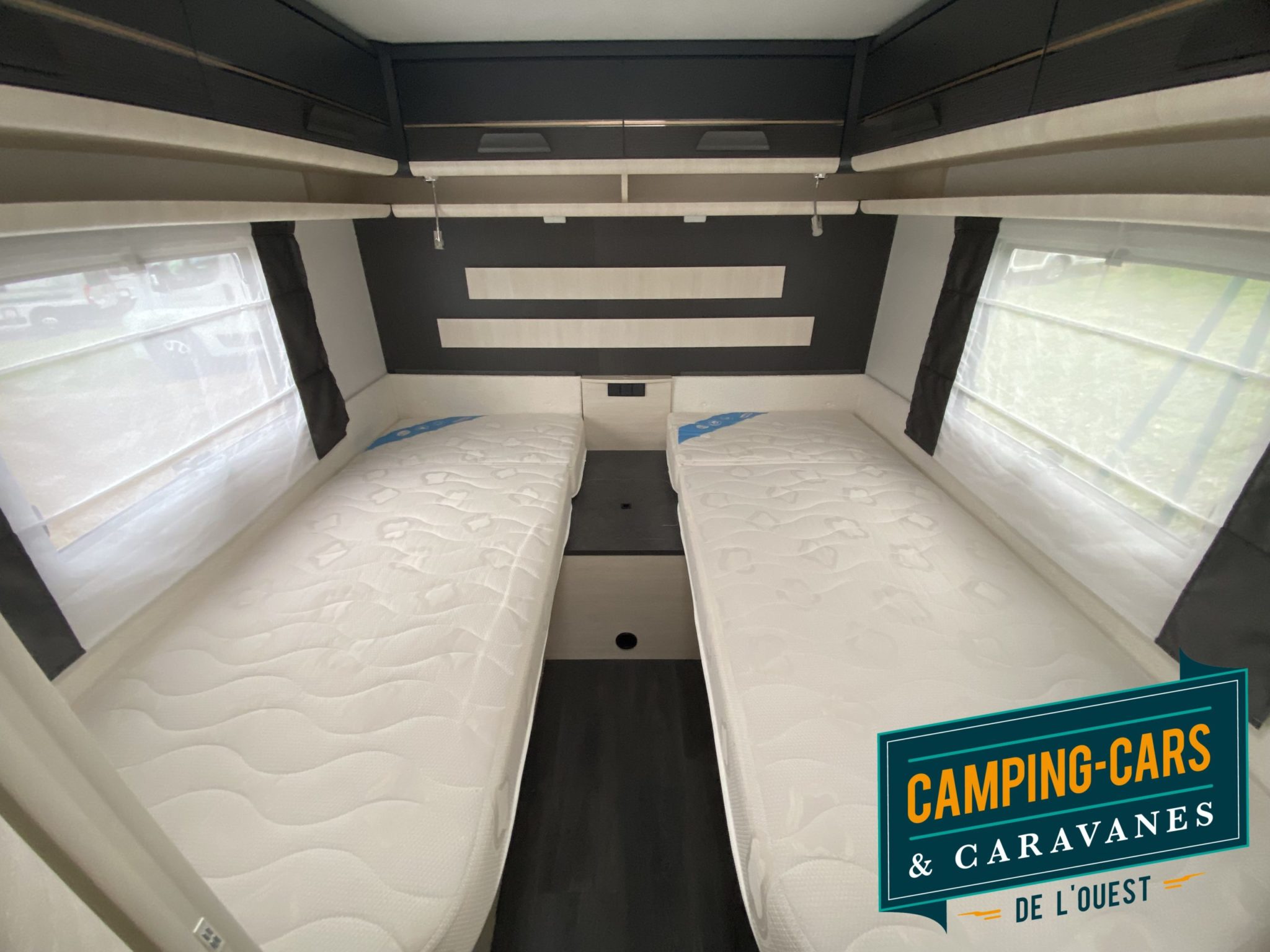 La Caravelair 542 Exclusive Line est une caravane haute de gamme avec des lits jumeaux, une salle de d’eau, un salon en U et de nombreux rangements en 5m60 de longueur intérieure.