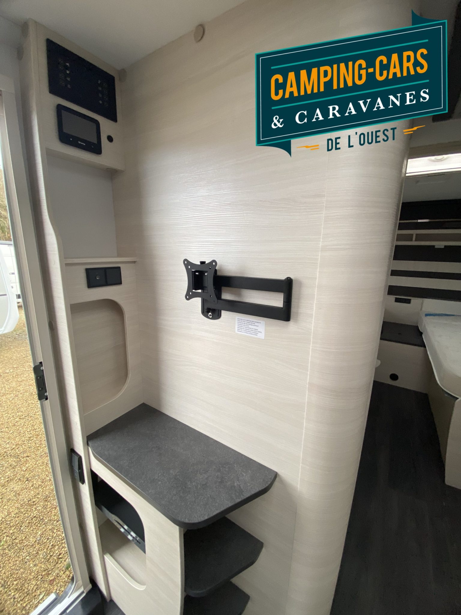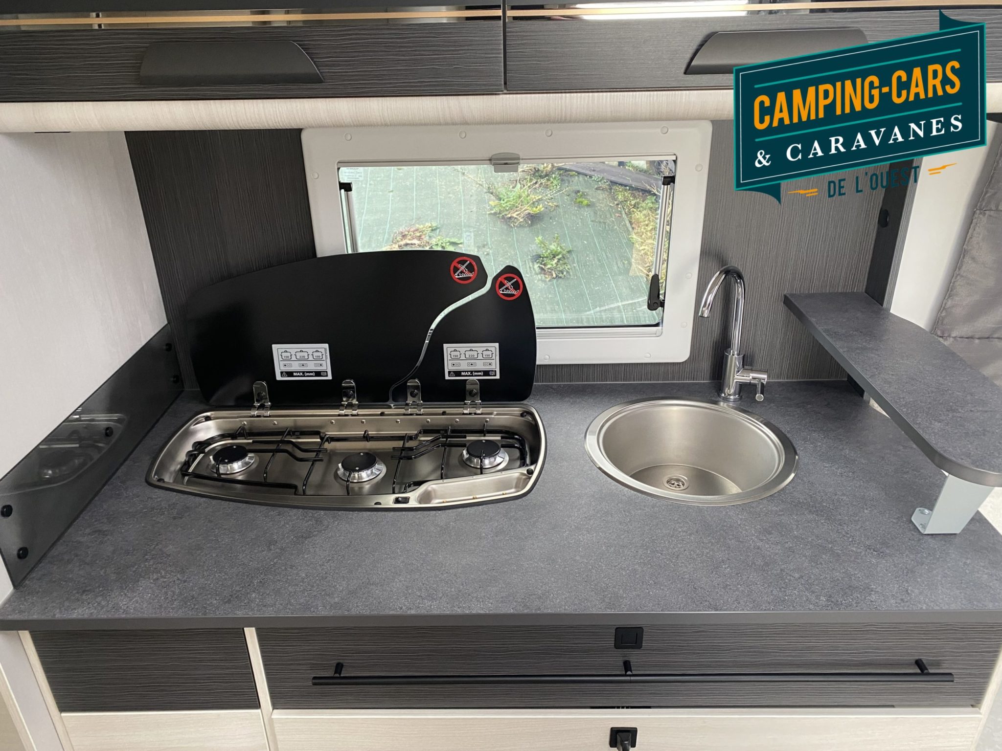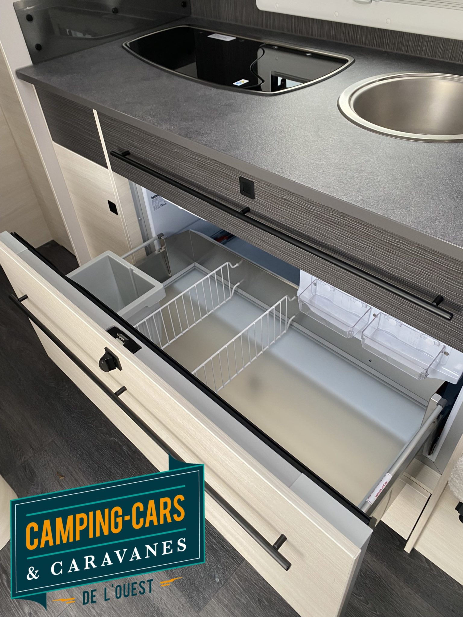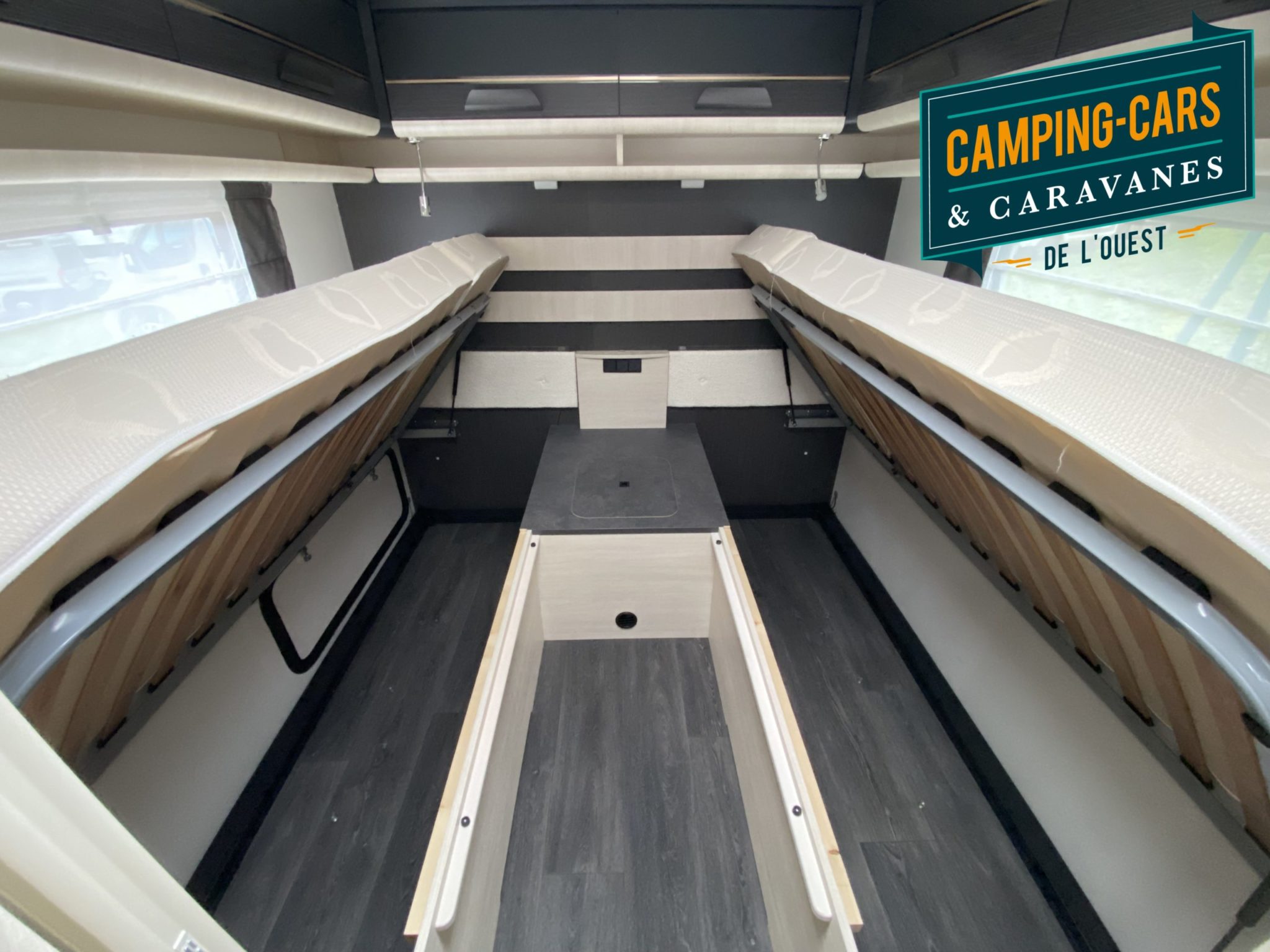 La Caravelair 542 Exclusive Line est une caravane haute de gamme avec des lits jumeaux, une salle de d’eau, un salon en U et de nombreux rangements en 5m60 de longueur intérieure.