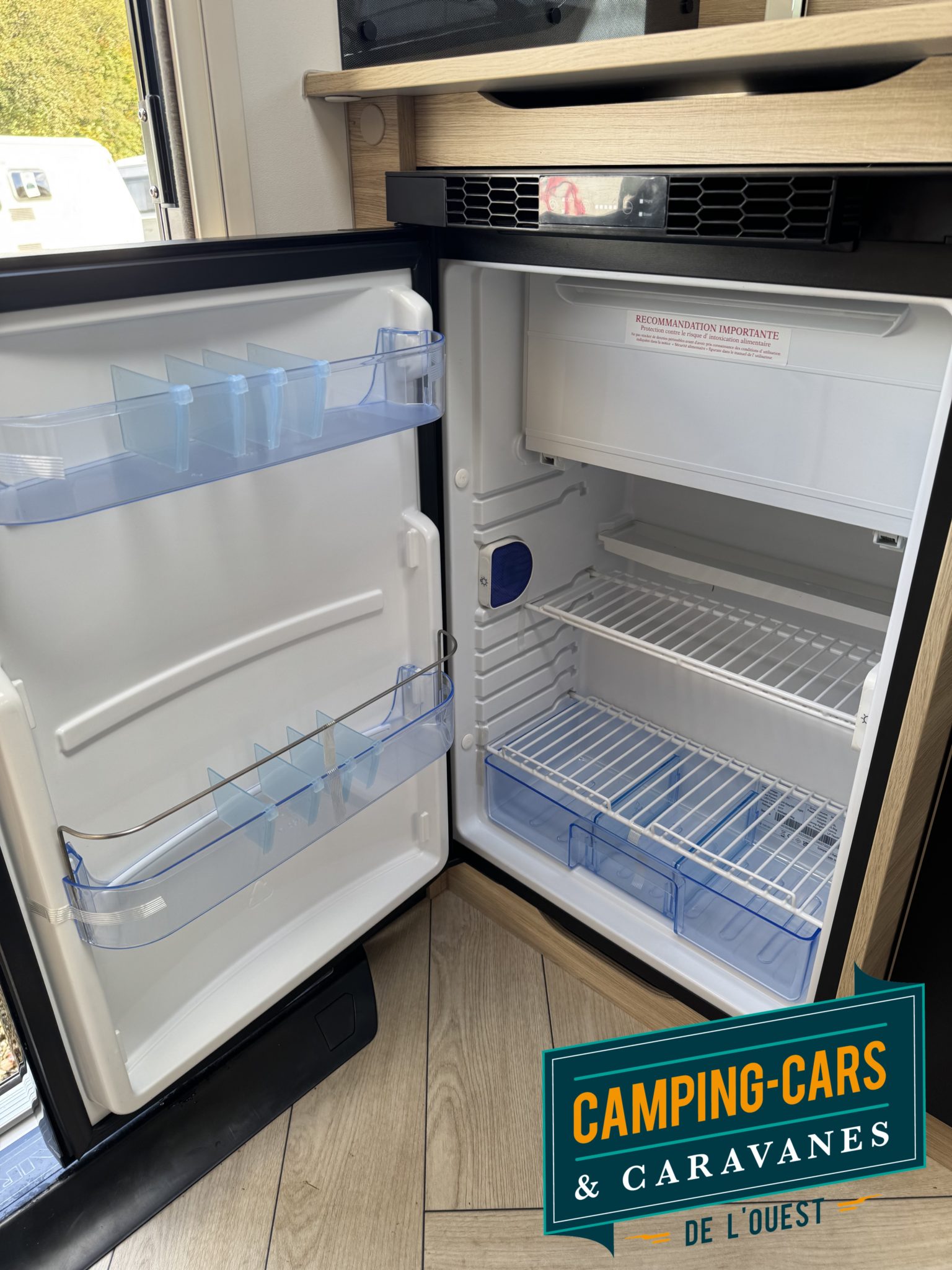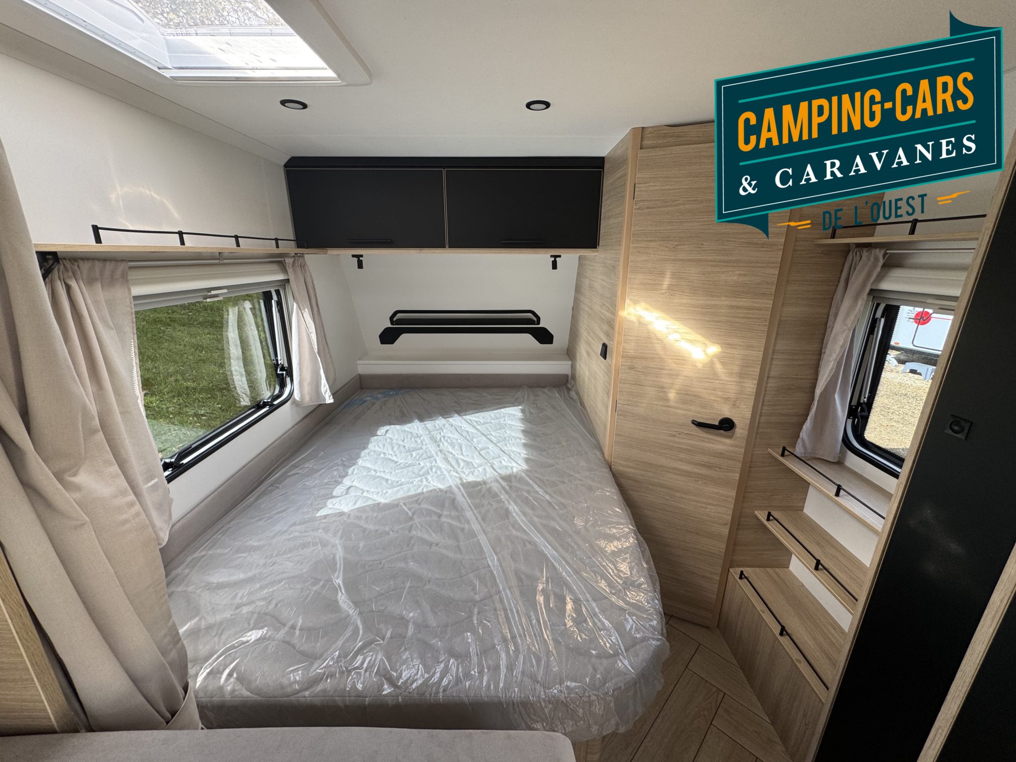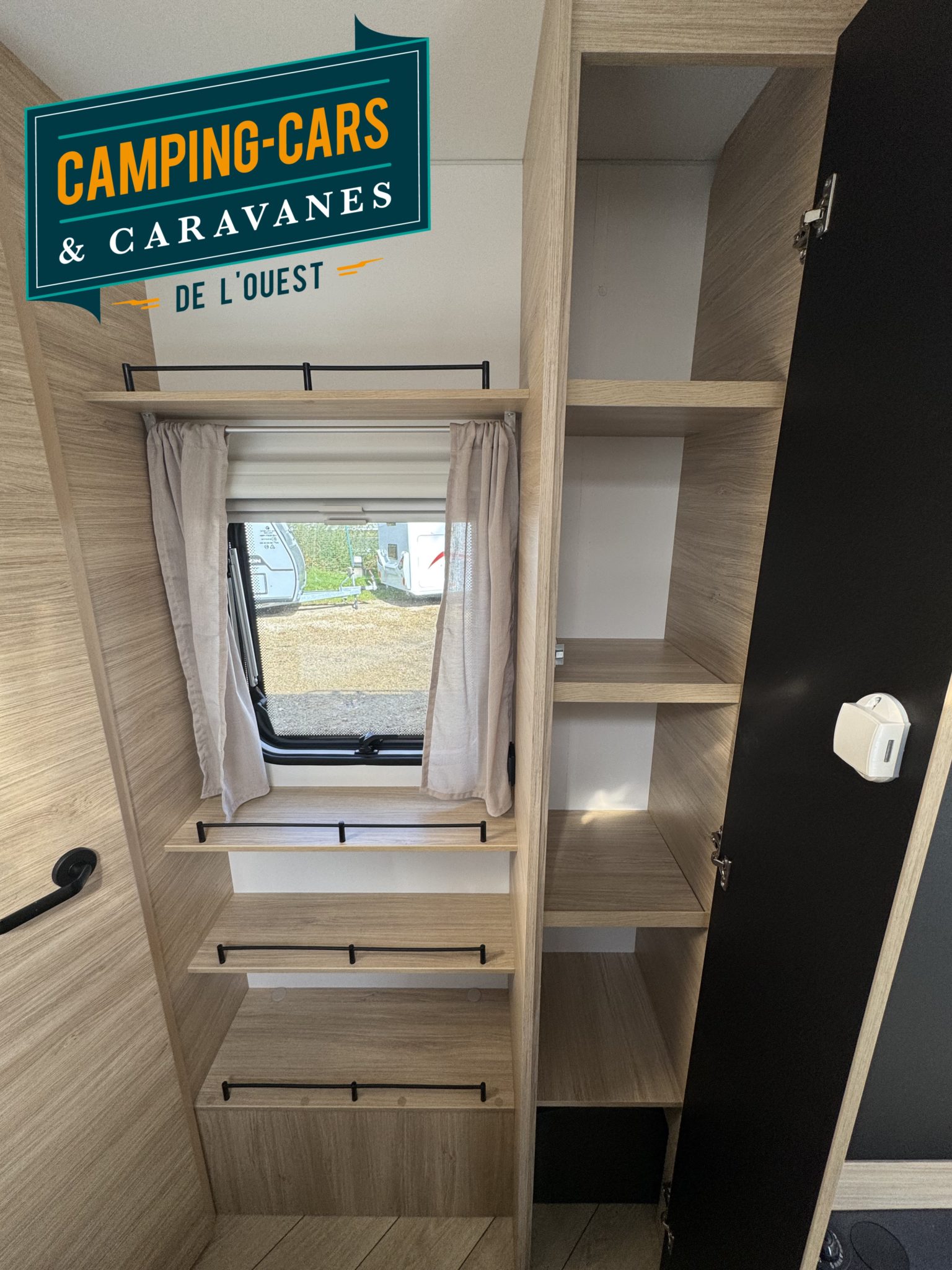 Équipé d’un confortable lit de 2m à la française et de nombreux rangements : lingère, étagères, penderie, et range-bouteille, cette caravane est sans égal.
