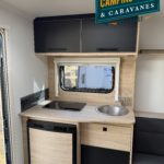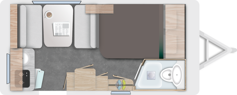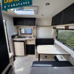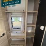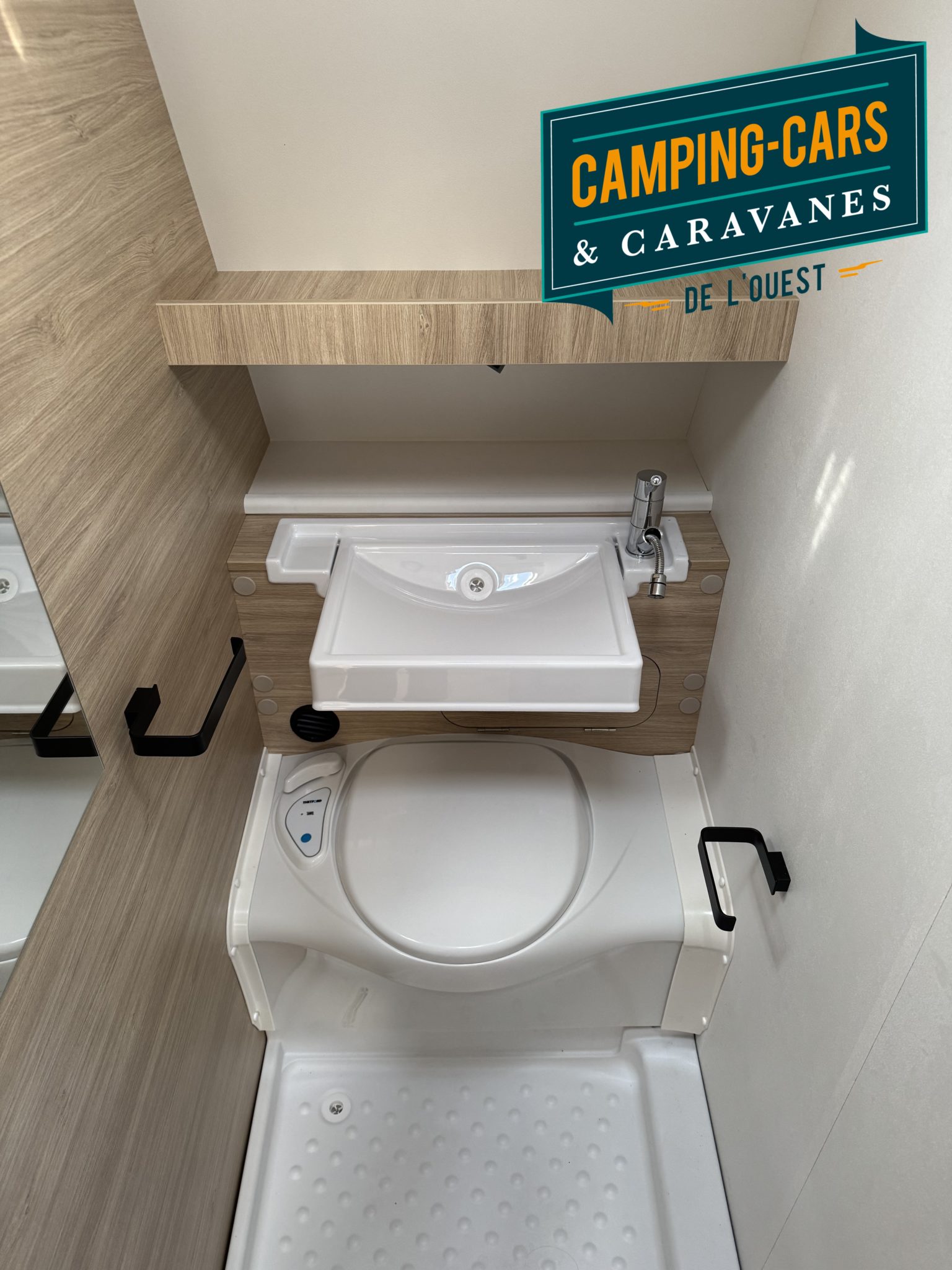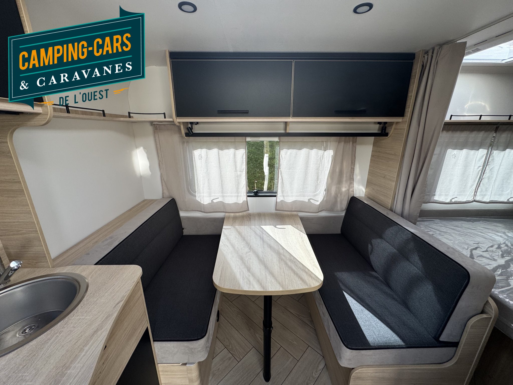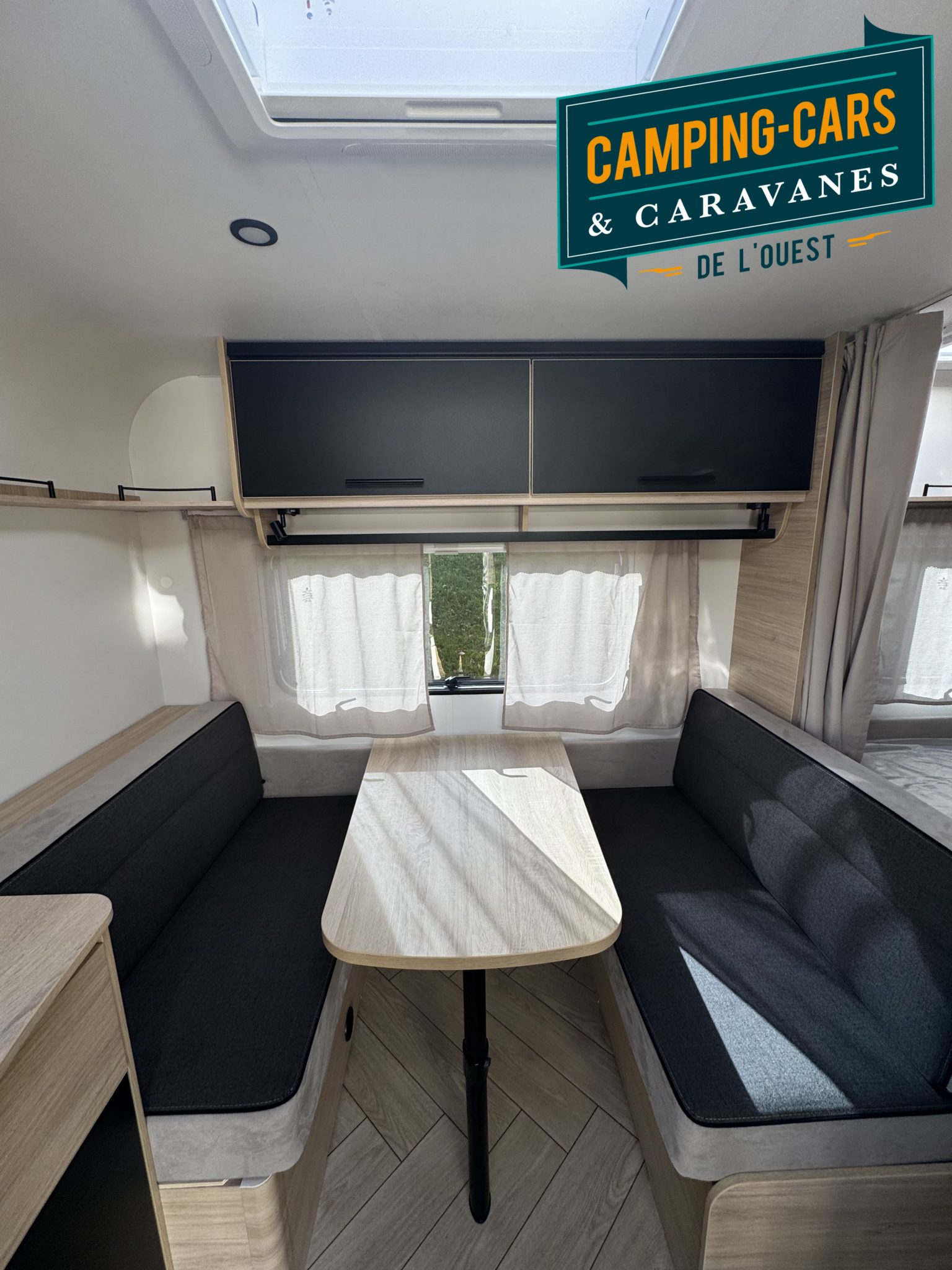 Équipé d’un confortable lit de 2m à la française et de nombreux rangements : lingère, étagères, penderie, et range-bouteille, cette caravane est sans égal.