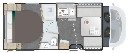 Le profilé 798 allie élégance et fonctionnalité pour des voyages tout confort. Son salon face-face crée un bel espace convivial, idéal pour partager les repas ou se détendre. À l’arrière, un lit central 160 cm garantit des nuits douces, tandis que la salle de bain à double cloisonnement permet une séparation parfaite des espaces. Un choix premium pour ceux qui veulent voyager sans compromis, à deux ou en duo d’amis.