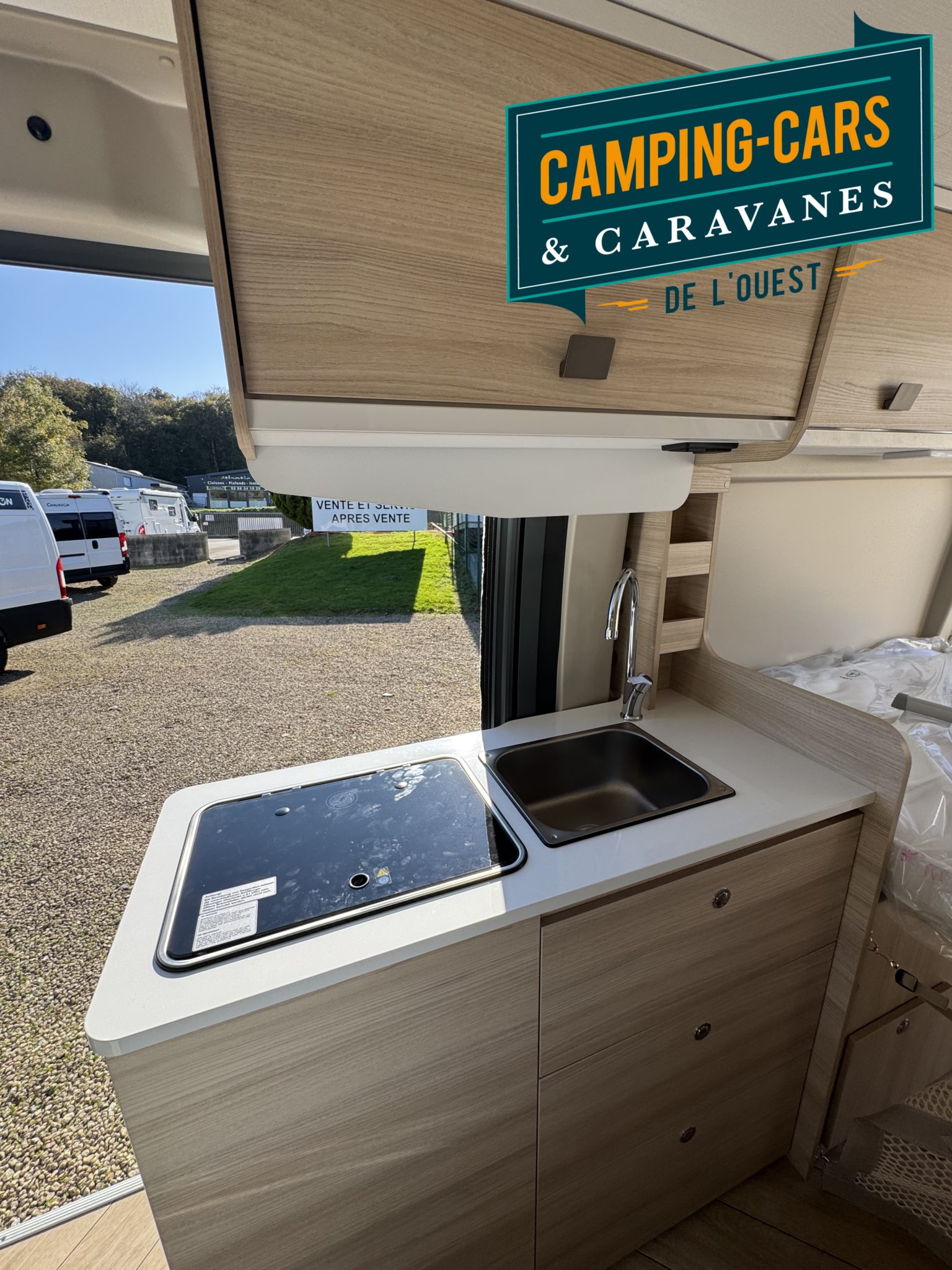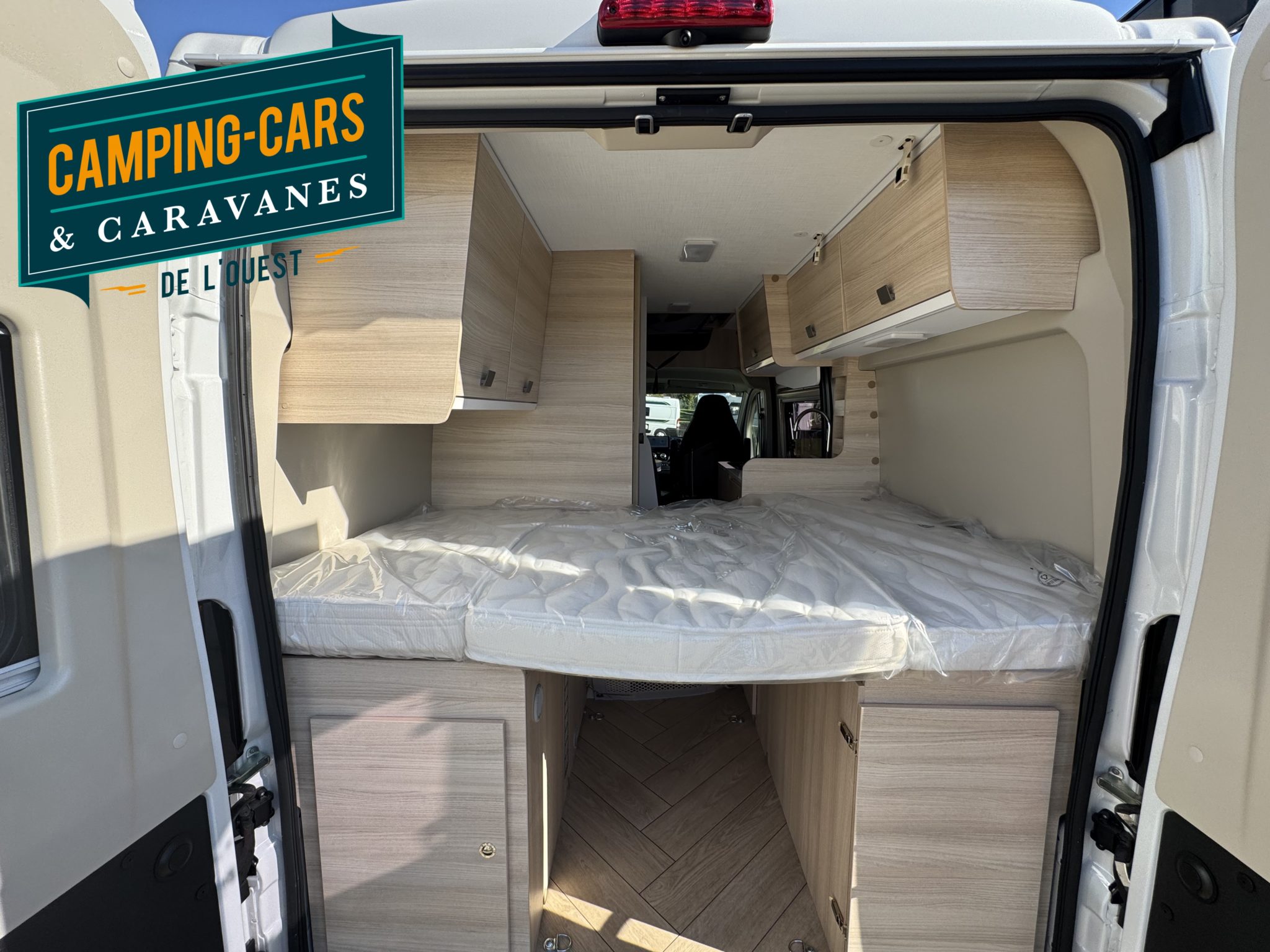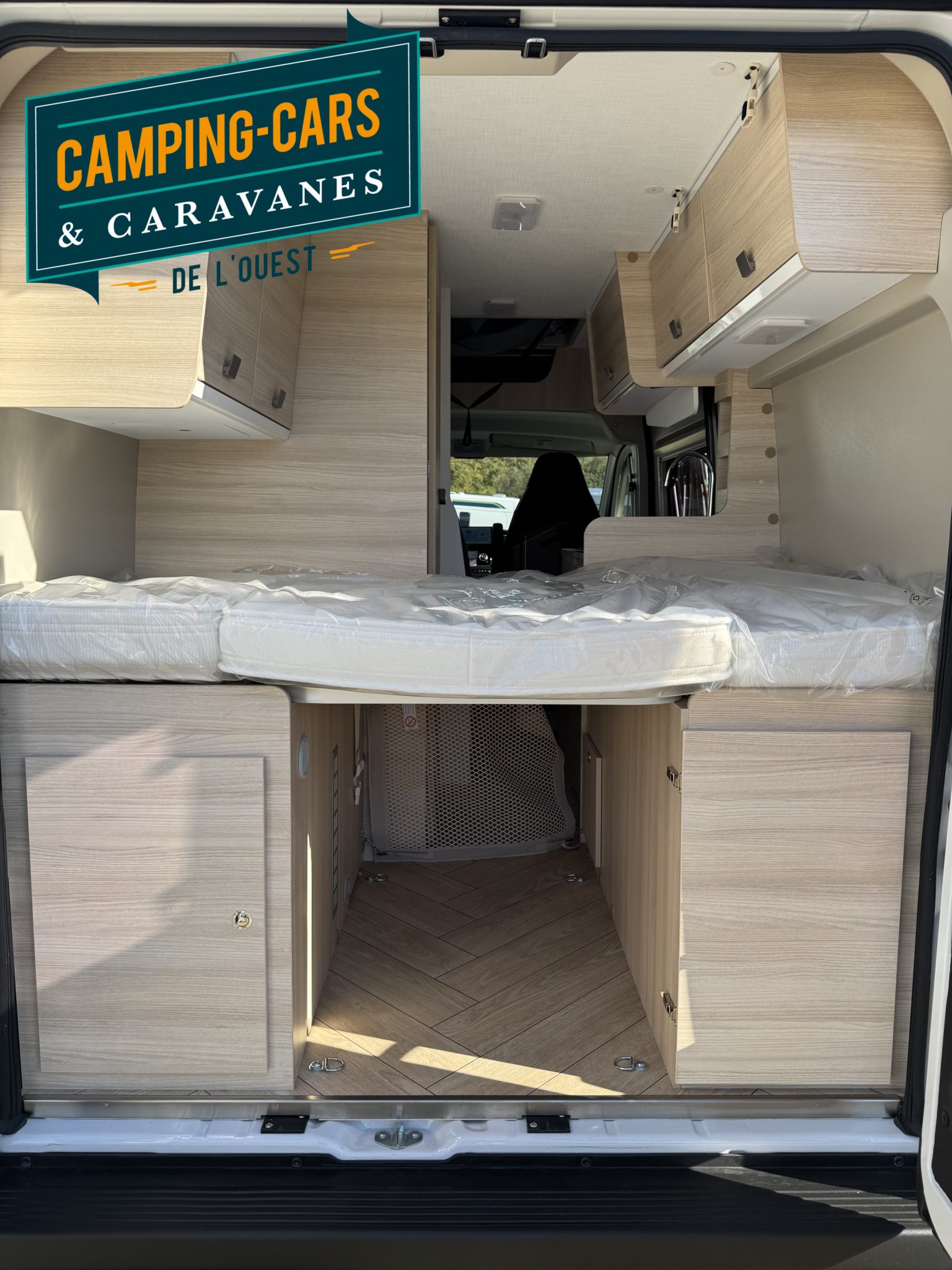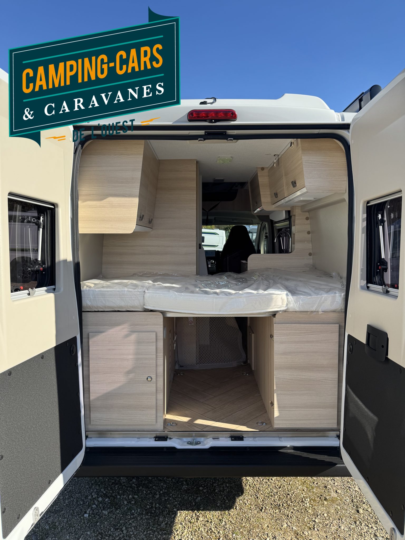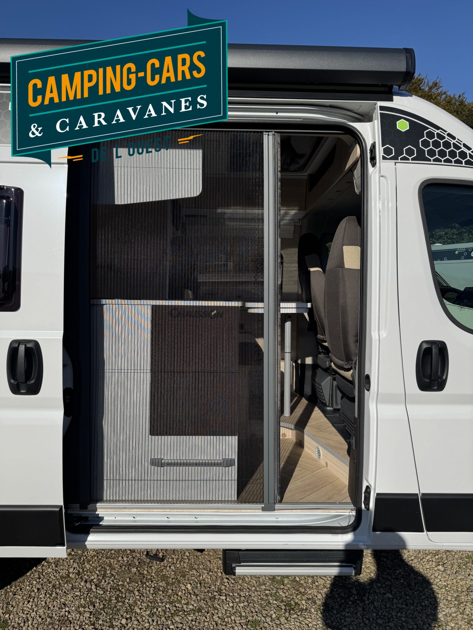 – Pack Accessoires : Store extérieur, Panneau solaire, Éclairage extérieur porte d’entrée, Moustiquaire de porte, Store intérieur cabine, Compléments couchage dinette (2 990€)