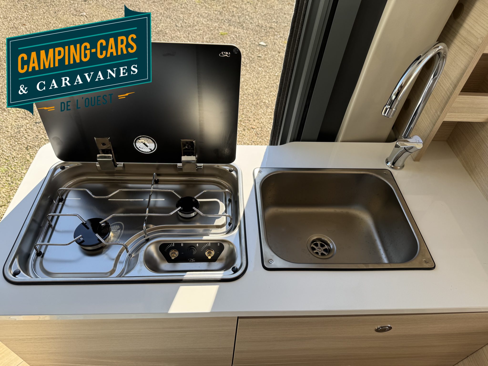 Ce fourgon aménagé est idéal pour aller où on veut, quand on veut, en toute discrétion, y compris dans la vie de tous les jours : Pour les escapades, il a tout : coin cuisine, salon, salle de bains et lit 2 places : 5,41m de plaisir à deux…Pour tous les jours, le lit arrière se relève pour gagner de la place et le salon se transforme en banquette pourvue de 2 ceintures de sécurité pour voyager à 4.