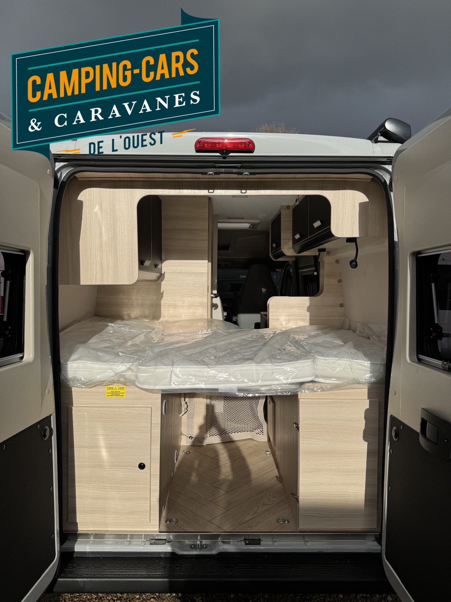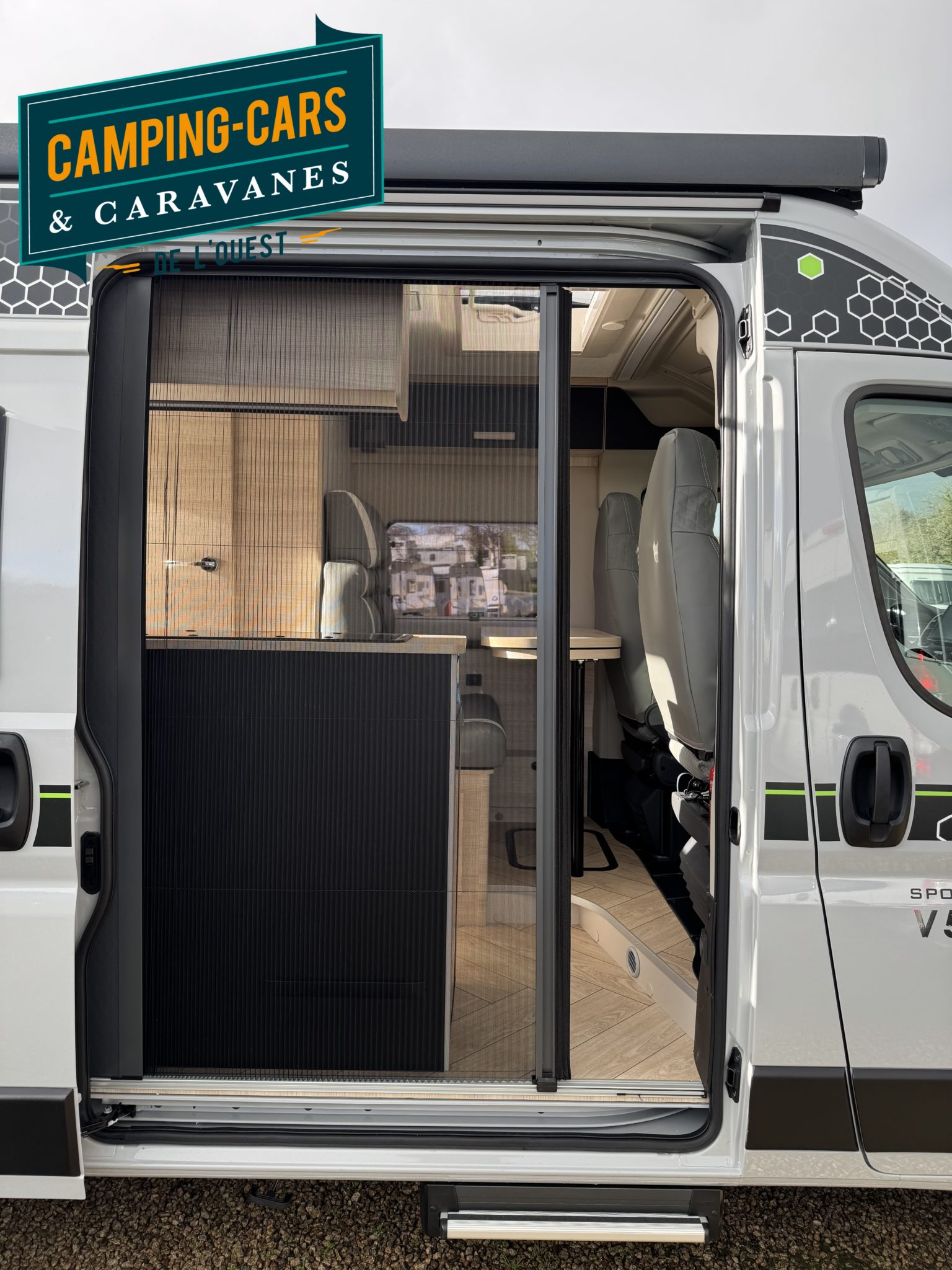 – Pack Accessoires : Store extérieur, Panneau solaire 200W, Éclairage extérieur porte d’entrée, Moustiquaire de porte, Stores intérieur cabine, Compléments couchage dinette (3 000€)