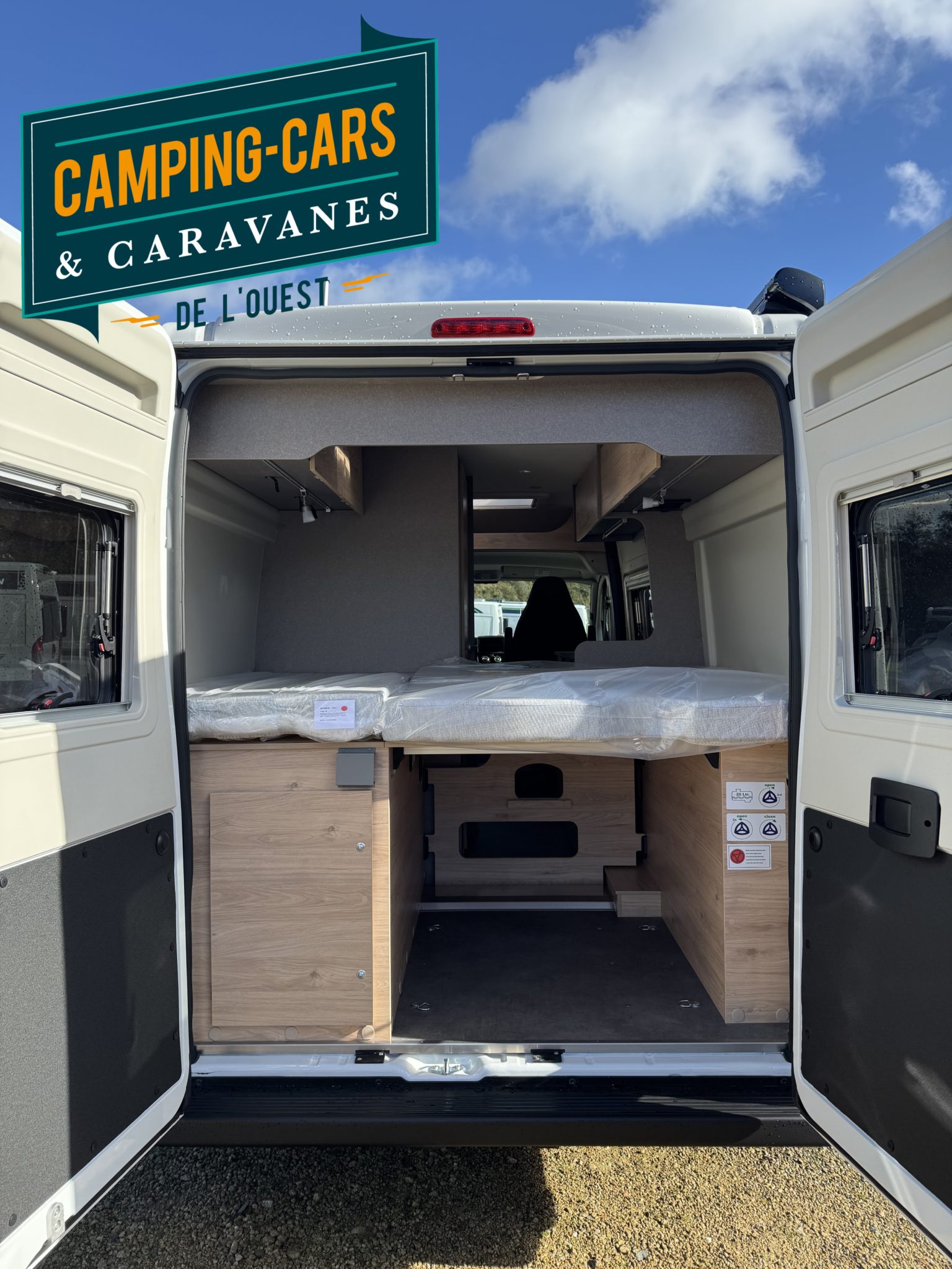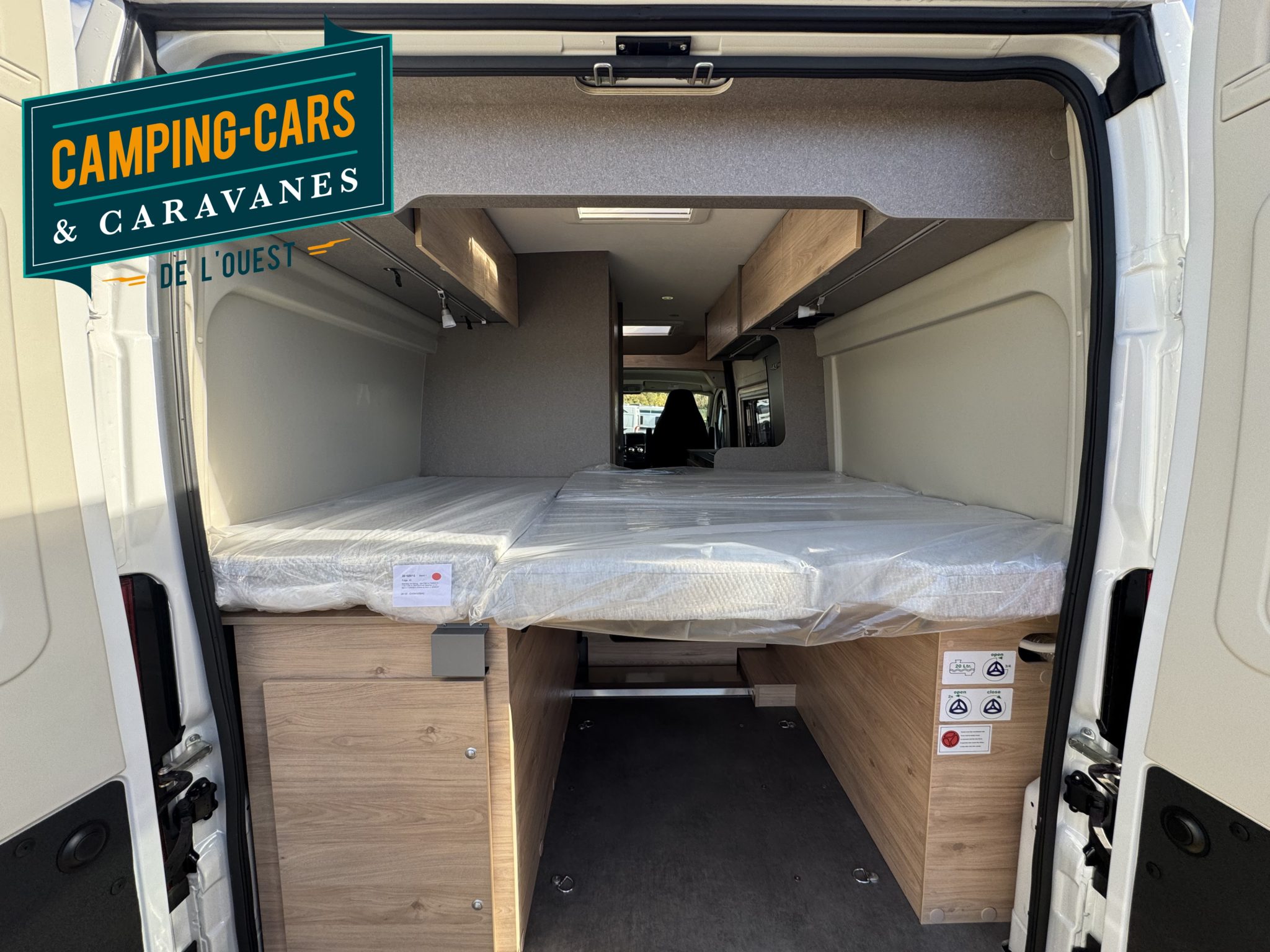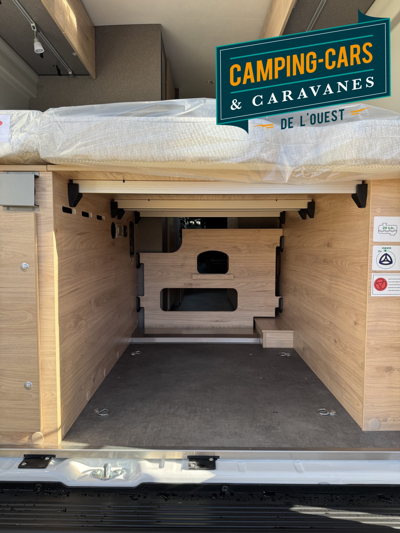 – Cloison de séparation soute avec découpe pour accès au lit double arrière