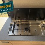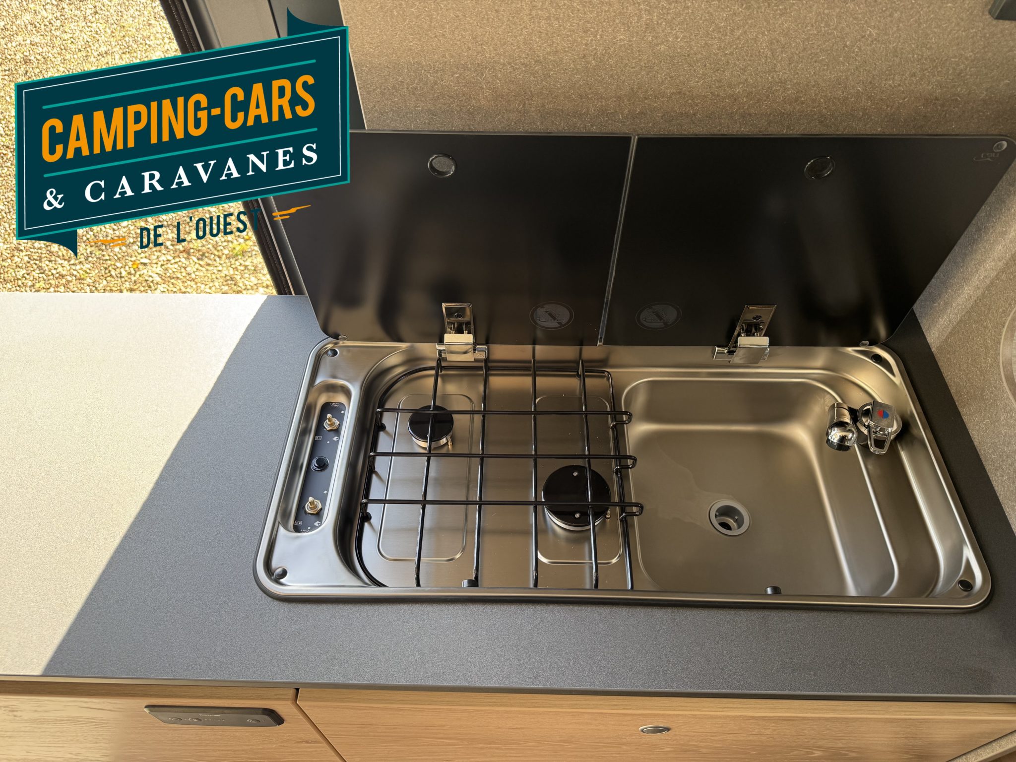 – Combinaison réchaud à 2 feux / évier avec allumage piézoélectrique