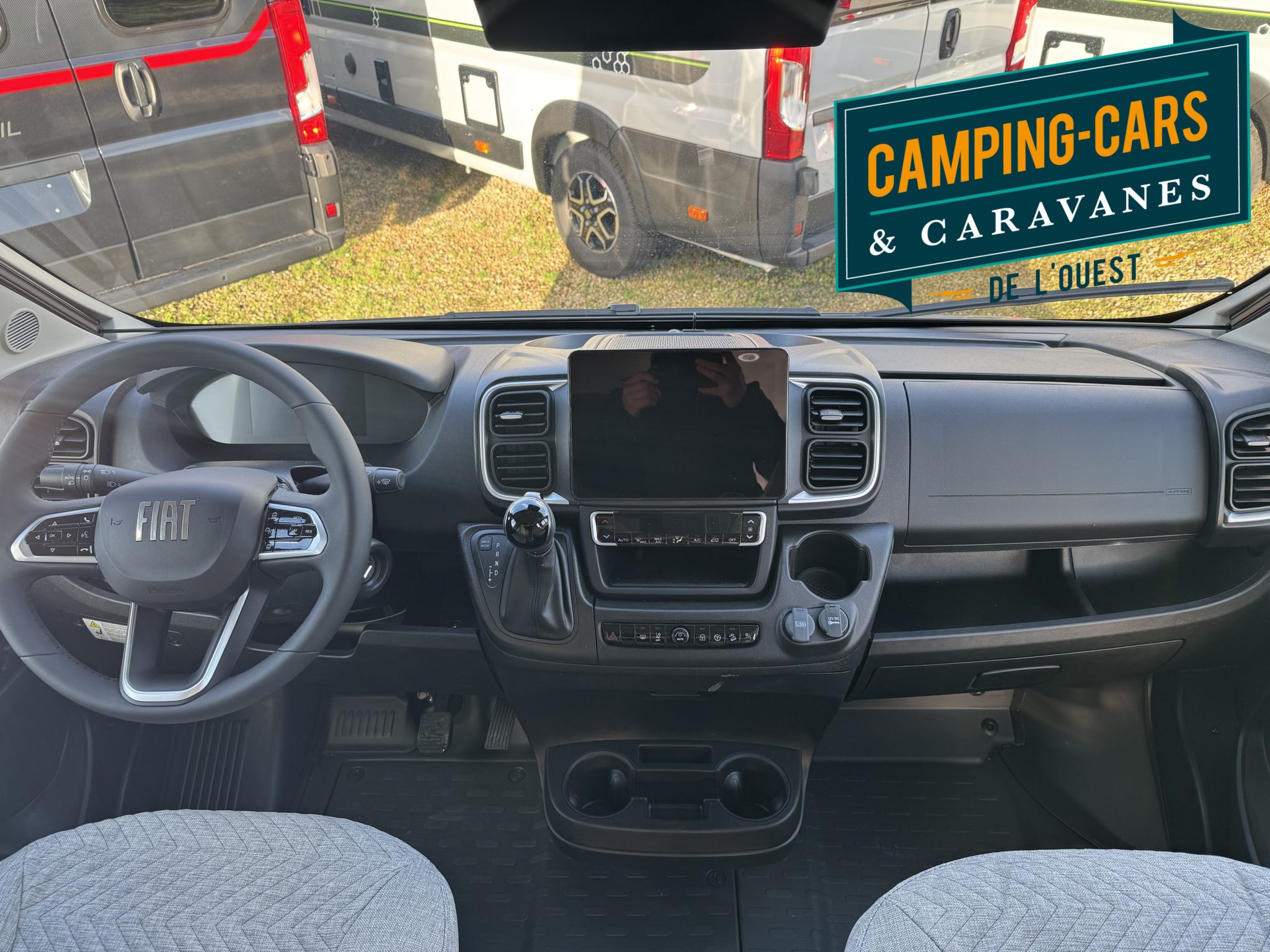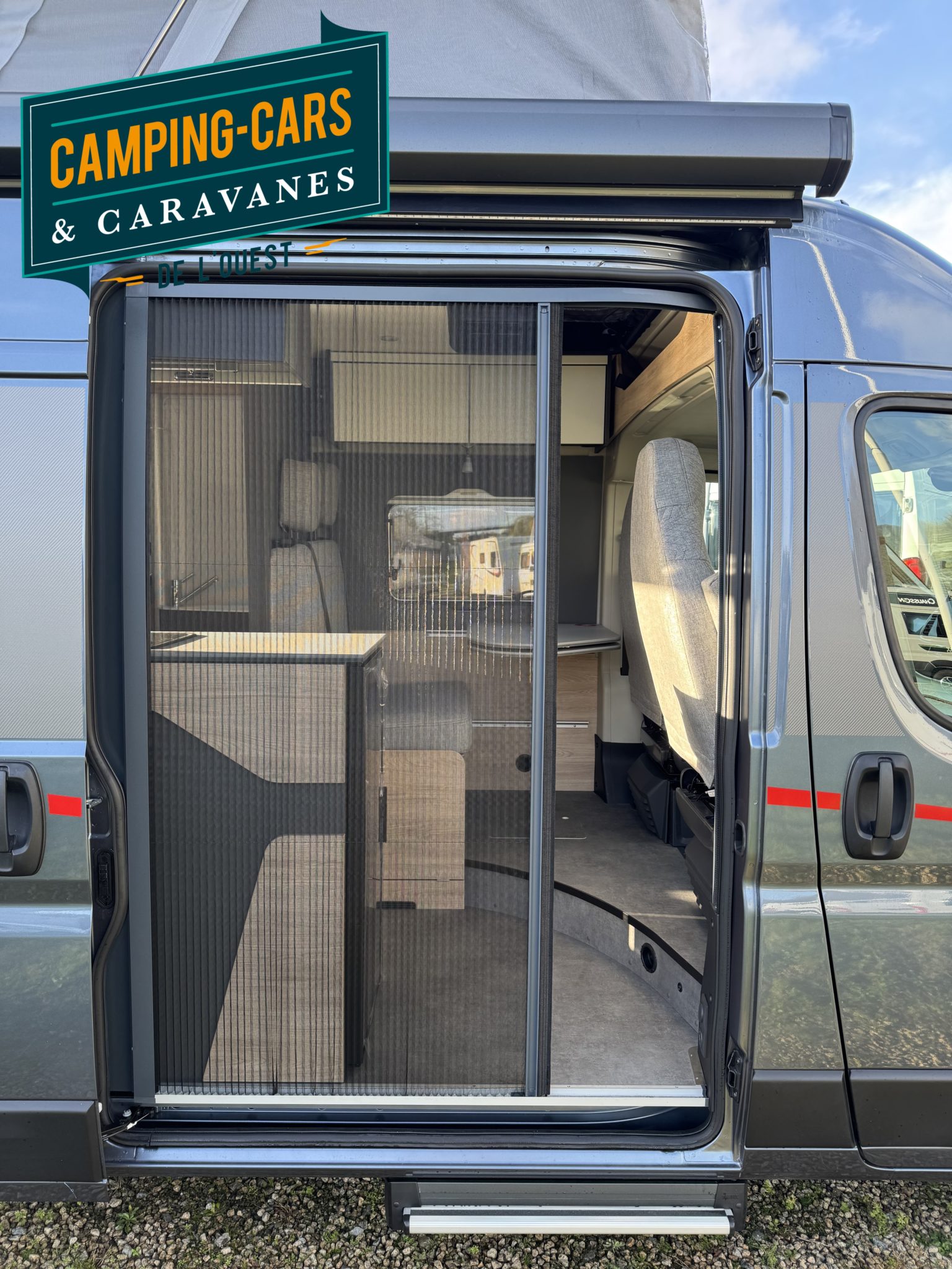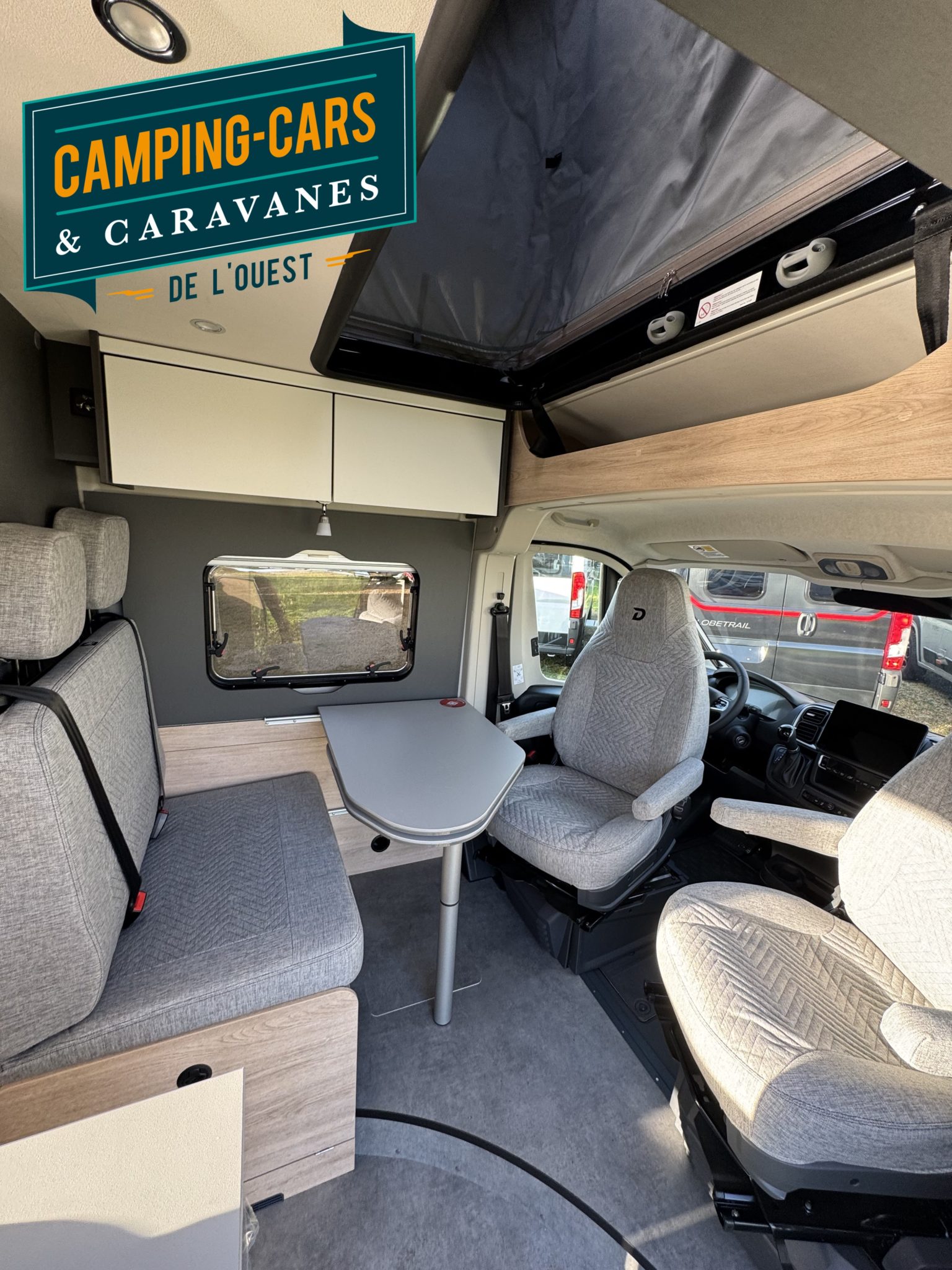 – Pack 95ème Anniversaire : Pack Easy Driving Plus (nouveau pack sécurité, pare-chocs couleur carrosserie, lame de pare-chocs avant noir, feux antibrouillard, régulateur de vitesse adaptatif ACC), Pack Vision niveau 2 (rétroviseurs latéraux rabattables, capteurs de stationnement, assistant d’angle mort), Climatisation cabine automatique, Caméra de recul digitale, Tableau de bord digital, Radionavigation & écran 10 pouces, Chargeur de téléphone sans fil, Stickage extérieur complet, Eclairage d’auvent, Eclairage indirect, Bandes lumineuses à LED, Pré-équipement pour panneaux solaires, Commande Truma CP Plus, Prise 230V dans le meuble haut avant gauche (dînette), Prise 12V à l’arrière, en bas à gauche, Double prise USB dans la partie arrière gauche, Baie avec moustiquaire et store occultant à l’arrière côté gauche, Store 3,75 m, Rallonge de table pivotante (3 440€)