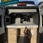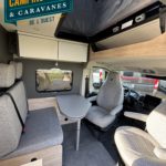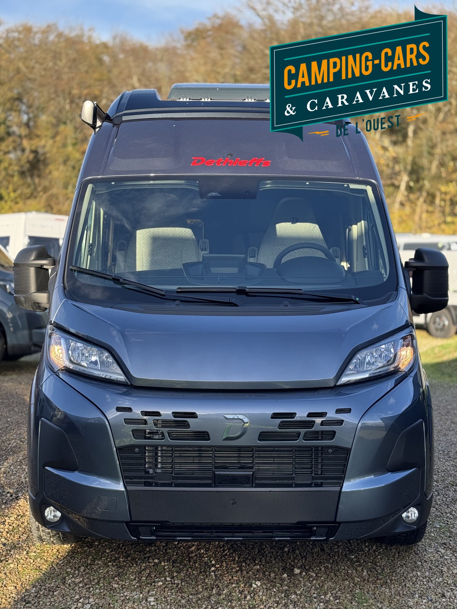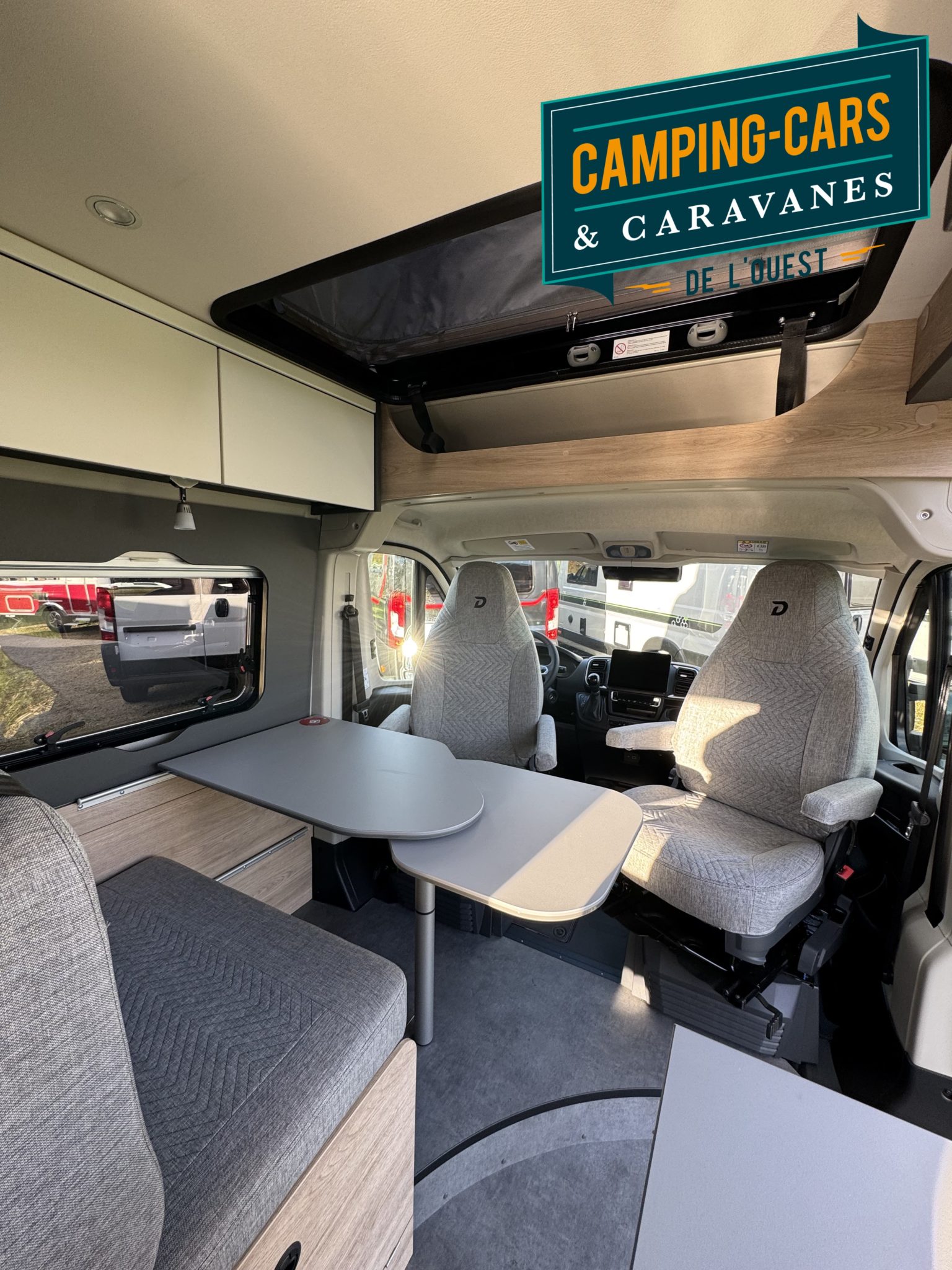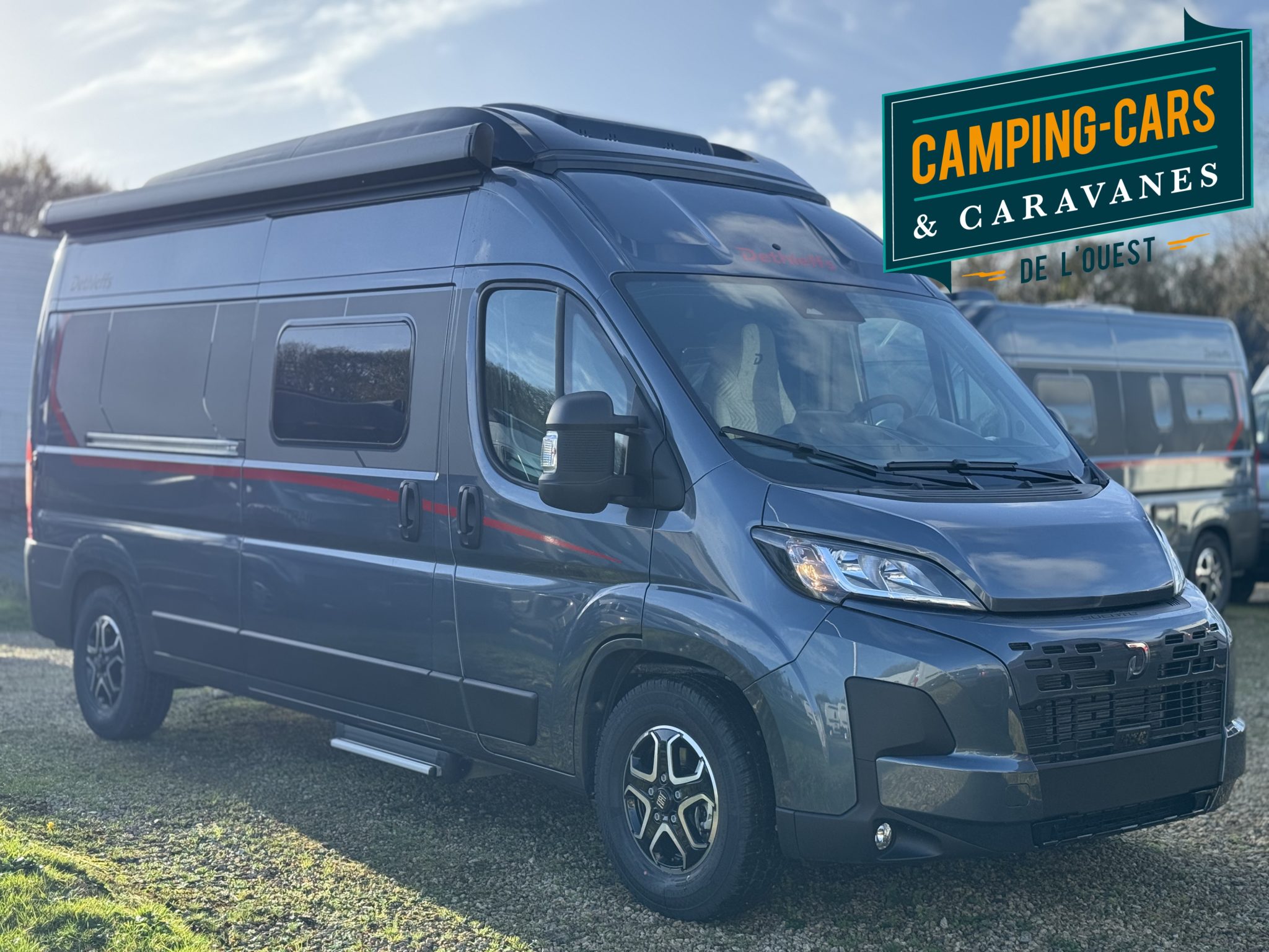 – Pack 95ème Anniversaire : Pack Easy Driving Plus (nouveau pack sécurité, pare-chocs couleur carrosserie, lame de pare-chocs avant noir, feux antibrouillard, régulateur de vitesse adaptatif ACC), Pack Vision niveau 2 (rétroviseurs latéraux rabattables, capteurs de stationnement, assistant d’angle mort), Climatisation cabine automatique, Caméra de recul digitale, Tableau de bord digital, Radionavigation & écran 10 pouces, Chargeur de téléphone sans fil, Stickage extérieur complet, Eclairage d’auvent, Eclairage indirect, Bandes lumineuses à LED, Pré-équipement pour panneaux solaires, Commande Truma CP Plus, Prise 230V dans le meuble haut avant gauche (dînette), Prise 12V à l’arrière, en bas à gauche, Double prise USB dans la partie arrière gauche, Baie avec moustiquaire et store occultant à l’arrière côté gauche, Store 3,75 m, Rallonge de table pivotante (3 440€)