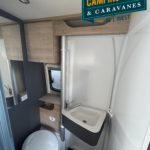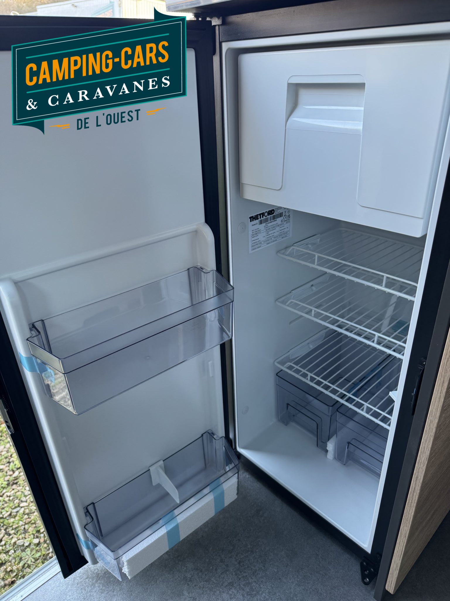 + Vaste équipement de série avec, entre autres, porte moustiquaire, baie dans la salle de bain, lanterneau panoramique au-dessus de la dînette, tablette arrière, placards de pavillon sur tout le pourtour dans la chambre à coucher, etc.