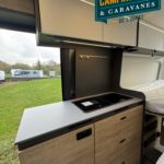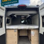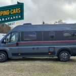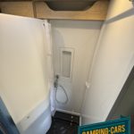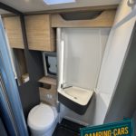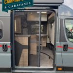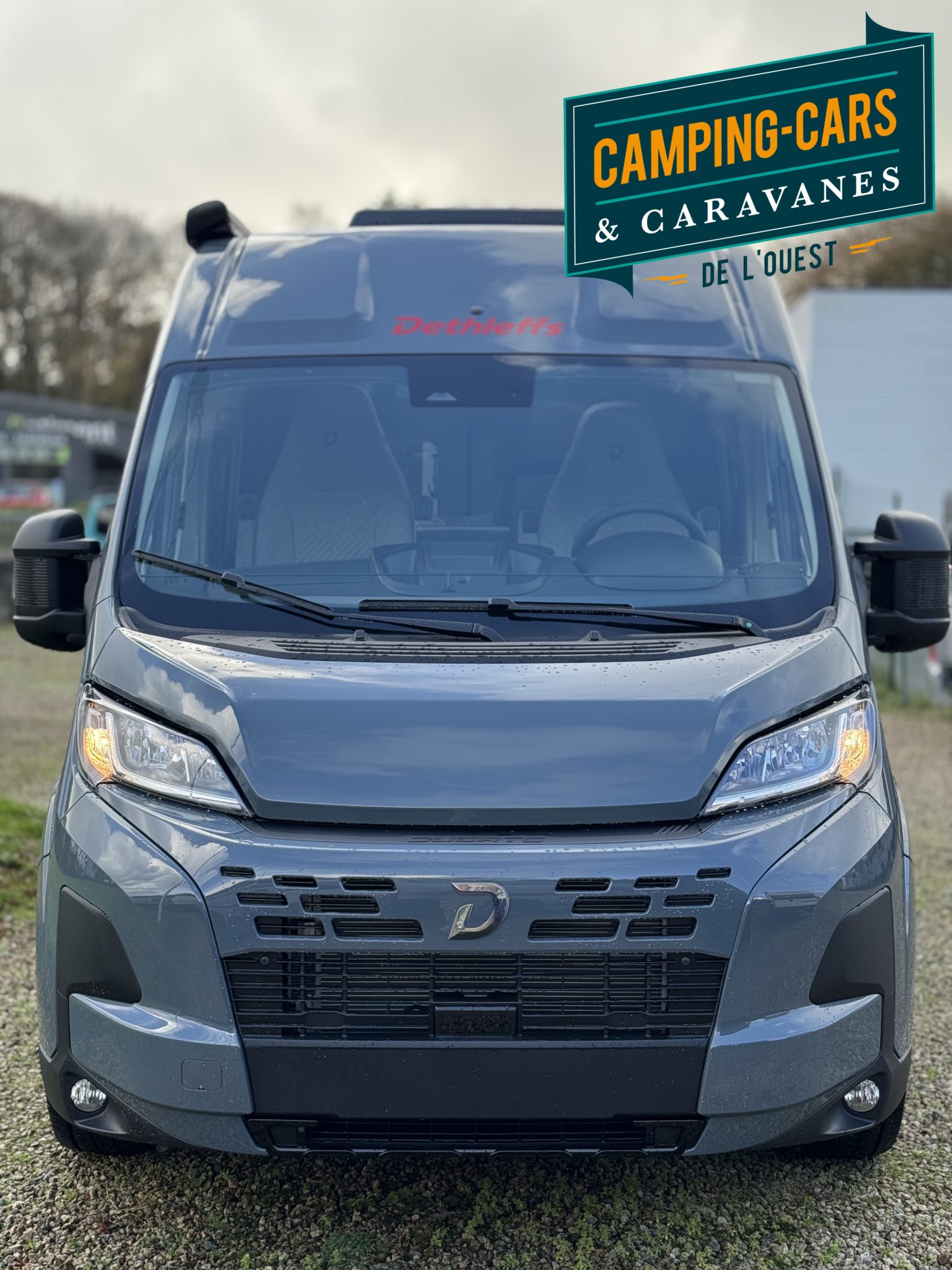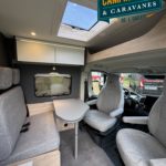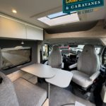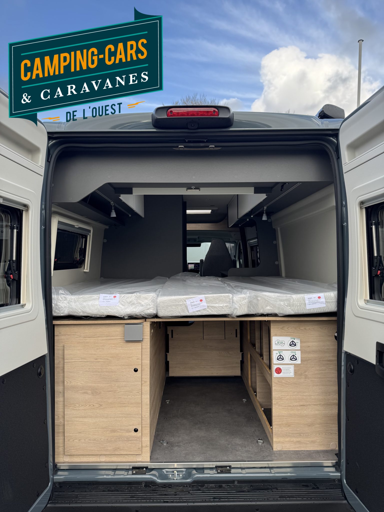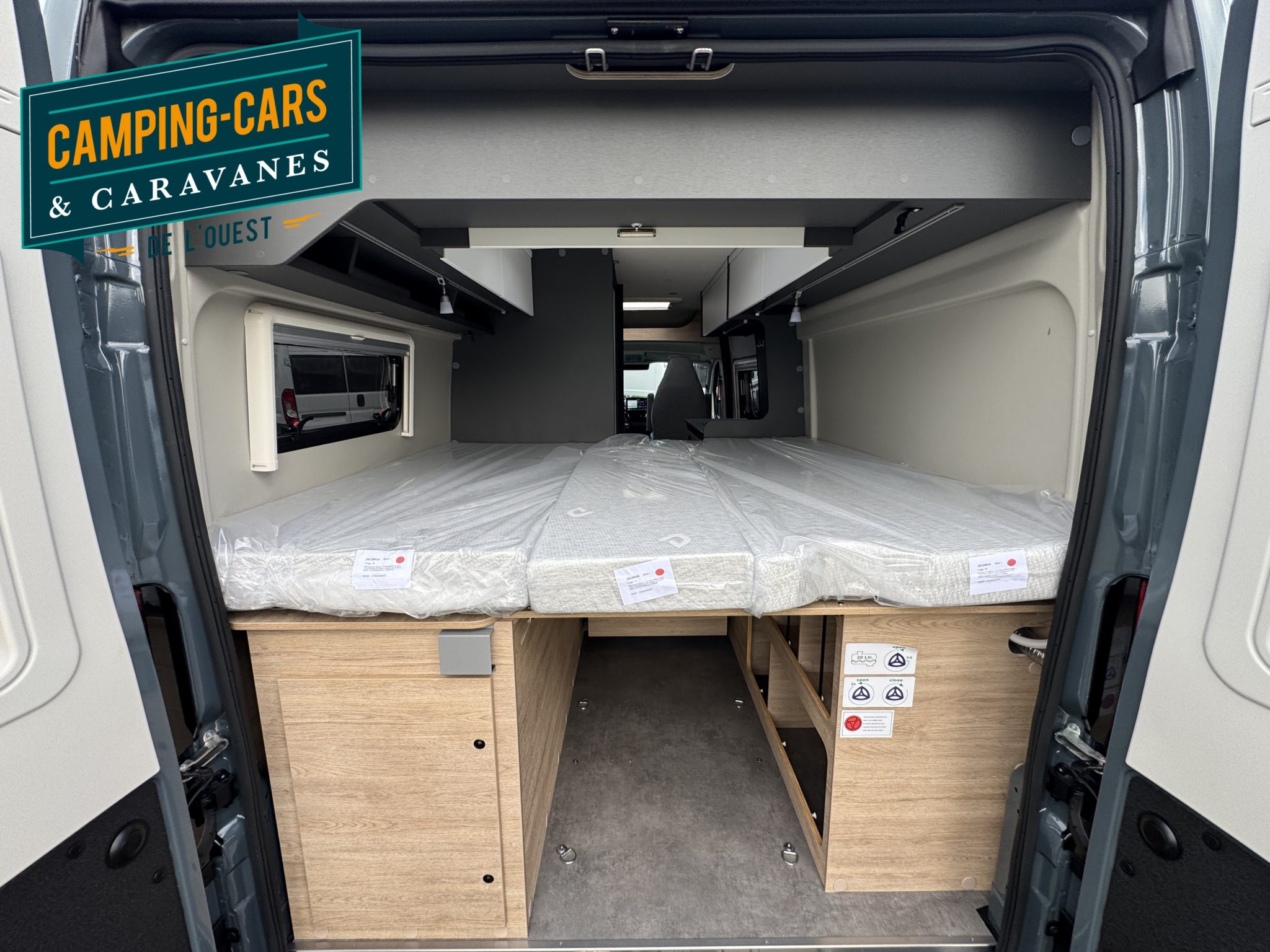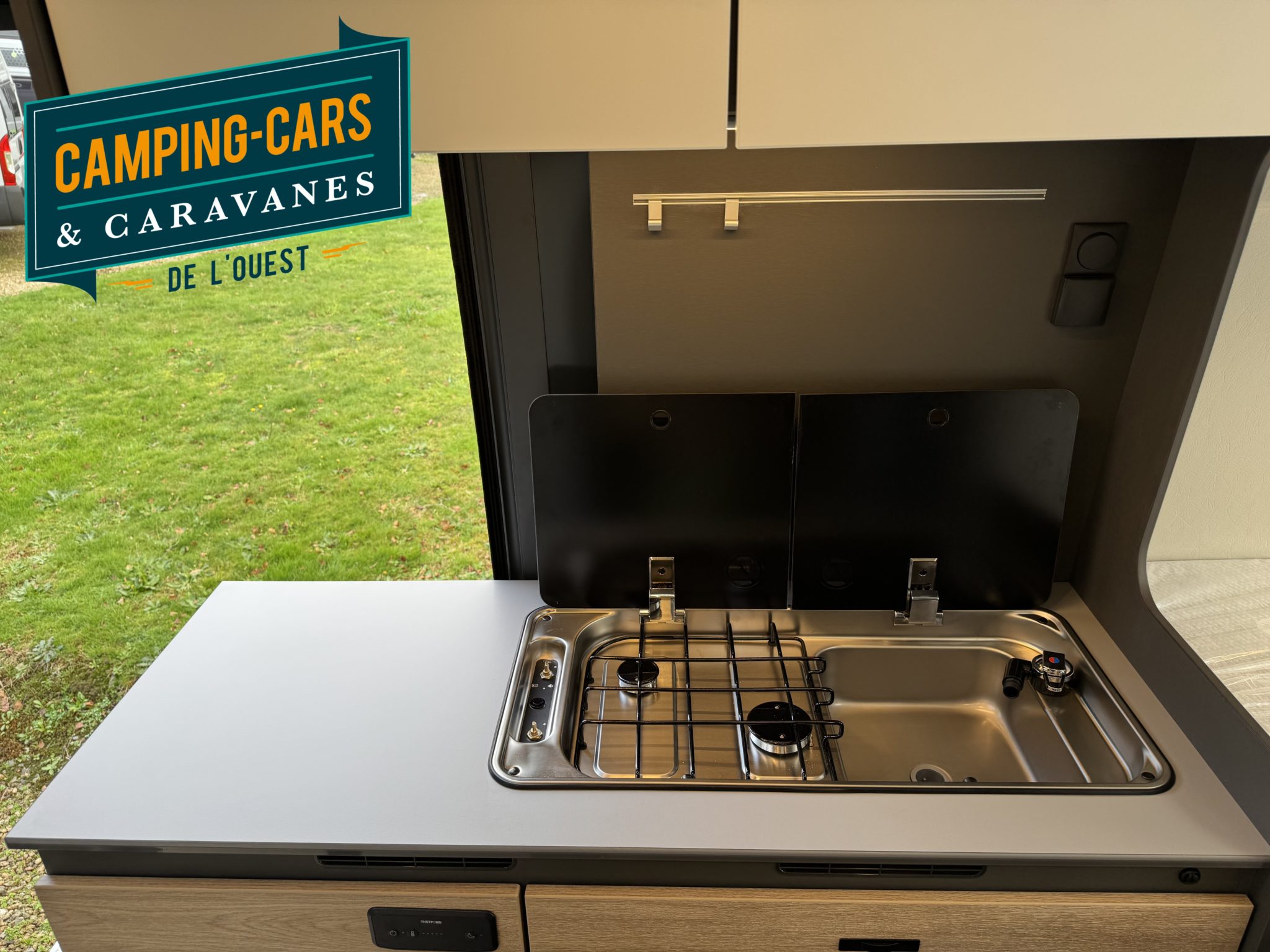 vitesse adaptatif ACC), Pack Vision niveau 2 (rétroviseurs latéraux rabattables, capteurs de stationnement, assistant d’angle mort), Climatisation automatique, Caméra de recul digitale, Tableau de bord digital, Radionavigation & écran 10 pouces, Chargeur de téléphone sans fil, Stickage extérieur complet, Eclairage d’auvent, Eclairage indirect, Bandes lumineuses à LED, Pré-équipement pour panneaux solaires, Commande Truma CP Plus, Prise 230V dans le meuble haut avant gauche (dînette), Prise 12V à l’arrière, en bas à gauche, Double prise USB dans la partie arrière gauche, Baie avec moustiquaire et store occultant à l’arrière côté gauche, Rallonge de table pivotante, Store 4,00 m (3 440€)