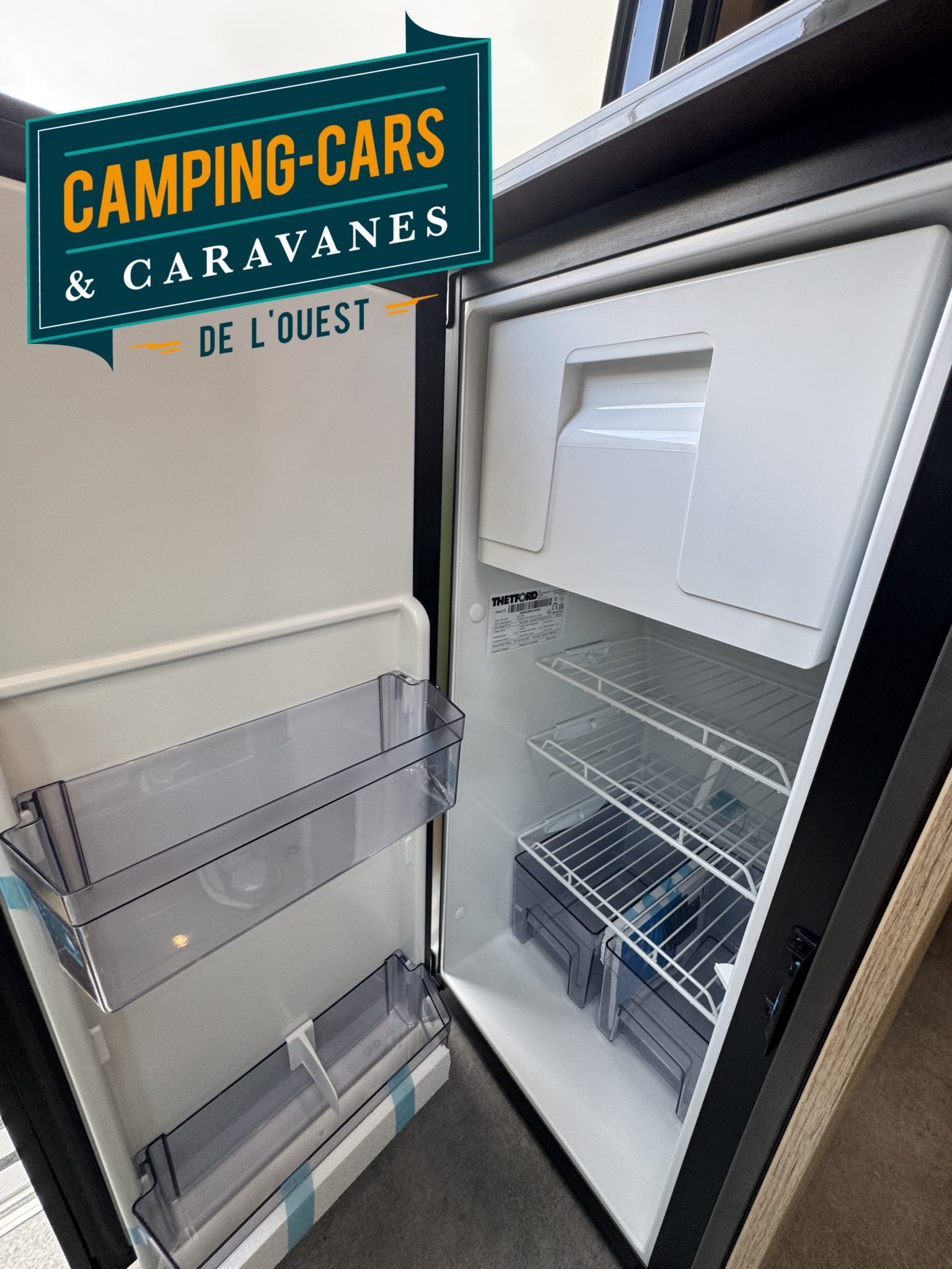 + Vaste équipement de série avec, entre autres, porte moustiquaire, baie dans la salle de bain, lanterneau panoramique au-dessus de la dînette, tablette arrière, placards de pavillon sur tout le pourtour dans la chambre à coucher, etc.