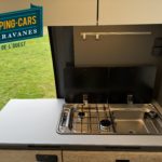 – Combinaison réchaud à 2 feux / évier avec allumage piézoélectrique