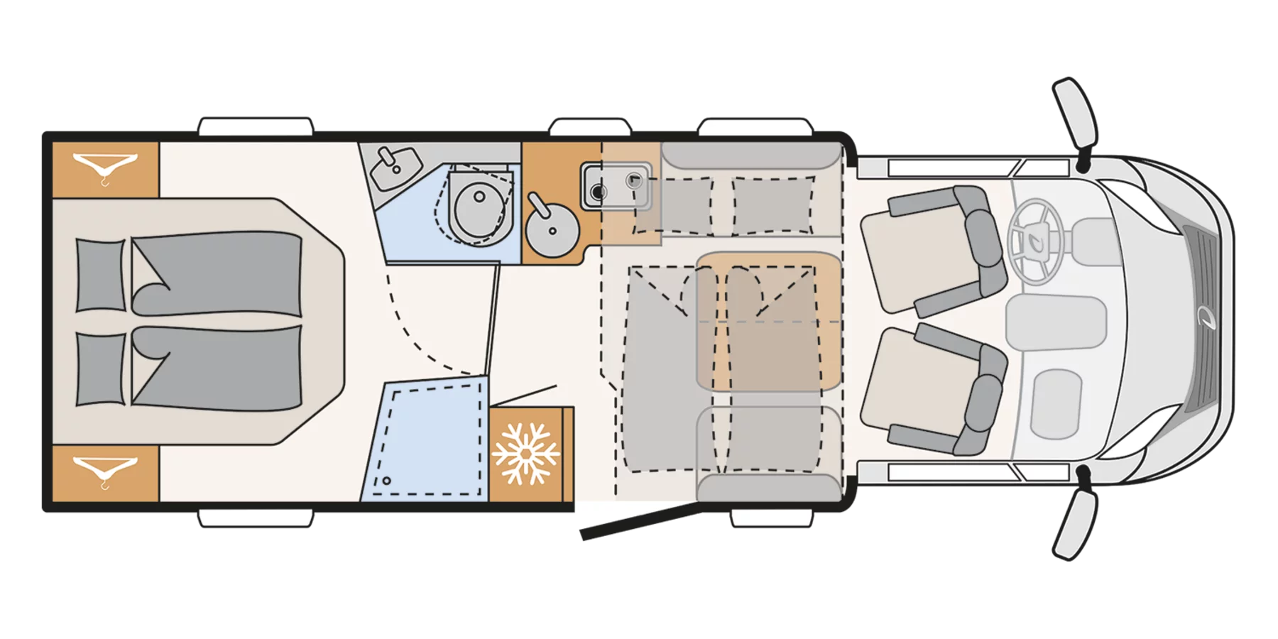 + Hauteur intérieure du véhicule : 2,13 m (sauf sous le lit)