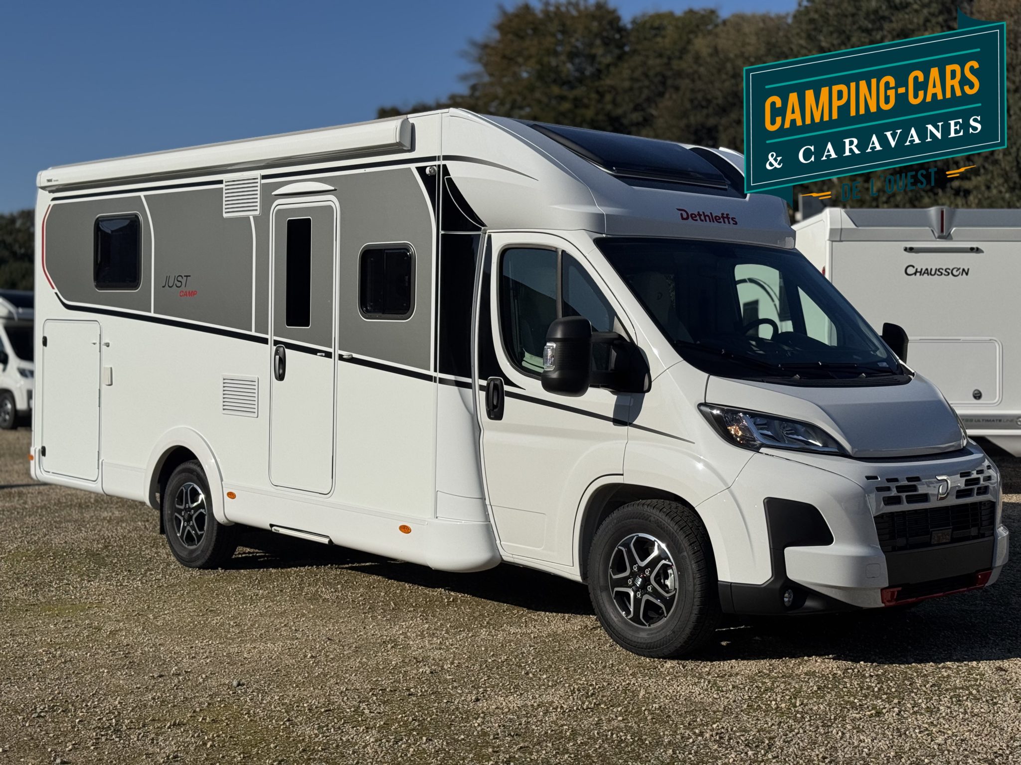 – Pack Just Camp Active : Caméra de recul (non compatible avec l’écran d’origine porteur), Commande digitale CP Plus pour chauffage / chauffe-eau à air pulsé, Système de navigation Dethleffs y compris DAB+, Truck Navigation, Apple CarPlay et Android Auto sans fil, Light Moments : Eclairage paroi de cuisine, Heron – tissu & simili cuir, Design extérieur Active (support de feux arrière avec diffuseur noir, stickage spécifique, lame de pare-chocs avant rouge)