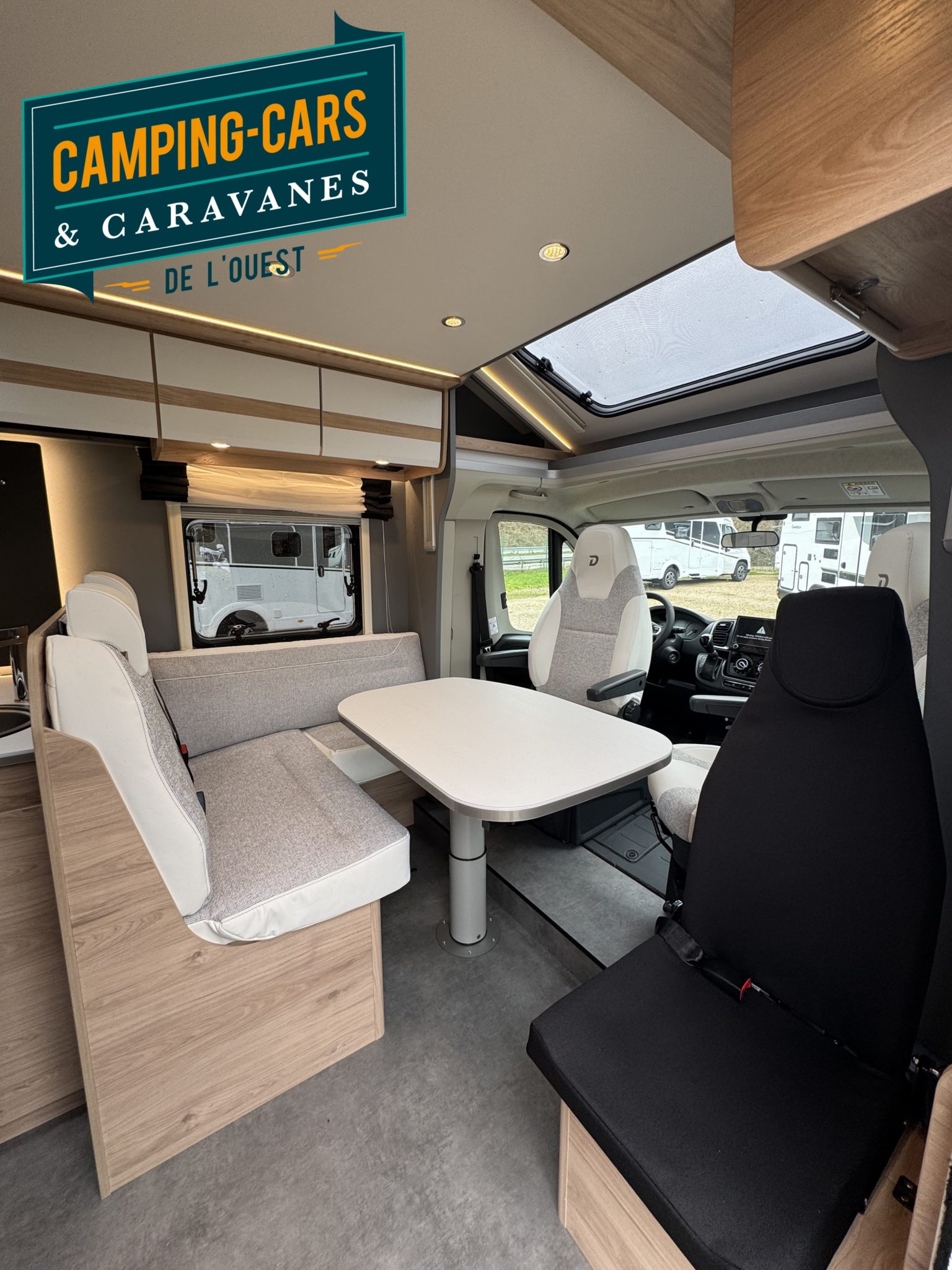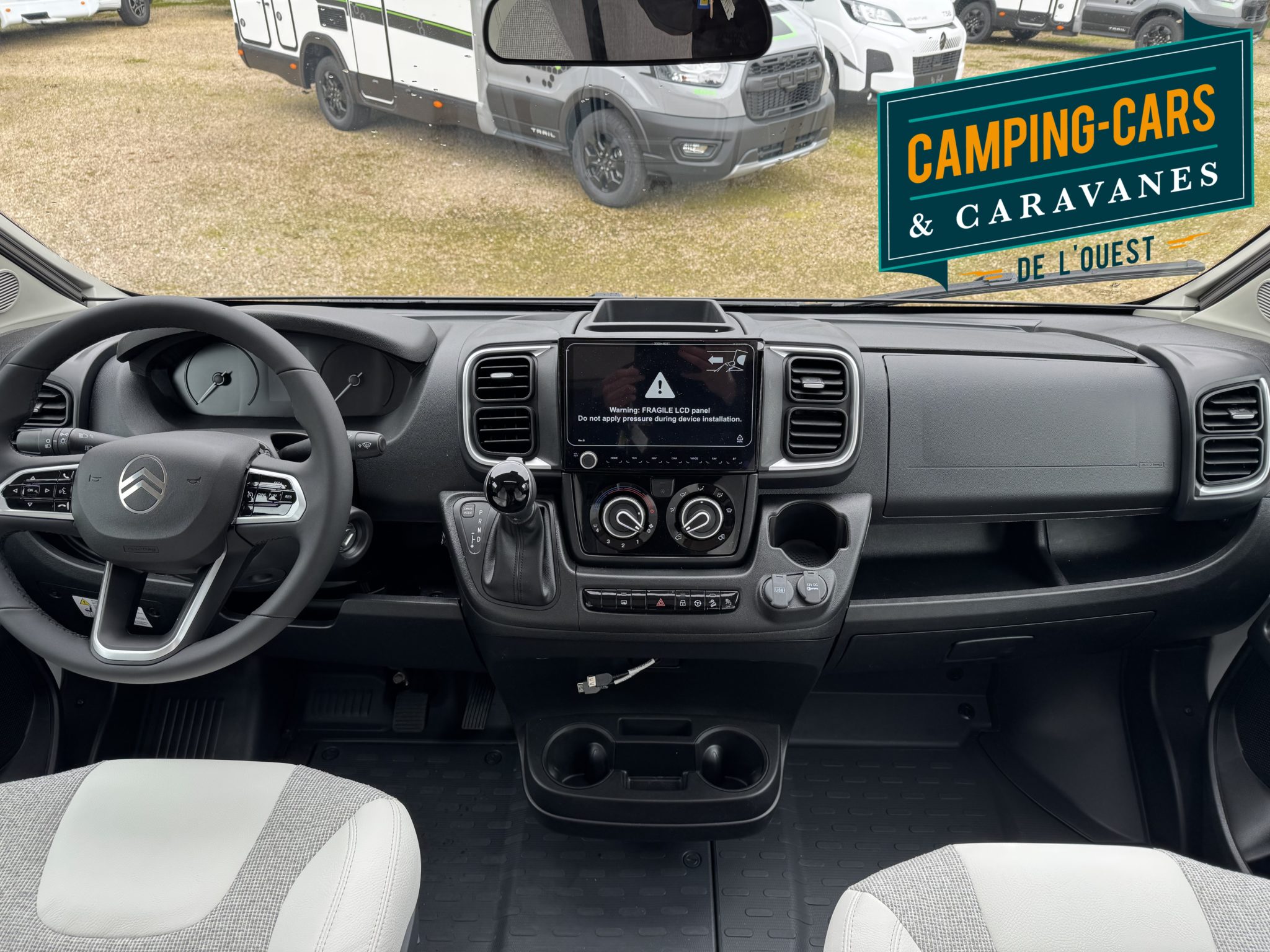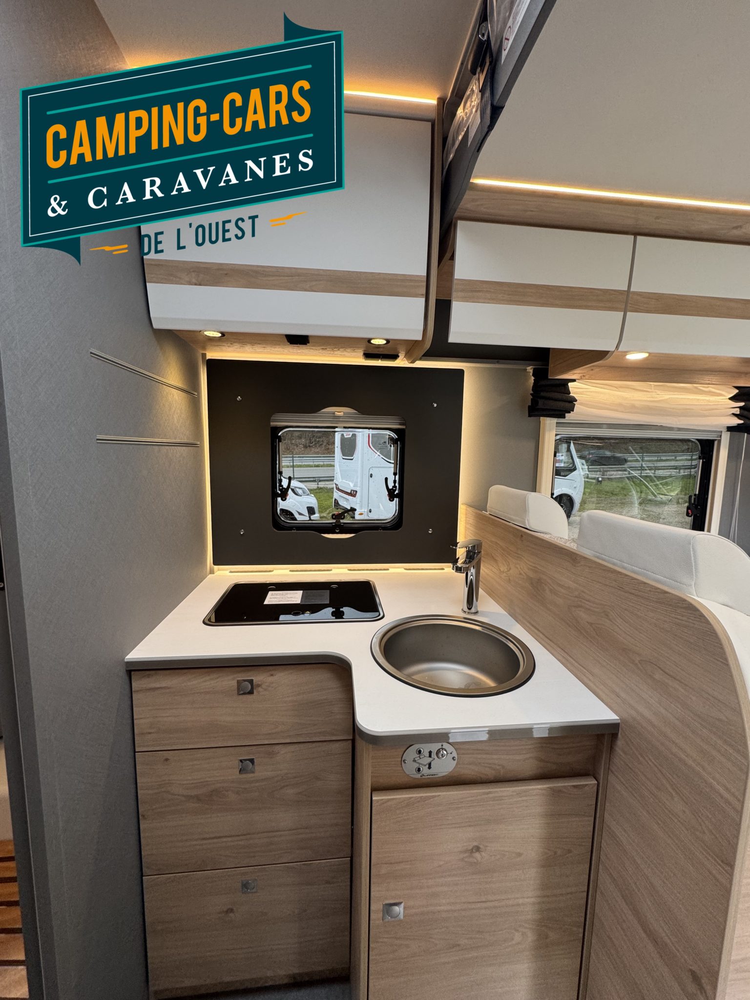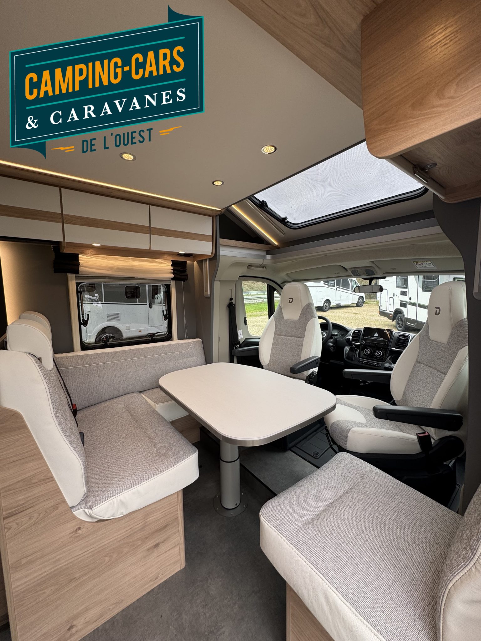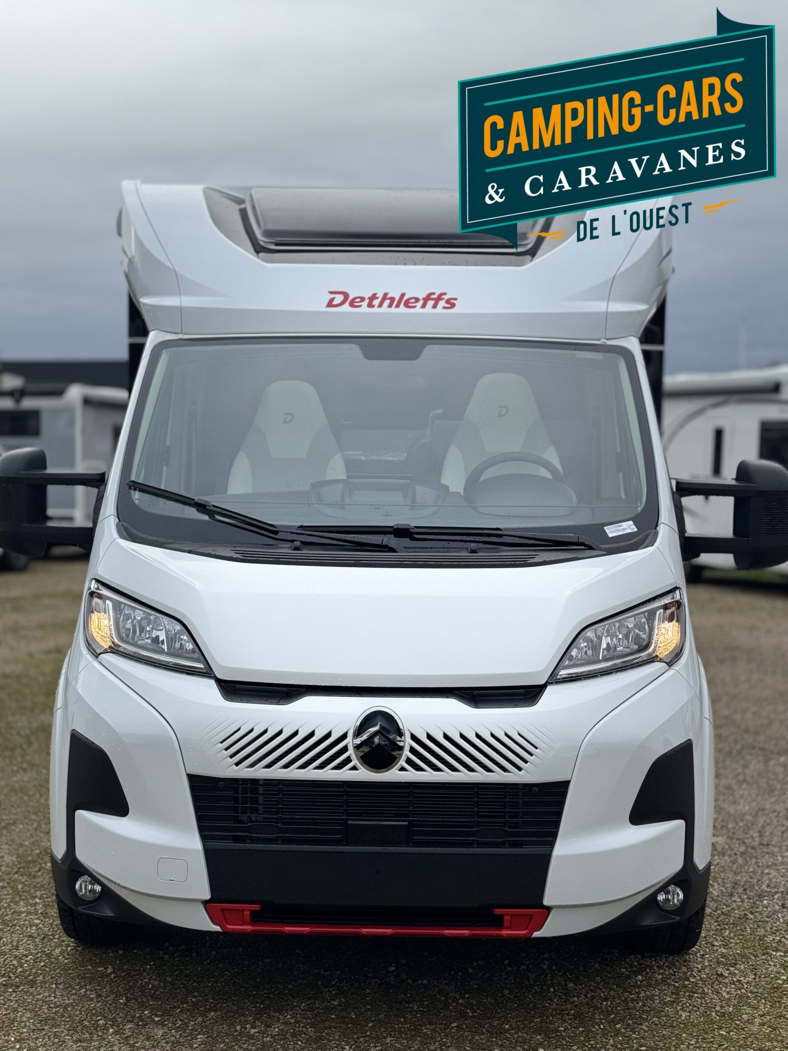 – Pack Active : Caméra de recul (non compatible avec l’écran d’origine porteur), Commande digitale CP Plus pour chauffage / chauffe-eau à air pulsé, Système de navigation Dethleffs y compris DAB+, Truck Navigation, Apple CarPlay et Android Auto sans fil, Light Moments : Eclairage paroi de cuisine, Héron– tissu & simili cuir, Design extérieur Active (support de feux arrière avec diffuseur noir, stickage, spécifique, lame de pare-chocs avant rouge)ique GT), Pré équipement climatisation de toit, Store Omnistor 4,5 m (manuel), Baie dans cabinet de toilette