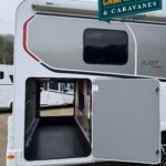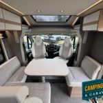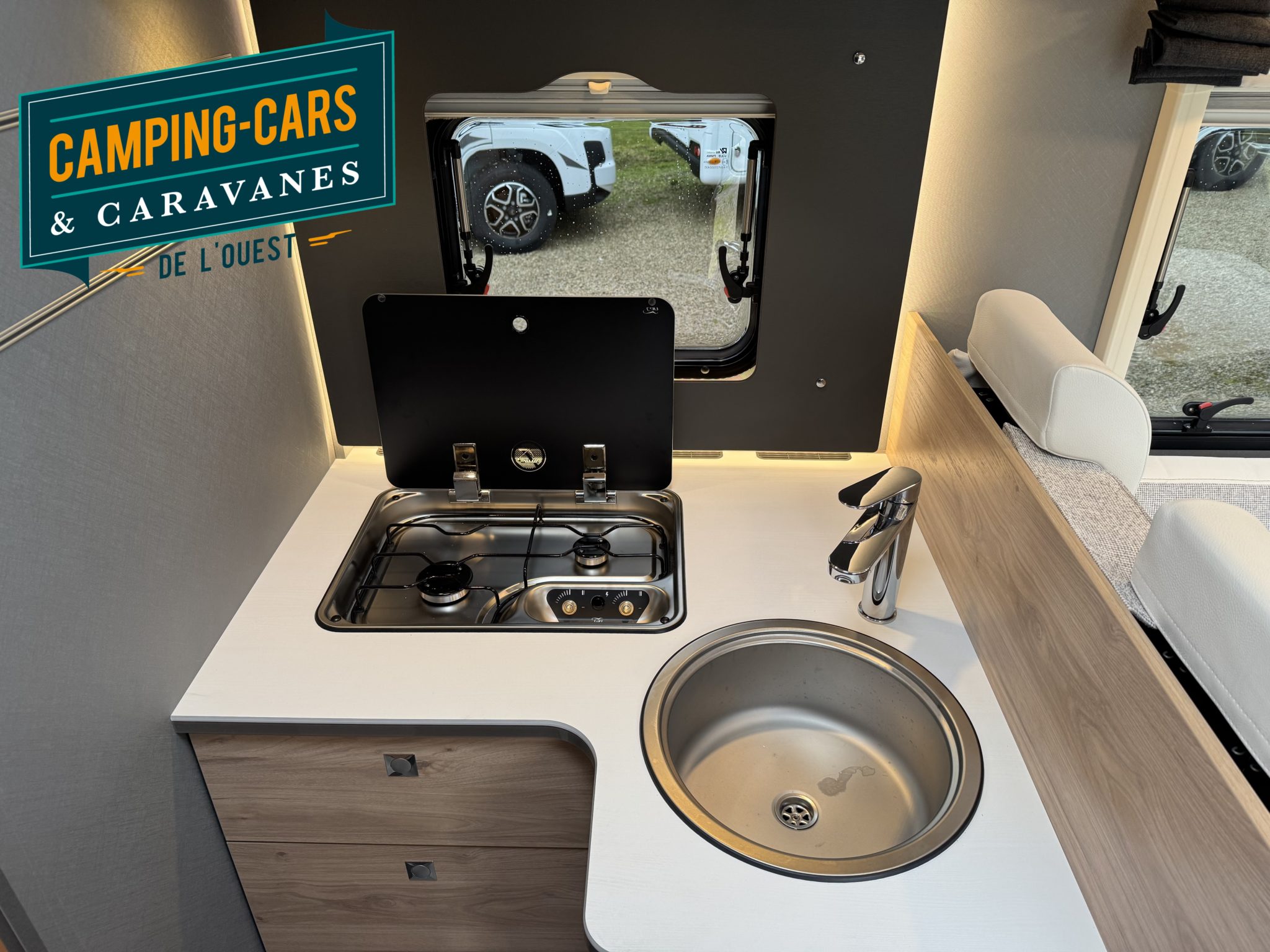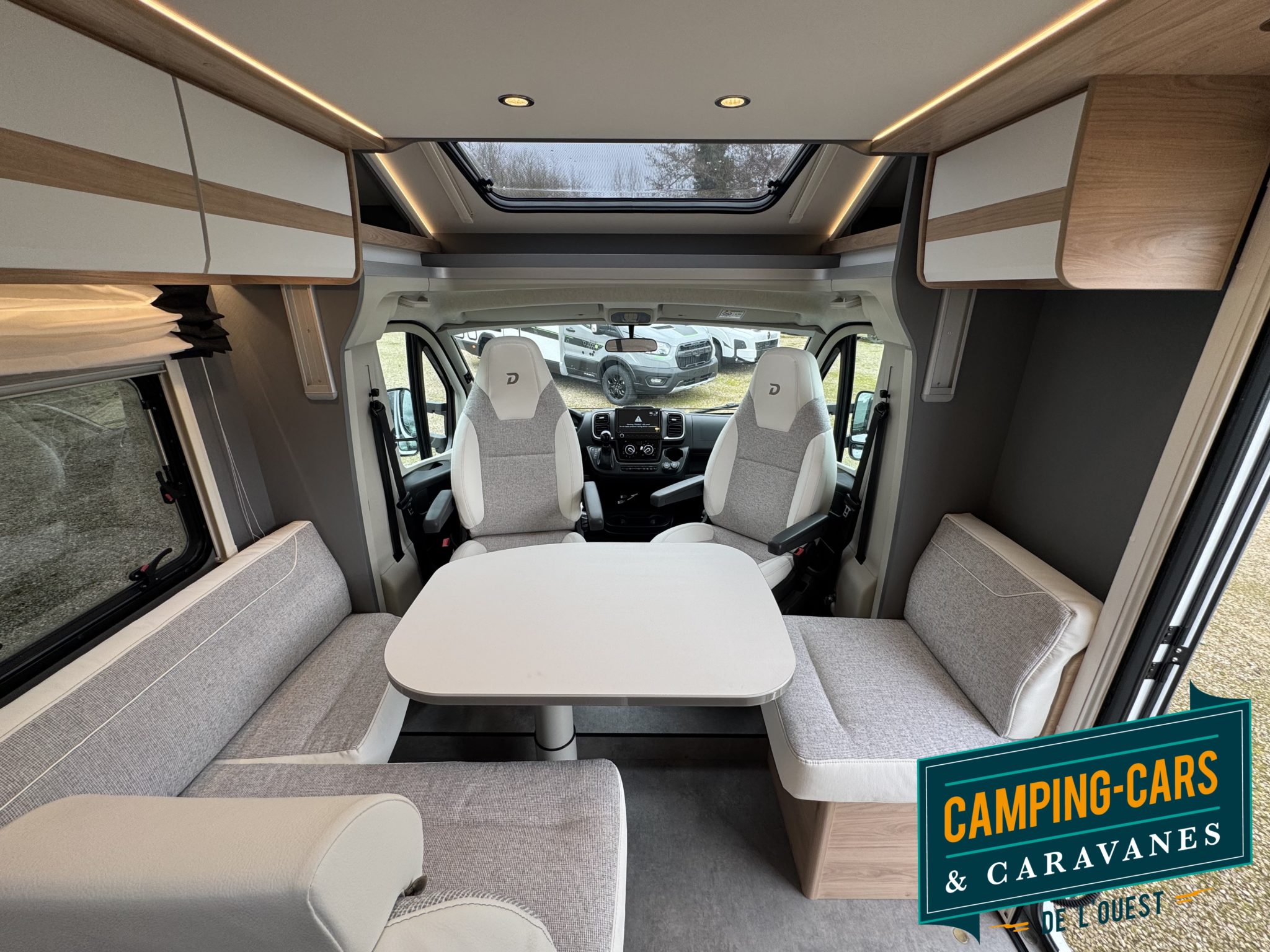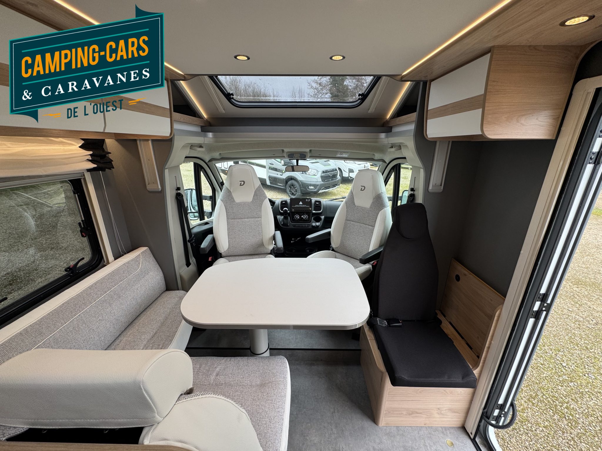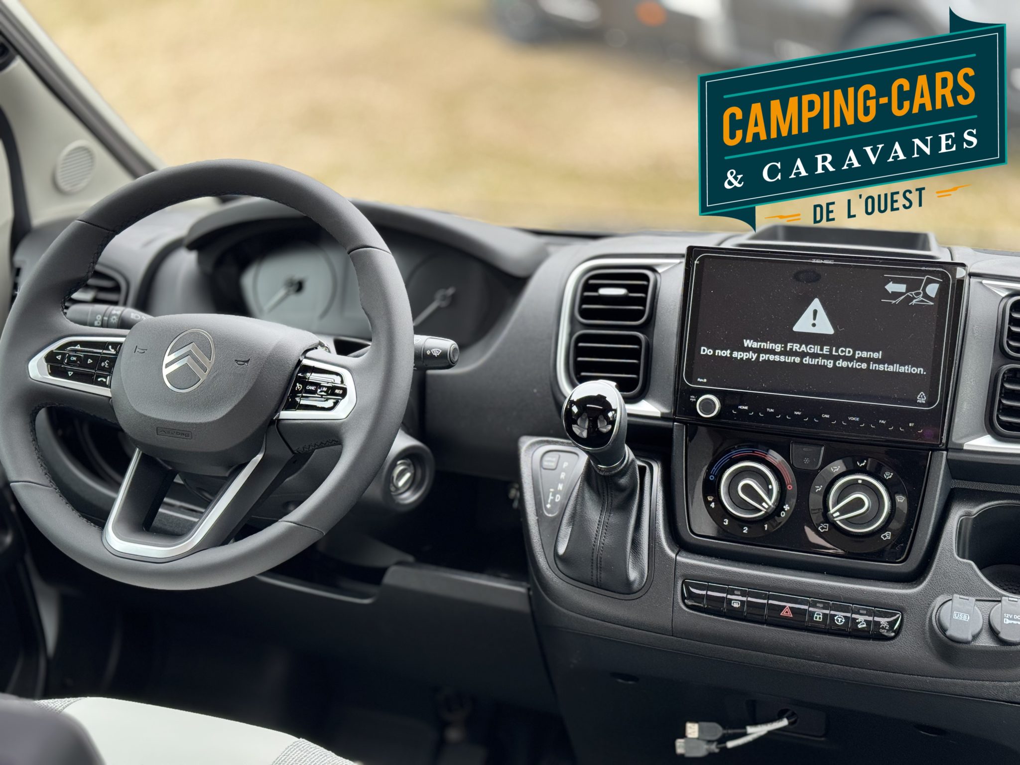 – Pack Active : Caméra de recul (non compatible avec l’écran d’origine porteur), Commande digitale CP Plus pour chauffage / chauffe-eau à air pulsé, Système de navigation Dethleffs y compris DAB+, Truck Navigation, Apple CarPlay et Android Auto sans fil, Light Moments : Eclairage paroi de cuisine, Héron– tissu & simili cuir, Design extérieur Active (support de feux arrière avec diffuseur noir, stickage, spécifique, lame de pare-chocs avant rouge)ique GT), Pré équipement climatisation de toit, Store Omnistor 4,5 m (manuel), Baie dans cabinet de toilette