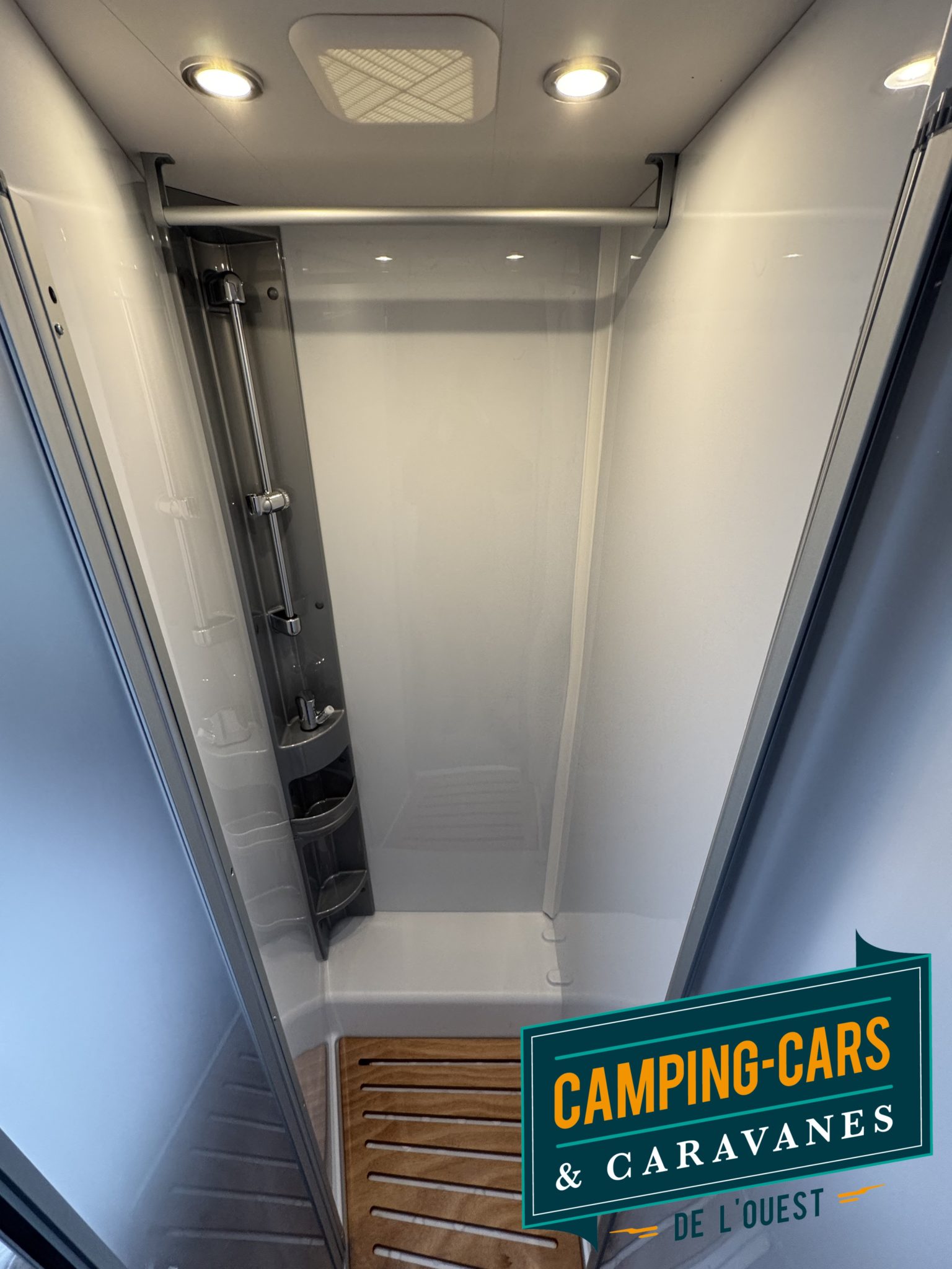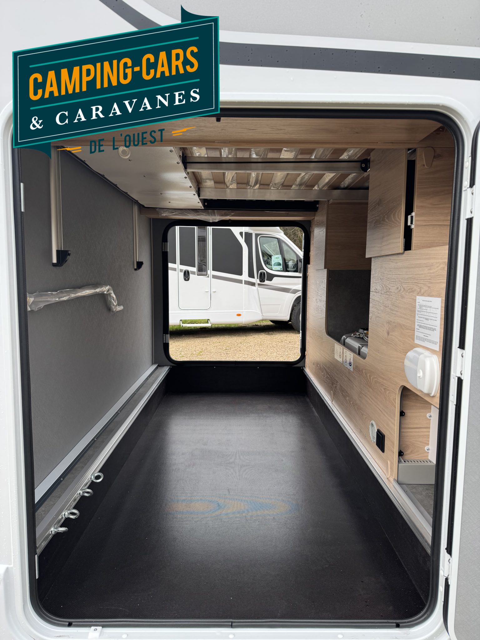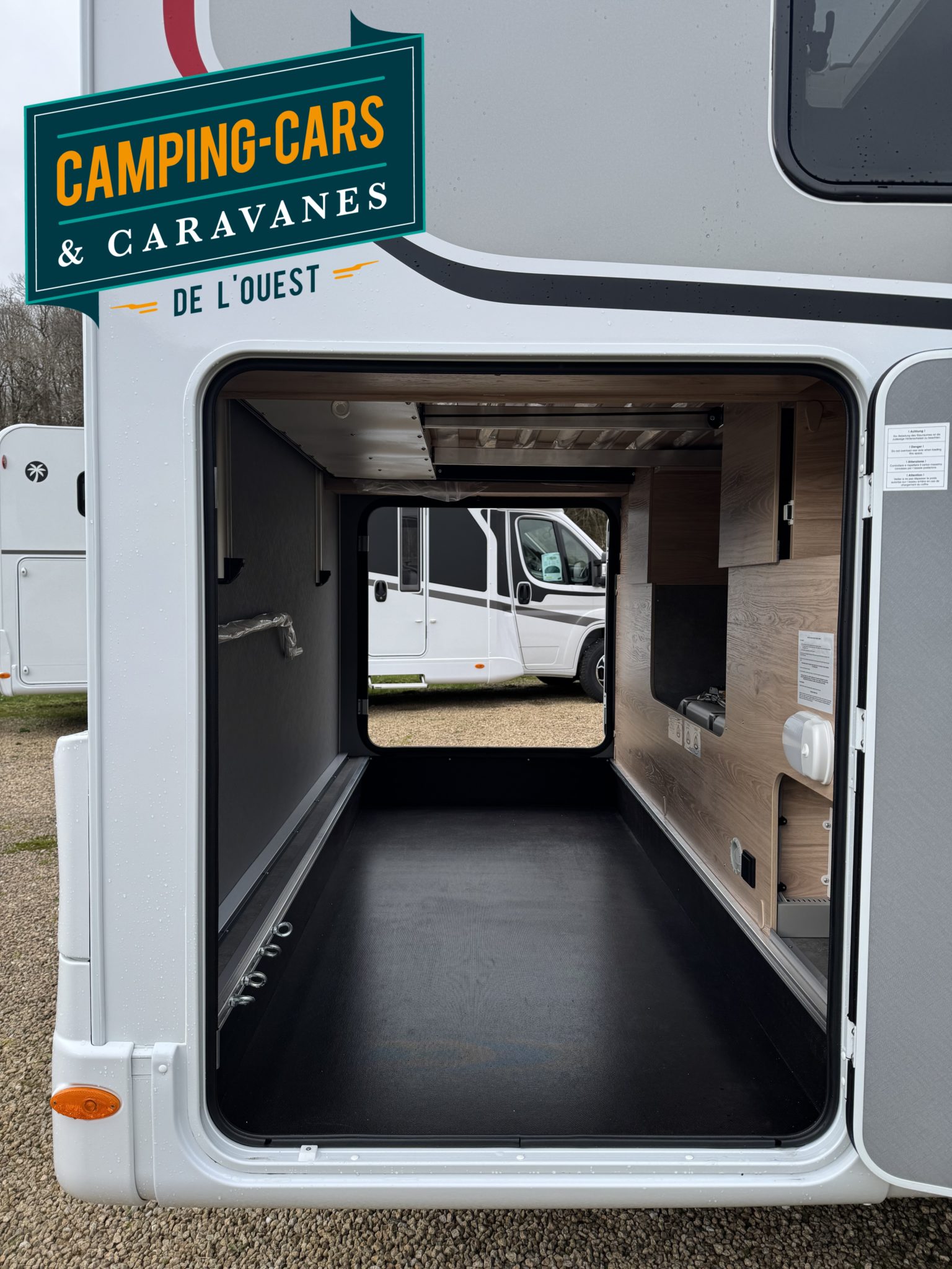– Grande soute garage avec deux portes, rallonges surbaissées, capacité de charge de 150 kg, revêtement antidérapant, chauffée, rails d’arrimage, éclairage et prise 230 V