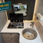 – Bloc-cuisine avec plaque de cuisson 2 feux, grands et profonds tiroirs coulissants avec freins (Softclose) et vaste plan de travail.