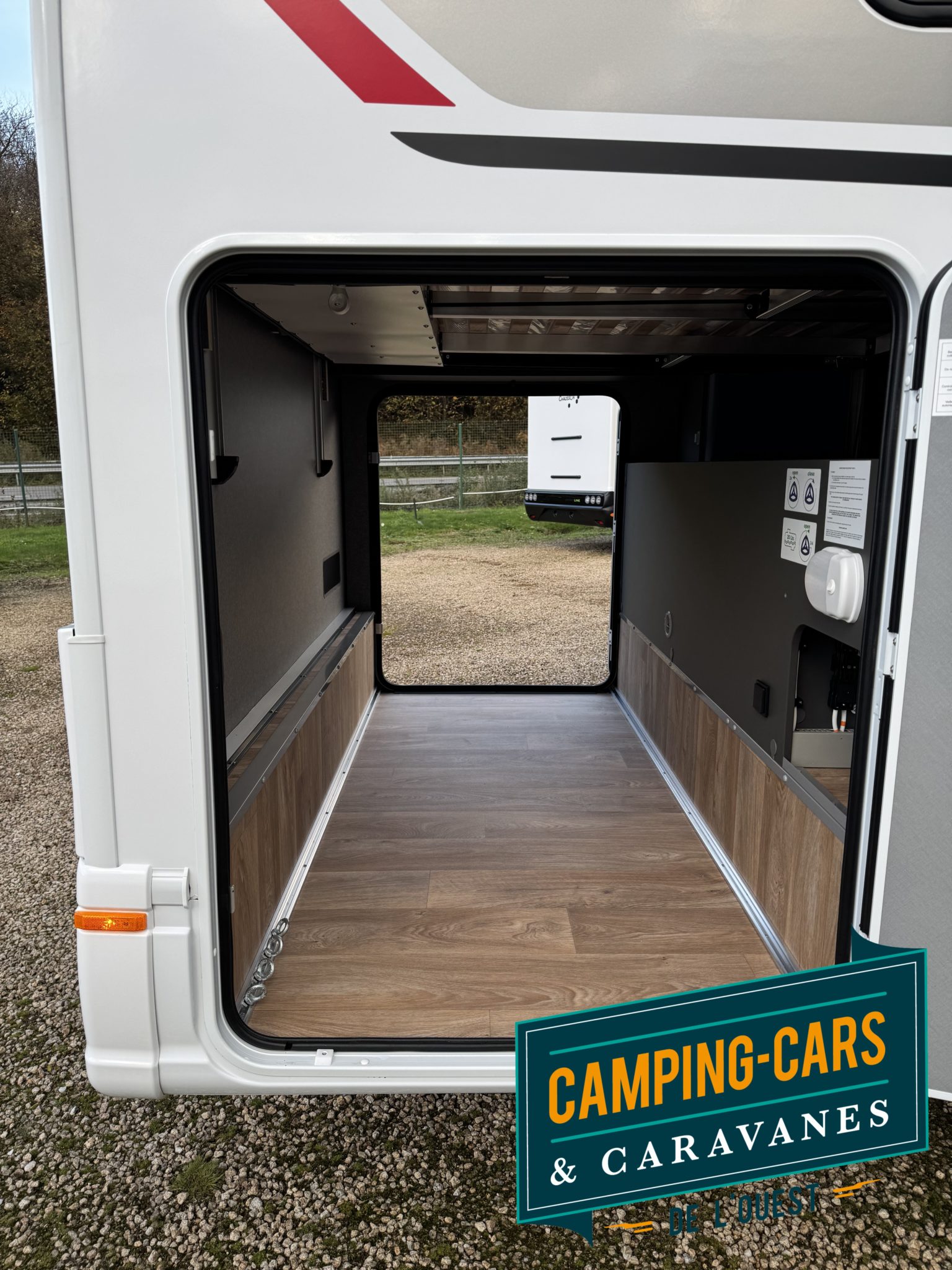 – Soute garage arrière avec 2 portes, ouverture d’une seule main, rallonges surbaissées, charge maximale 150 kg, rails d’arrimage, une prise 230 V – éclairée et chauffée