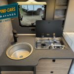 – Bloc-cuisine avec plaque de cuisson 2 feux, grands et profonds tiroirs coulissants avec freins (Softclose) et vaste plan de travail.