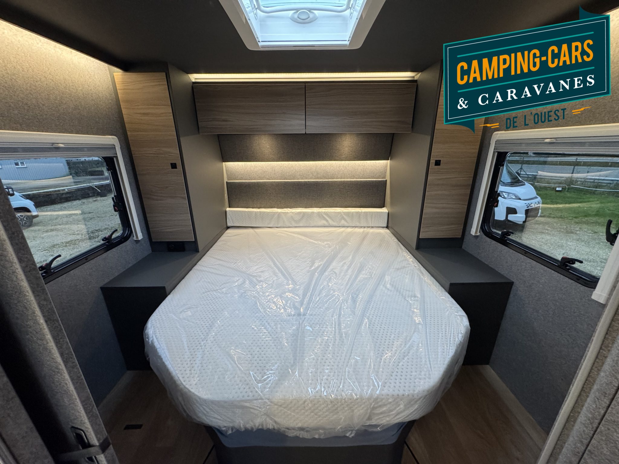 – Lanterneau 40 x 40 cm au dessus du lit arrière