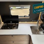 – Bloc-cuisine avec plaque de cuisson 2 feux, grands et profonds tiroirs coulissants avec freins (Softclose) et vaste plan de travail.