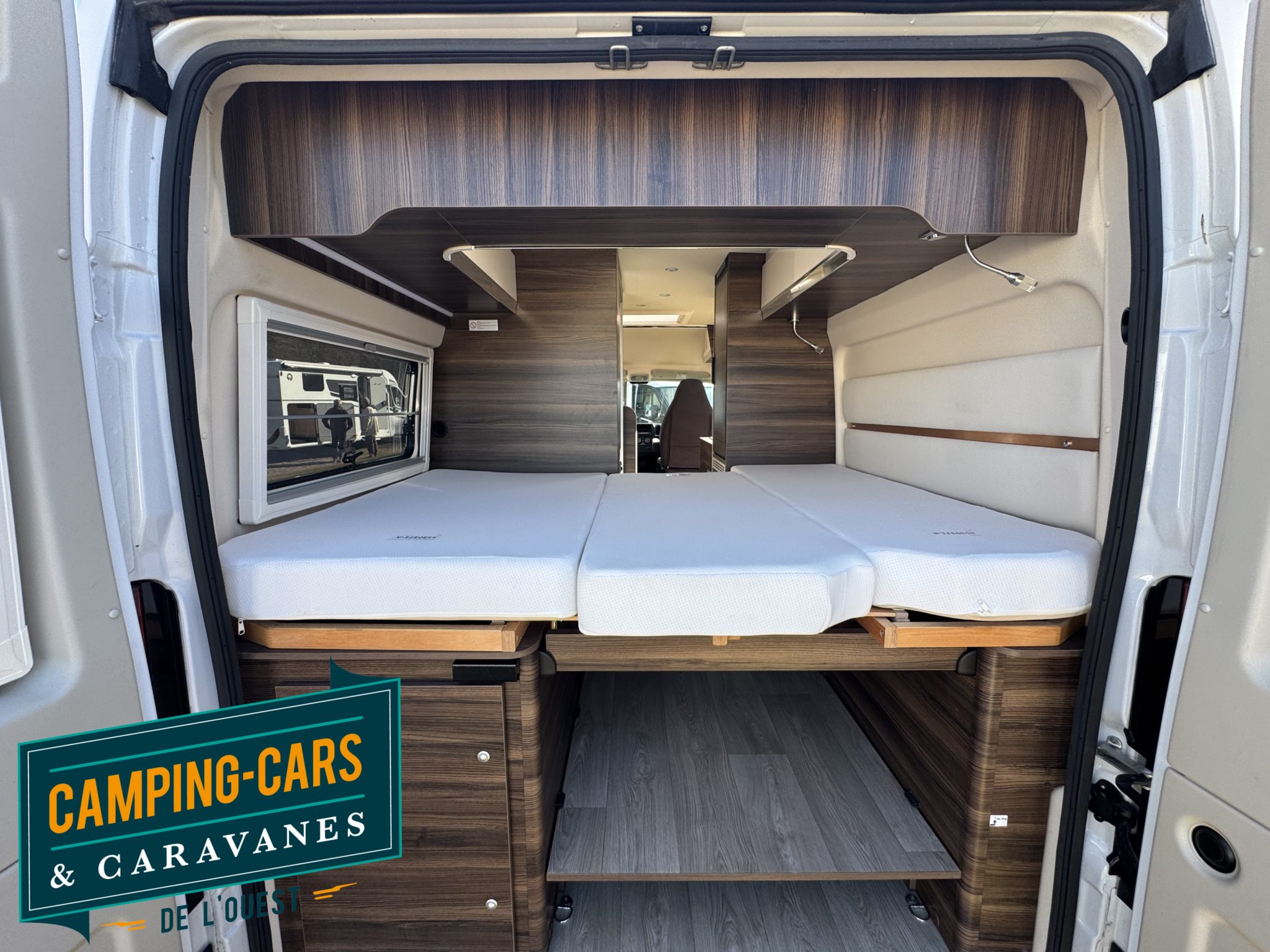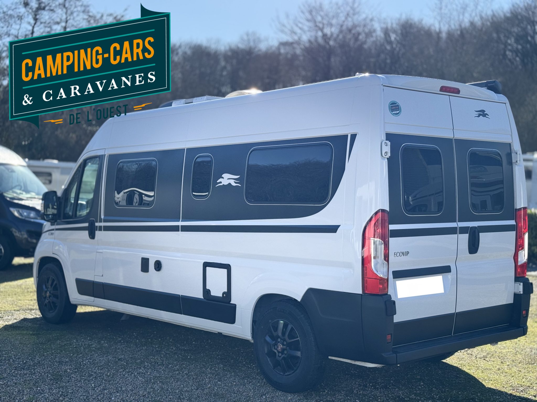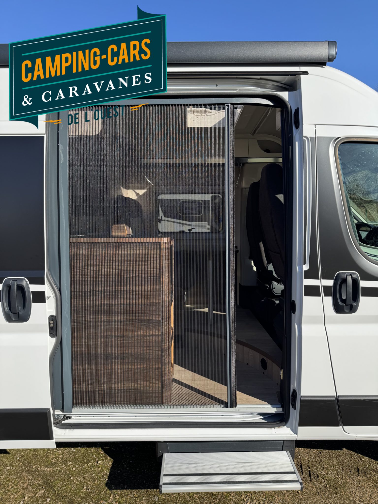– Pack Confort Ecovip : Moustiquaire pour la porte latérale, Prédisposition caméra de recul, Réservoir eaux usées isolé, Réservoir eaux usées chauffé, Baie arrière côté gauche, Éclairage extérieur LED et système de gouttière pour la porte coulissante, Caillebotis de douche, Upgrade cuisine: surface latérale rabattable et compartiments de rangement ouverts éclairés à l’entrée