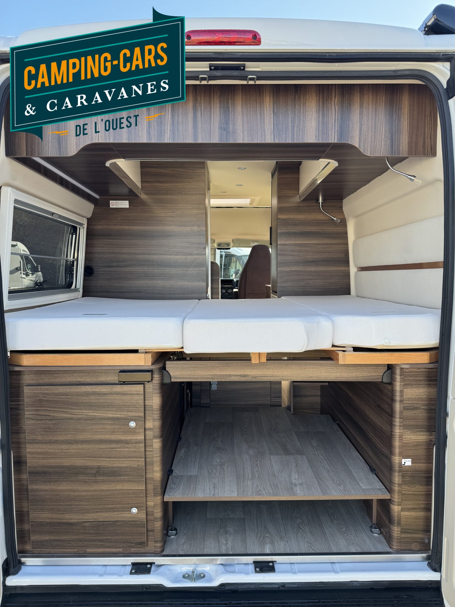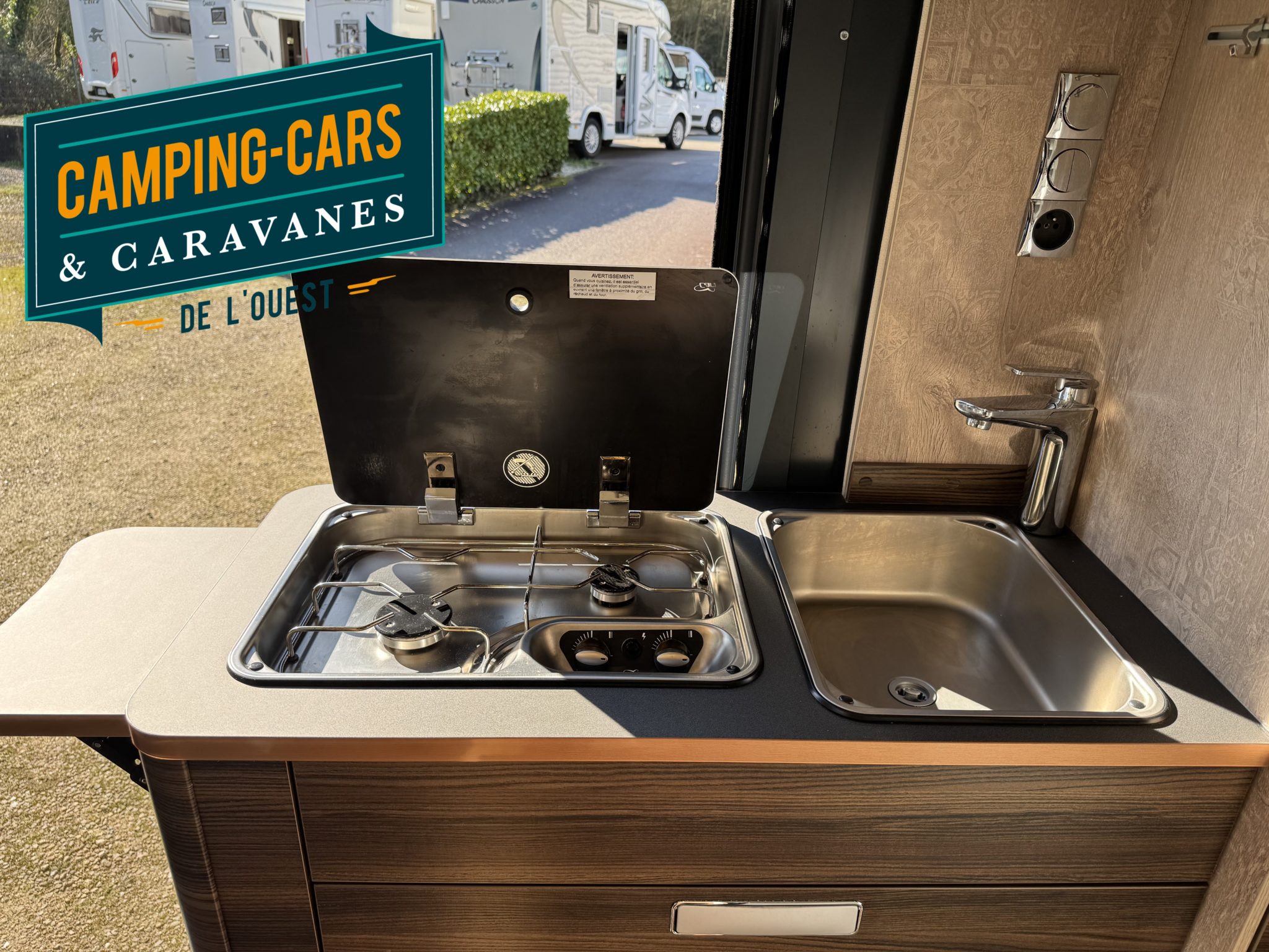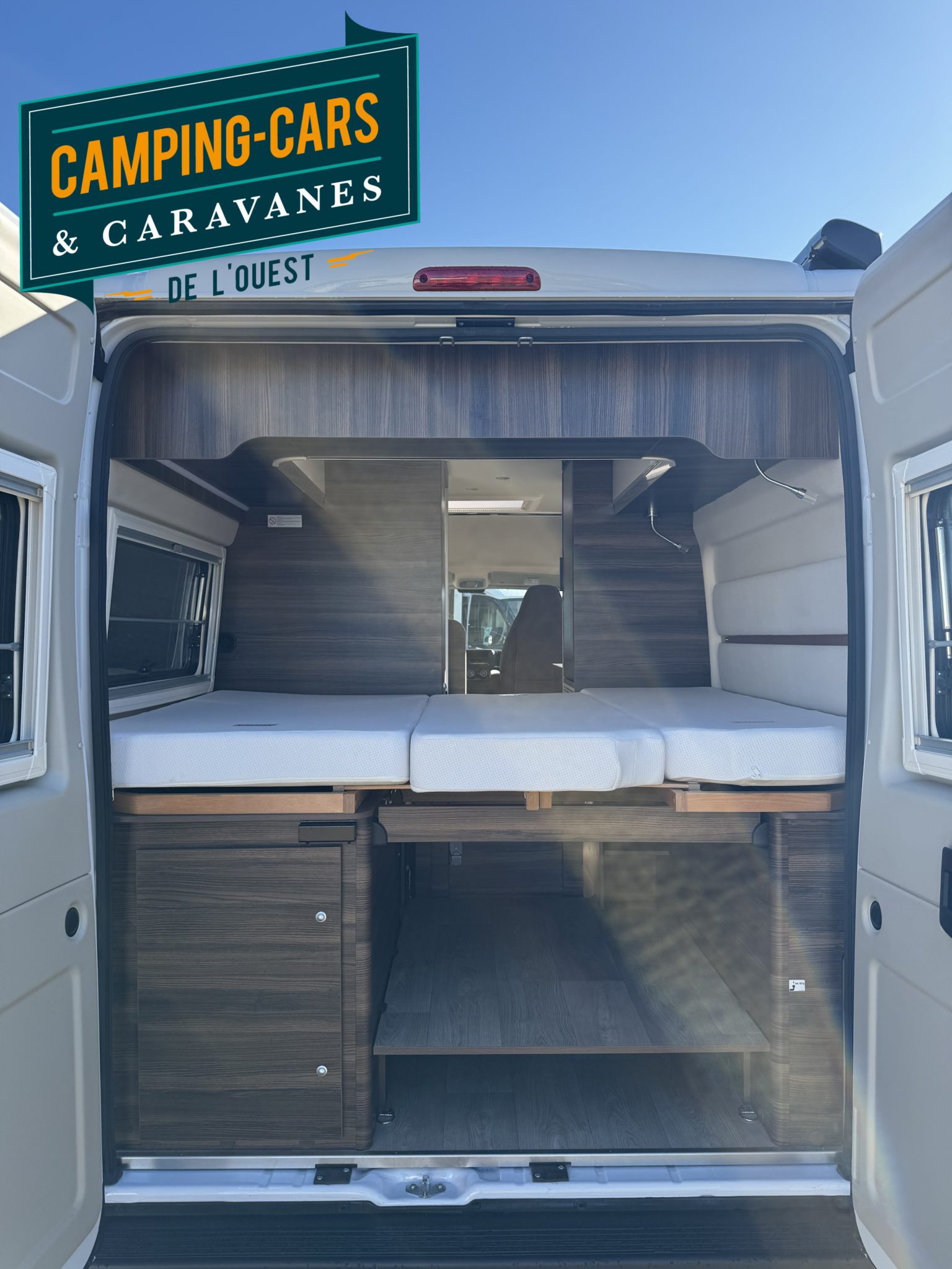 – Pack Confort Ecovip : Moustiquaire pour la porte latérale, Prédisposition caméra de recul, Réservoir eaux usées isolé, Réservoir eaux usées chauffé, Baie arrière côté gauche, Éclairage extérieur LED et système de gouttière pour la porte coulissante, Caillebotis de douche, Upgrade cuisine: surface latérale rabattable et compartiments de rangement ouverts éclairés à l’entrée