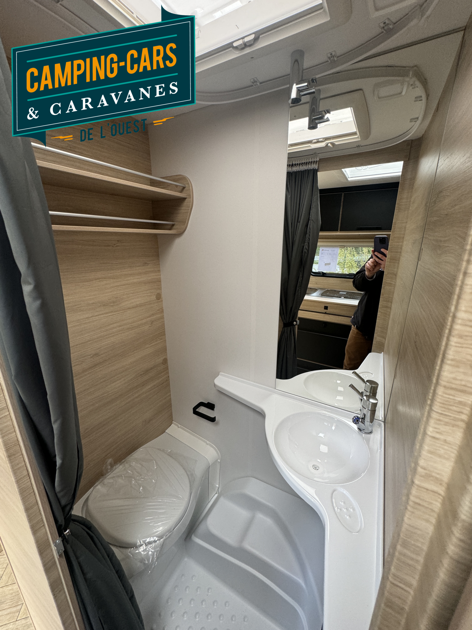 – Pack Shower : Support douchette, Douchette, Rideau de douche, Réservoir d’eau 50L, Réservoir eaux usées 30L, Chauffe-eau 5L