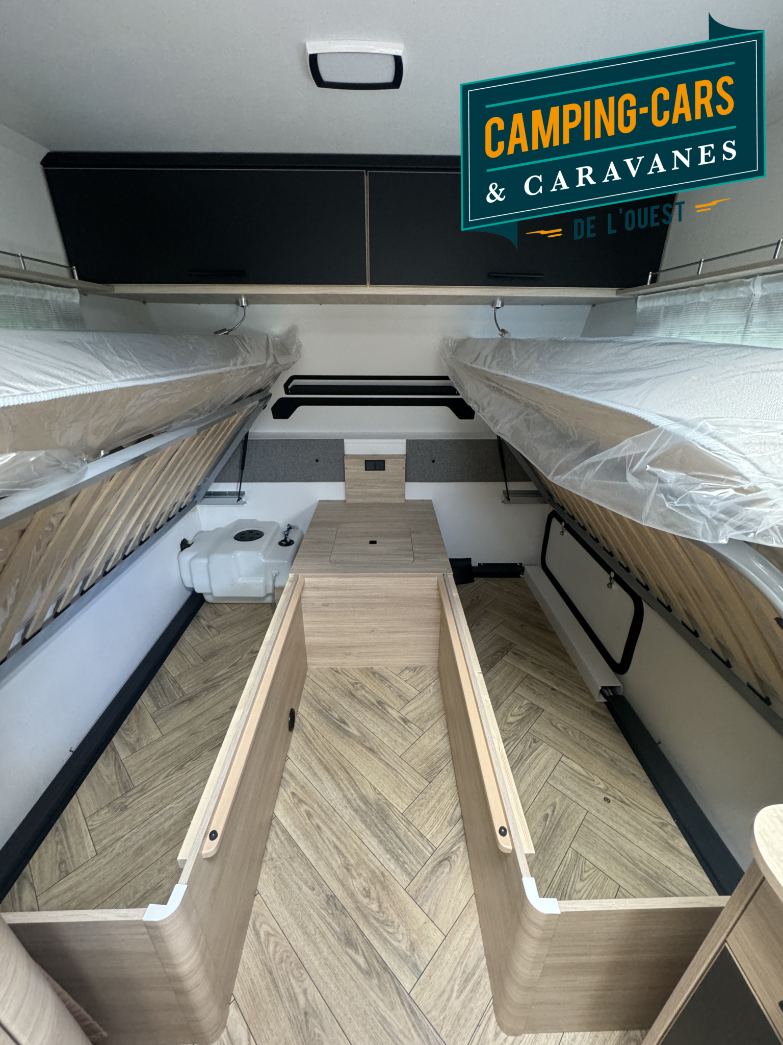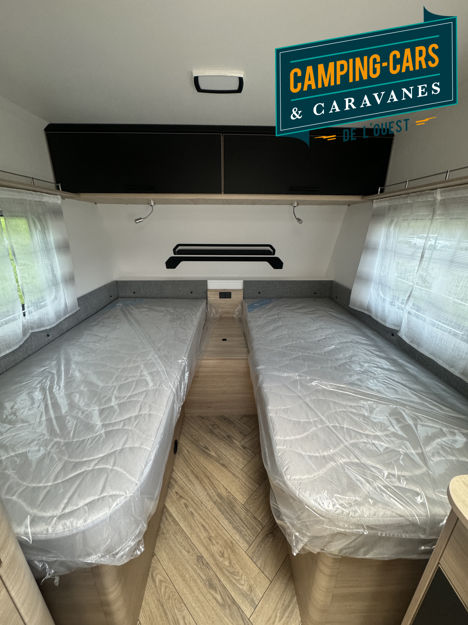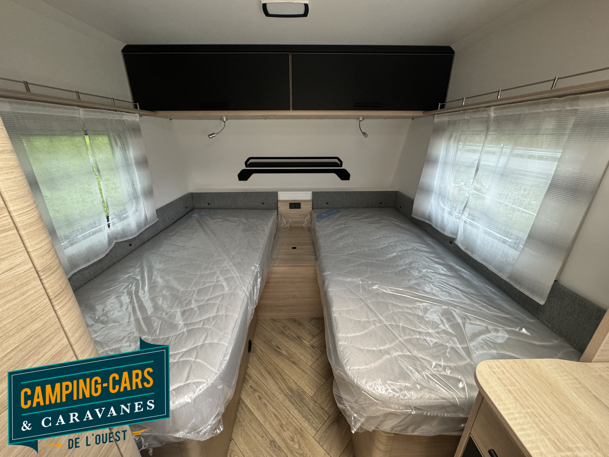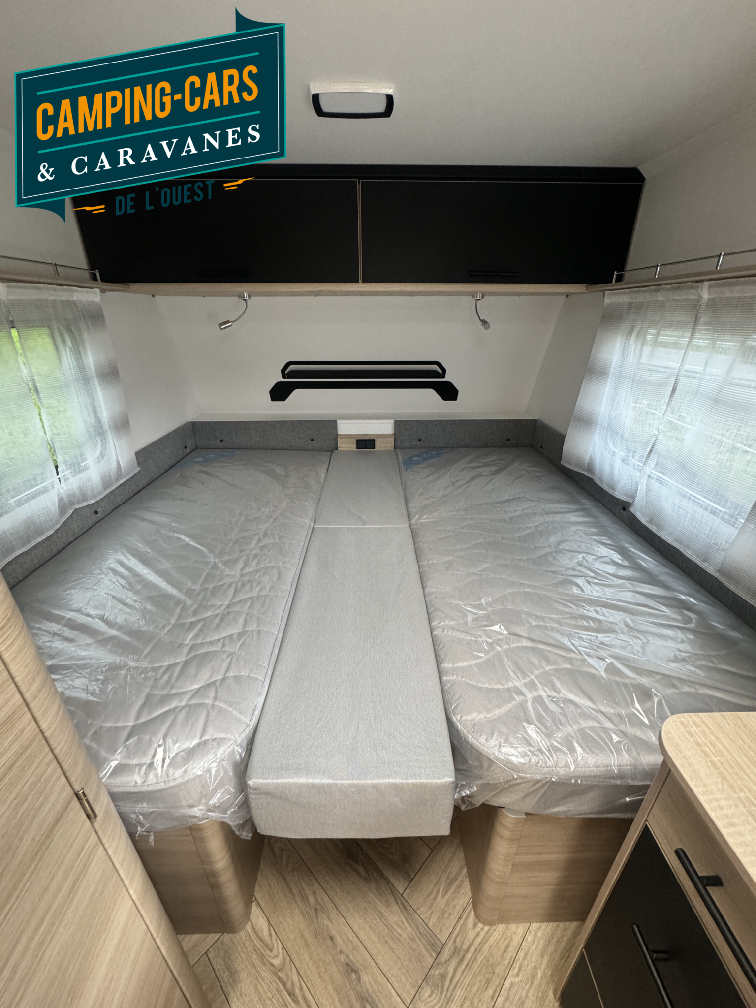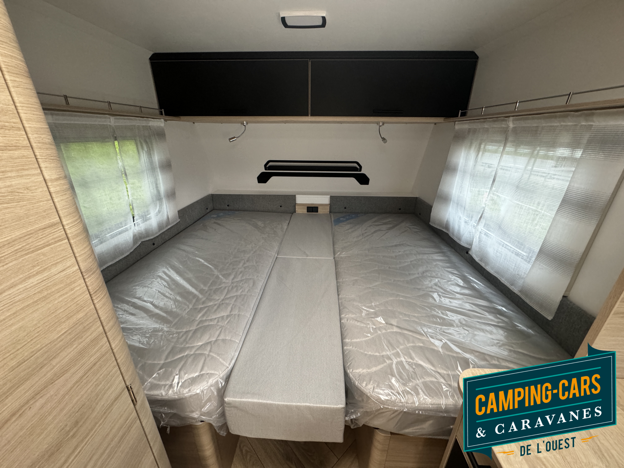 – Pack Cosy : Portillon extérieur latéral (100×40), Lanterneau panoramique (70×50), Matelas premium, Moustiquaire, Spots de lecture lit parents