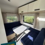 Vous voyagerez aisément avec cette caravane compacte facile à manœuvrer. Elle accueillera jusqu’à 3/4 personnes avec deux lits doubles dont un fixe.