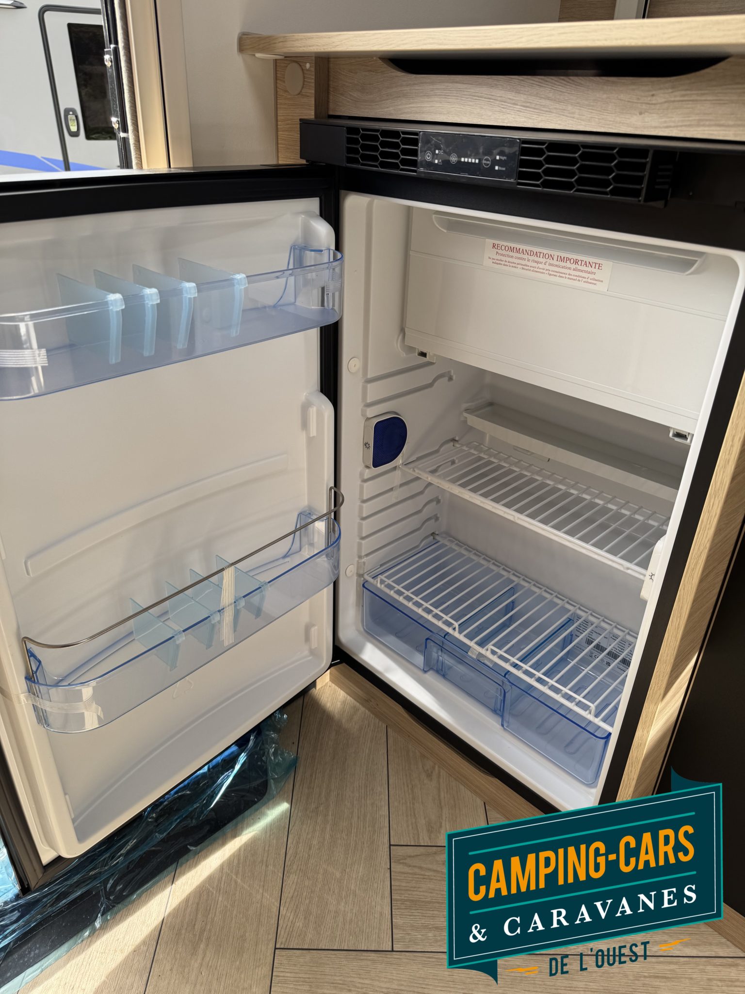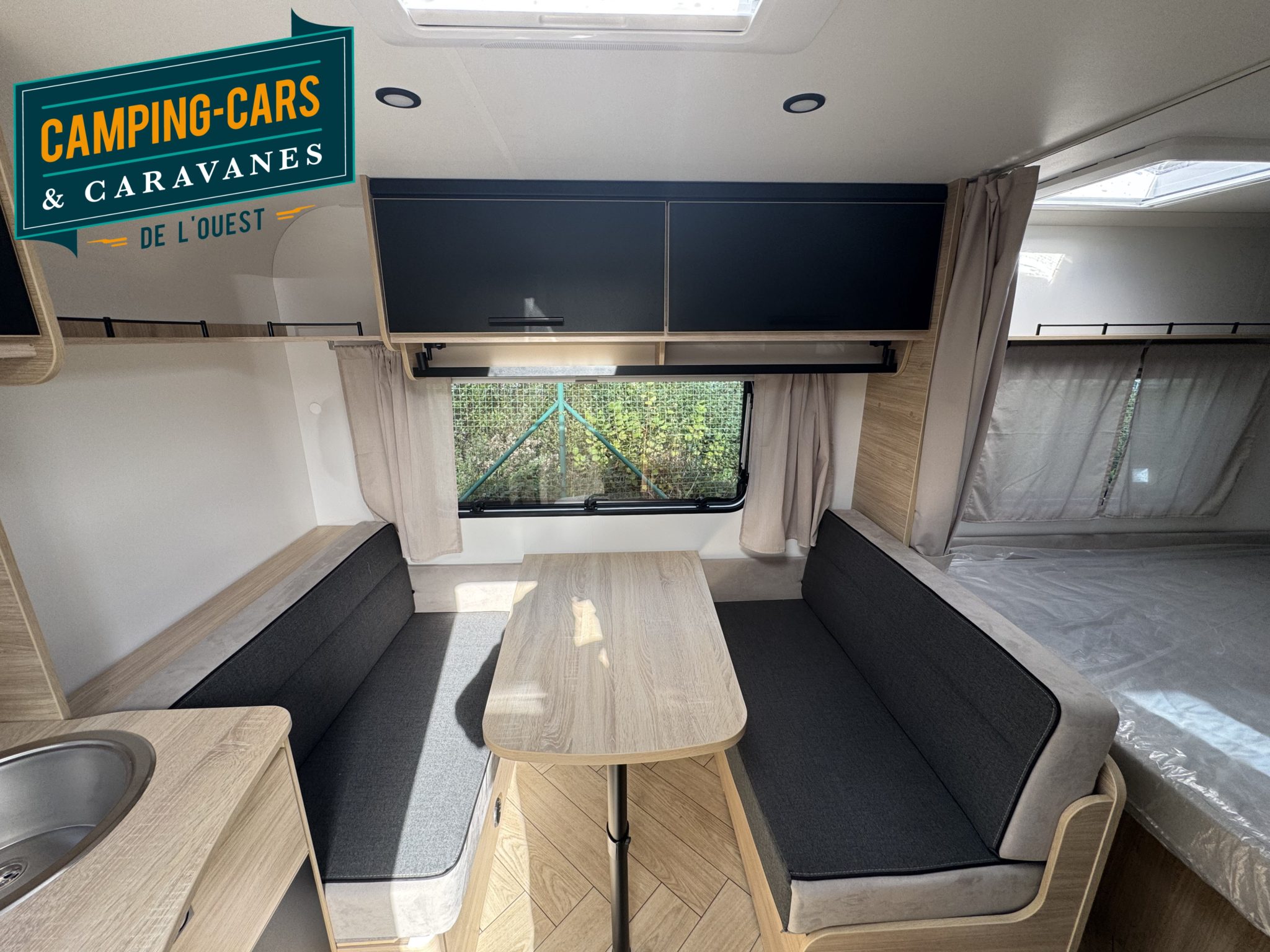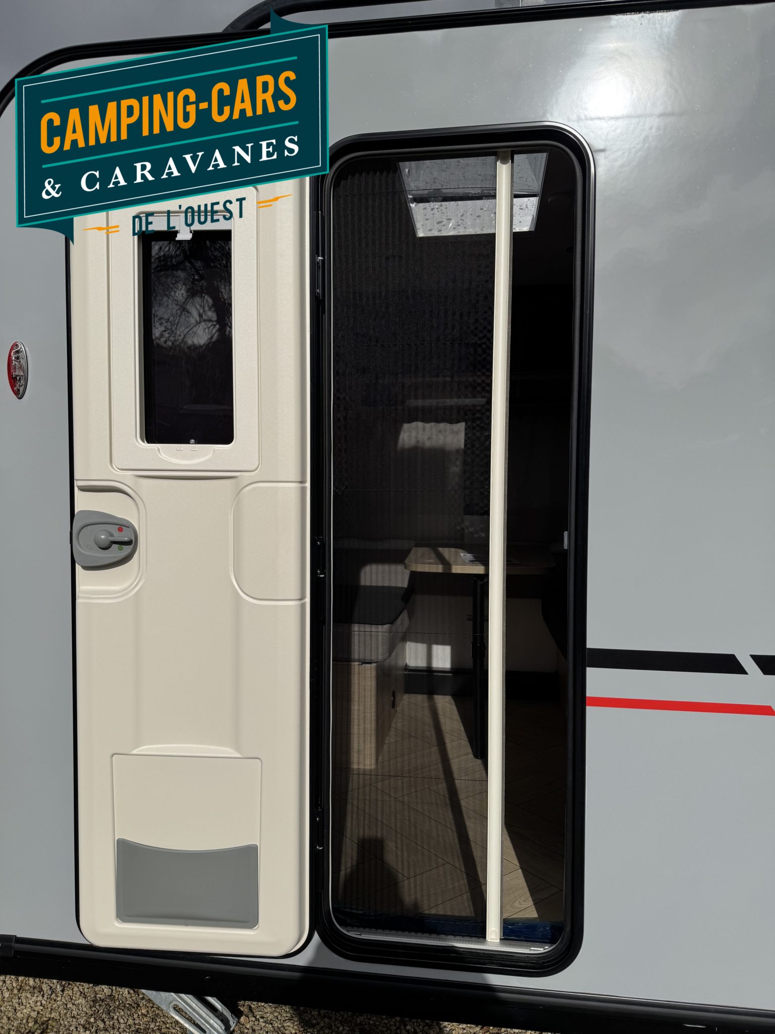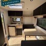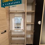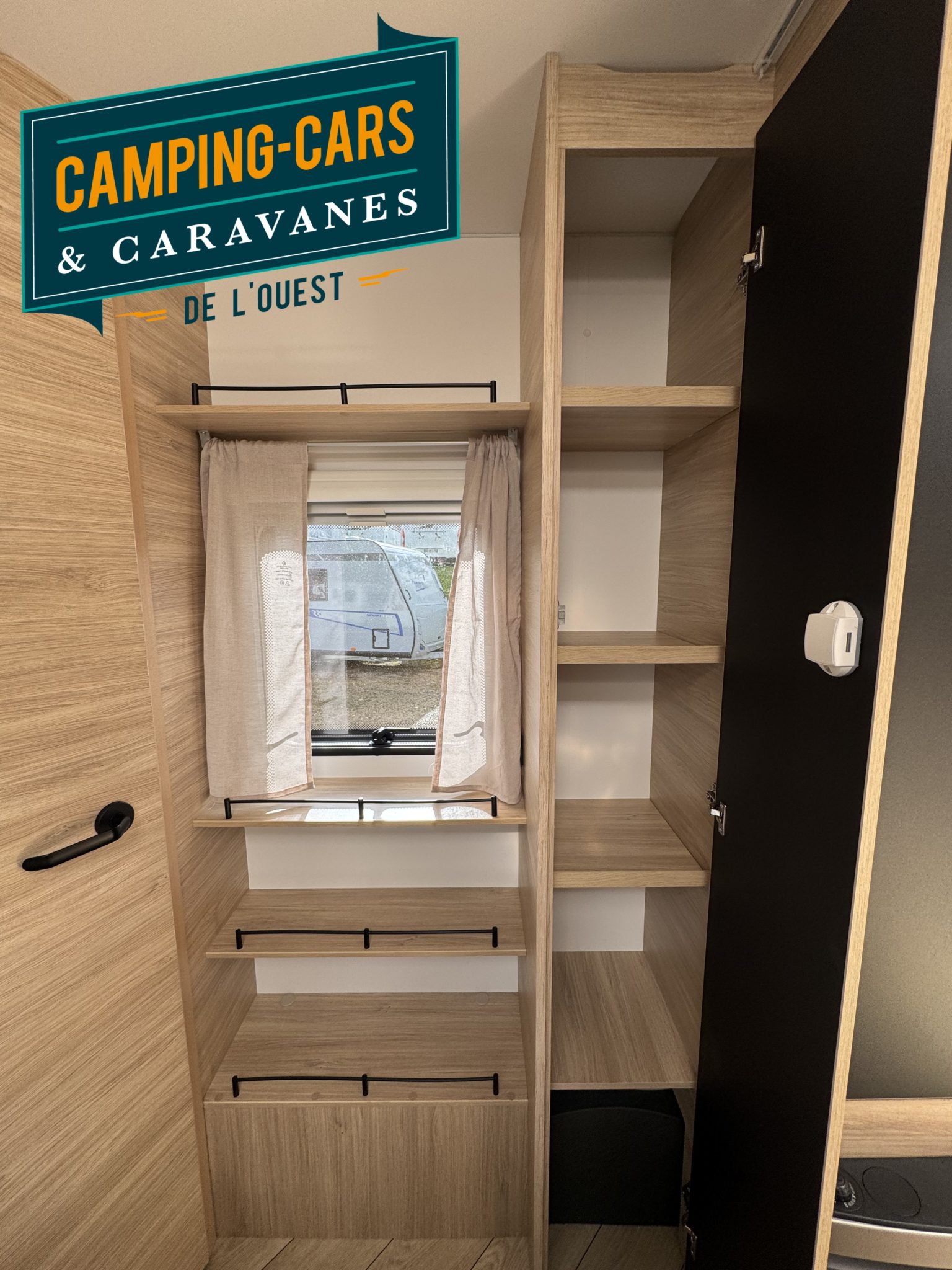 Cette caravane sans aucune concurrence est équipée d’un lit très confortable à la française de 2m et d’un grand nombre de rangements : penderie, lingère, étagères et range-bouteille.