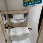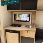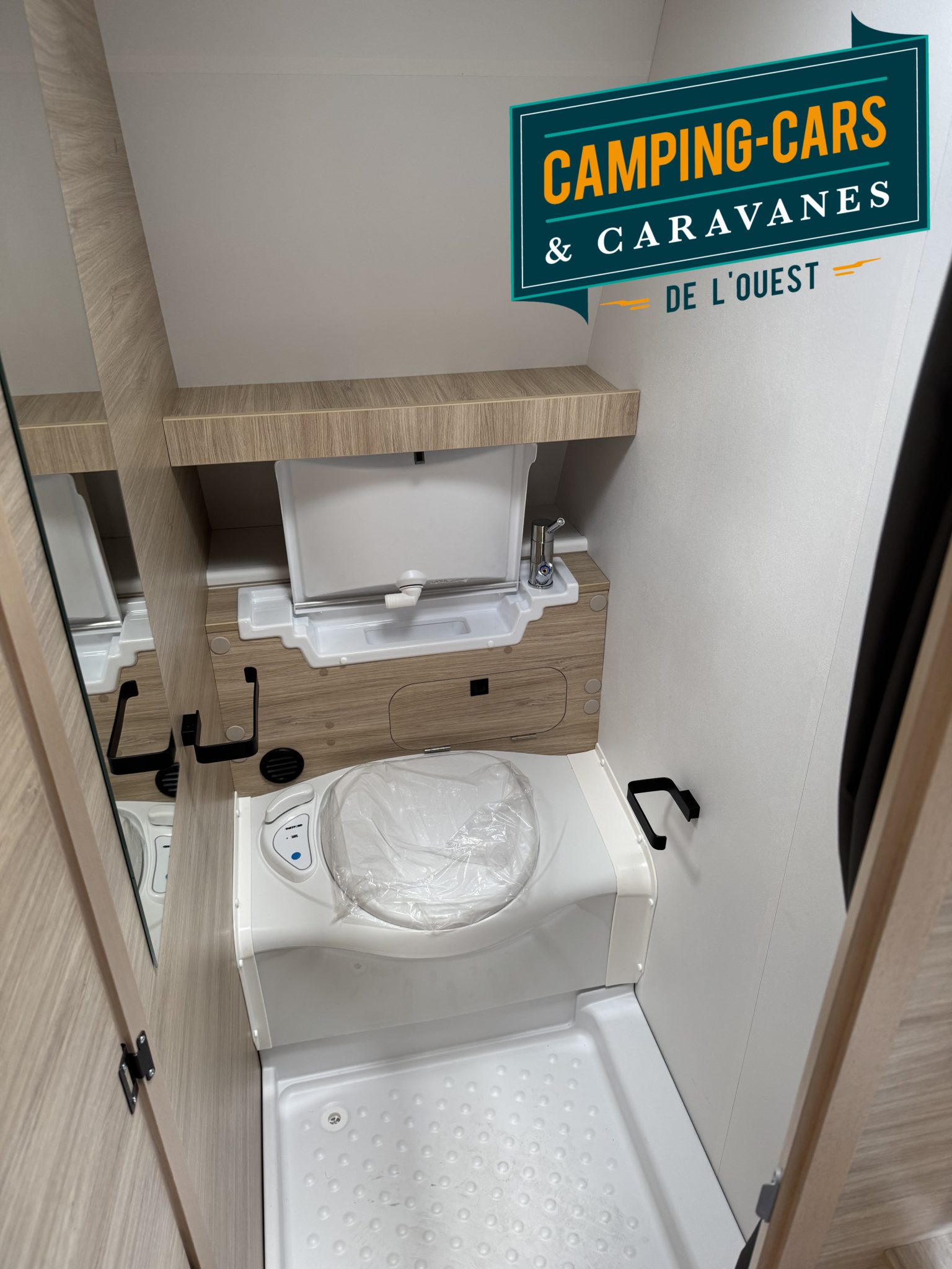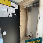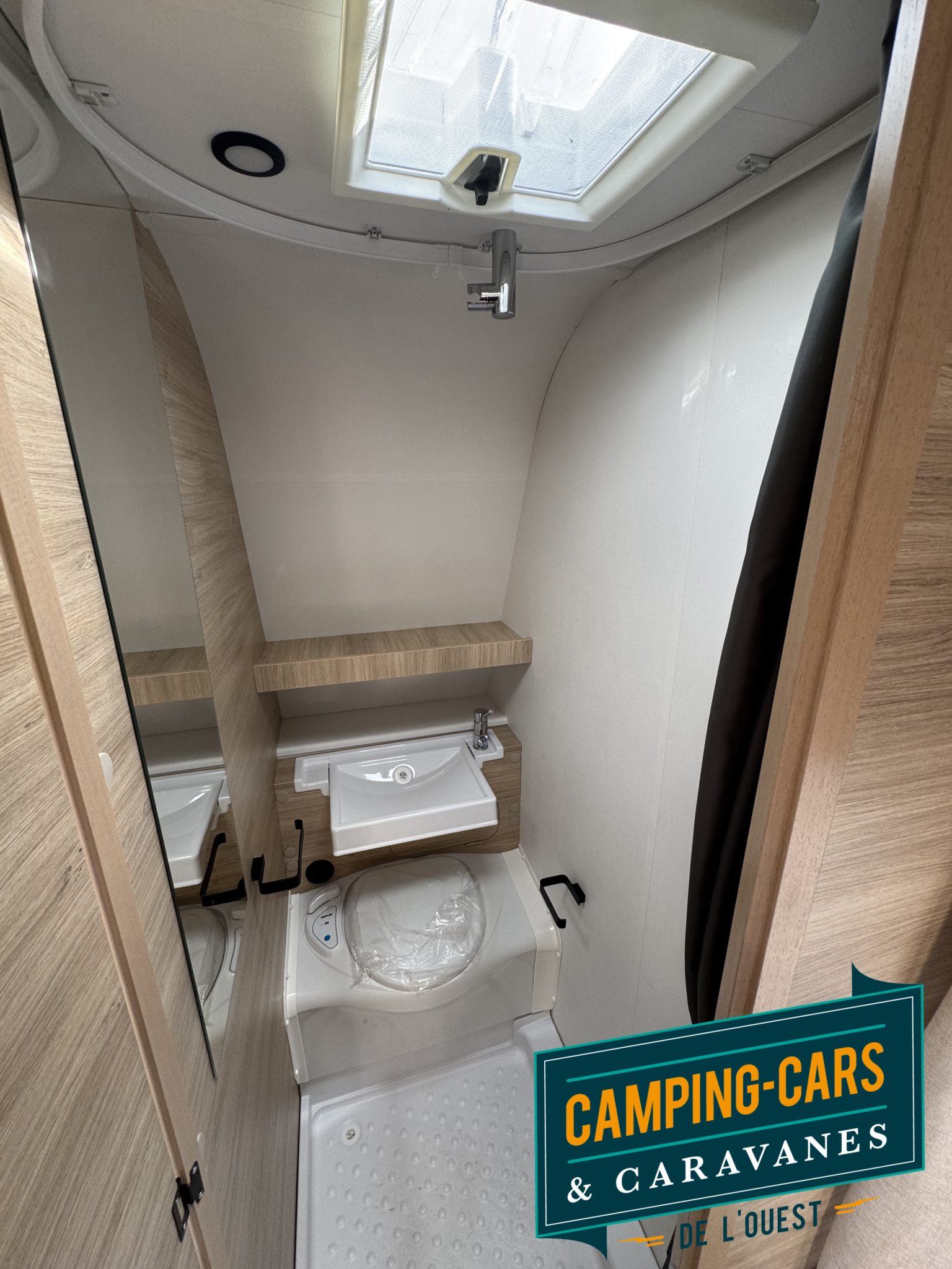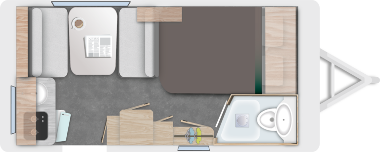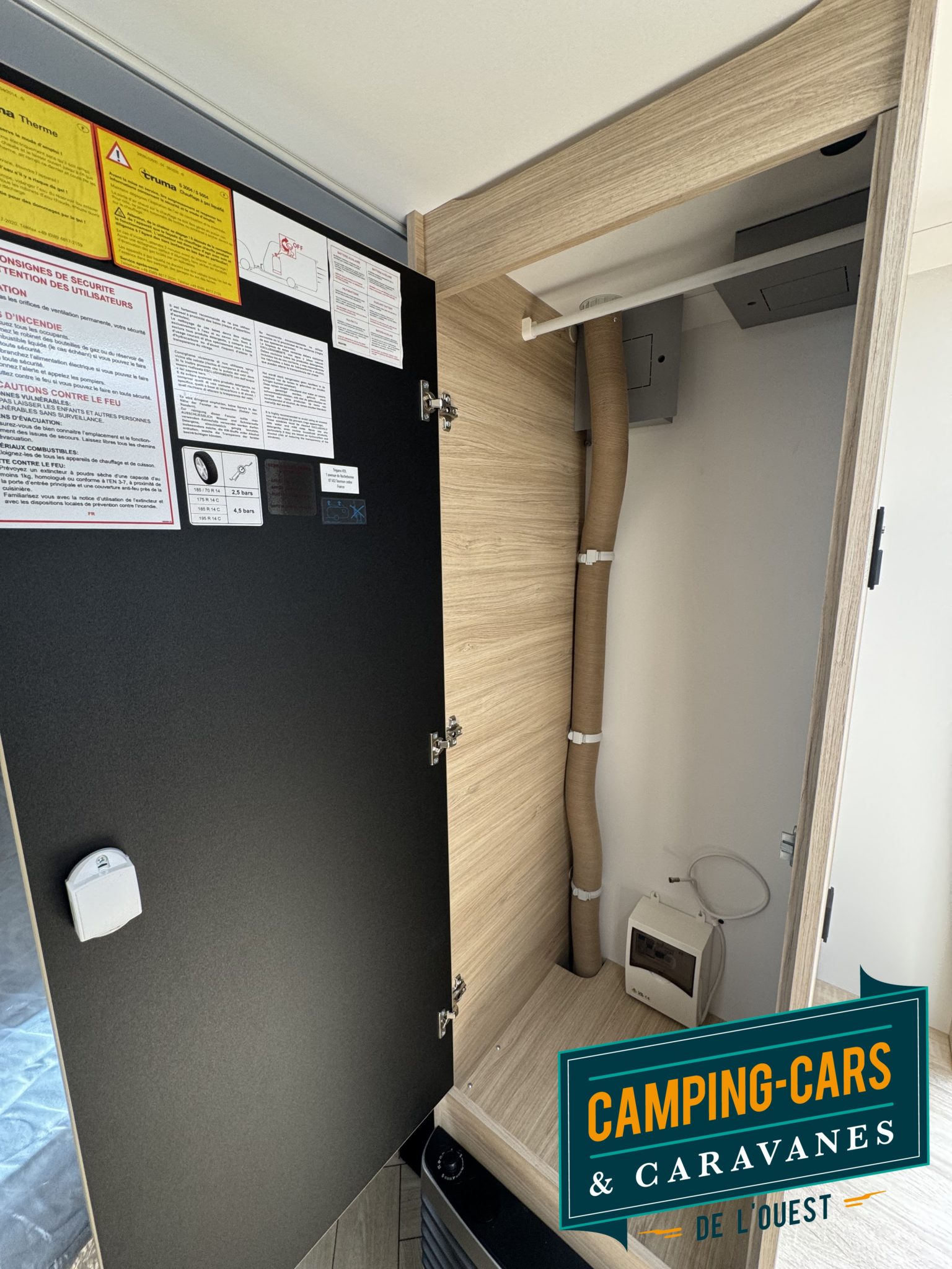 Cette caravane sans aucune concurrence est équipée d’un lit très confortable à la française de 2m et d’un grand nombre de rangements : penderie, lingère, étagères et range-bouteille.