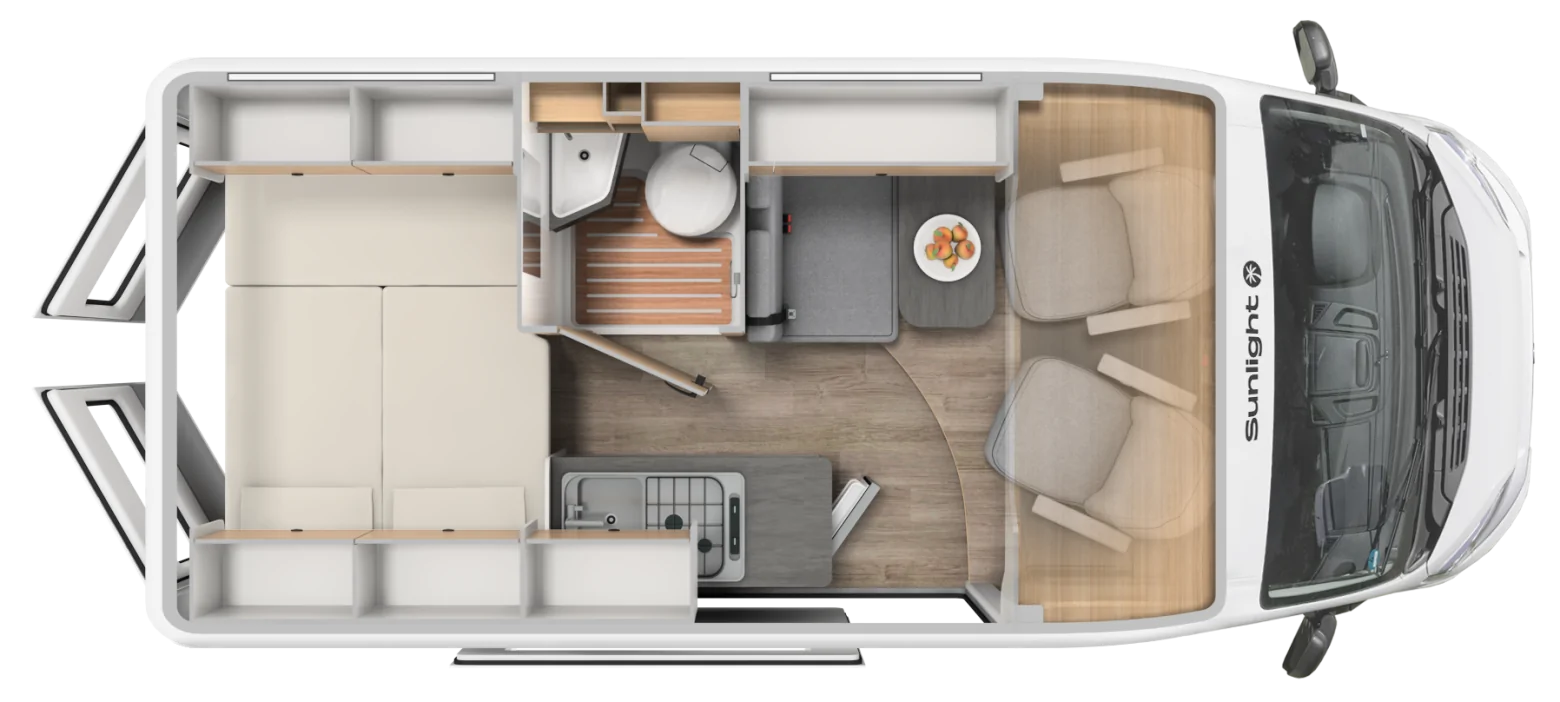 – Pack Soleil : Lanterneau panoramique 70 x 50 cm, Pack Douche, Baie dans le cabinet de toilette, Tringle à vêtements dans la salle d’eau, Large marchepied, Rallonge de table dans la dînette