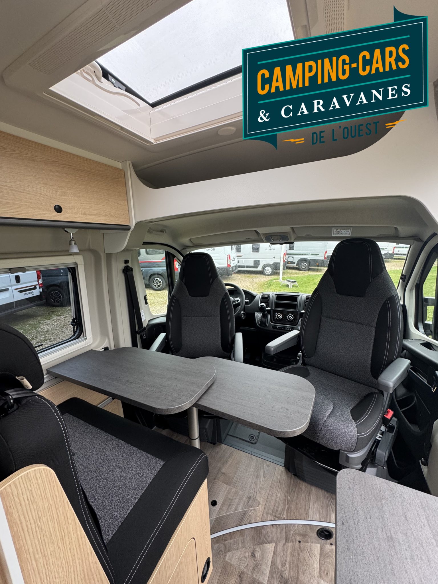 – Sièges conducteur et passager avec 2 accoudoirs et housses coordonnées à la cellule (Captain Chair)