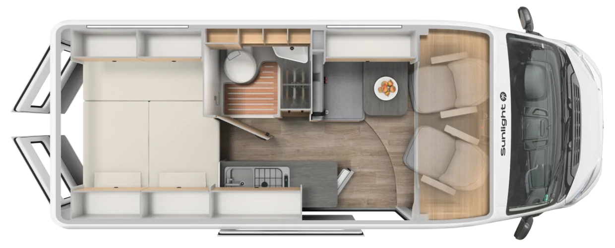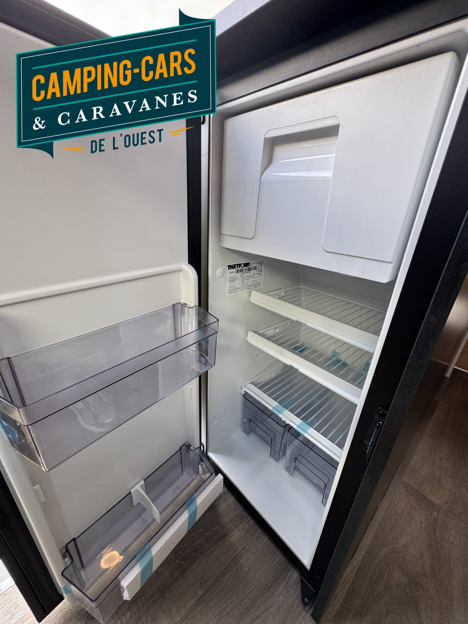 – Pack Soleil : Lanterneau panoramique 70 x 50 cm, Pack Douche, Baie dans le cabinet de toilette, Tringle à vêtements dans la salle d’eau, Large marchepied, Rallonge de table dans la dînette