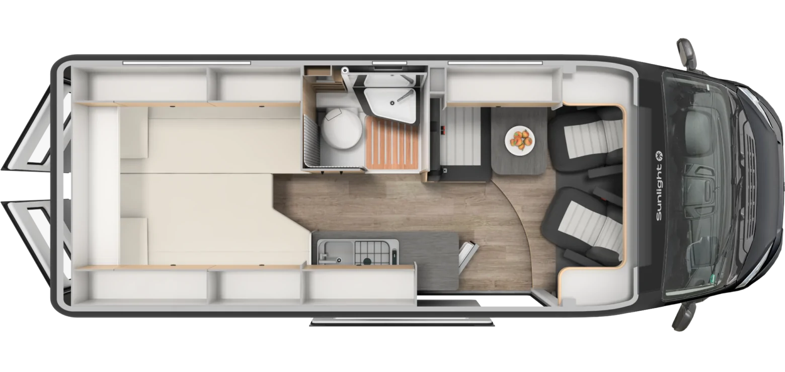 – Pack Soleil : Lanterneau panoramique 70 x 50 cm, Pack Douche, Baie dans le cabinet de toilette, Tringle à vêtements dans la salle d’eau, Large marchepied, Rallonge de table dans la dînette