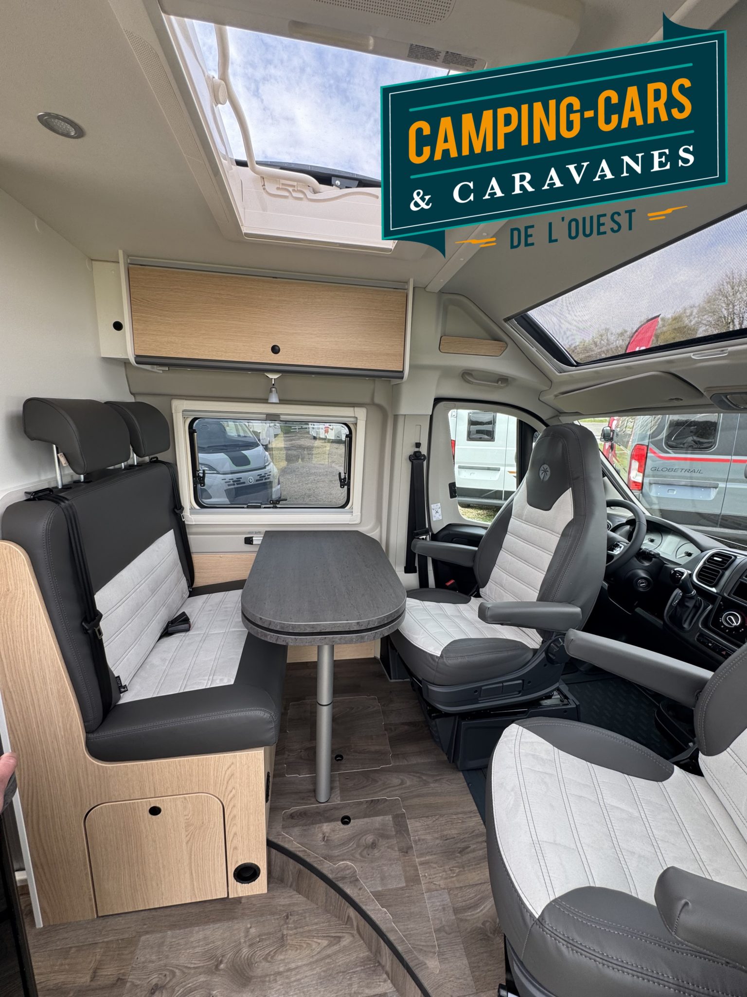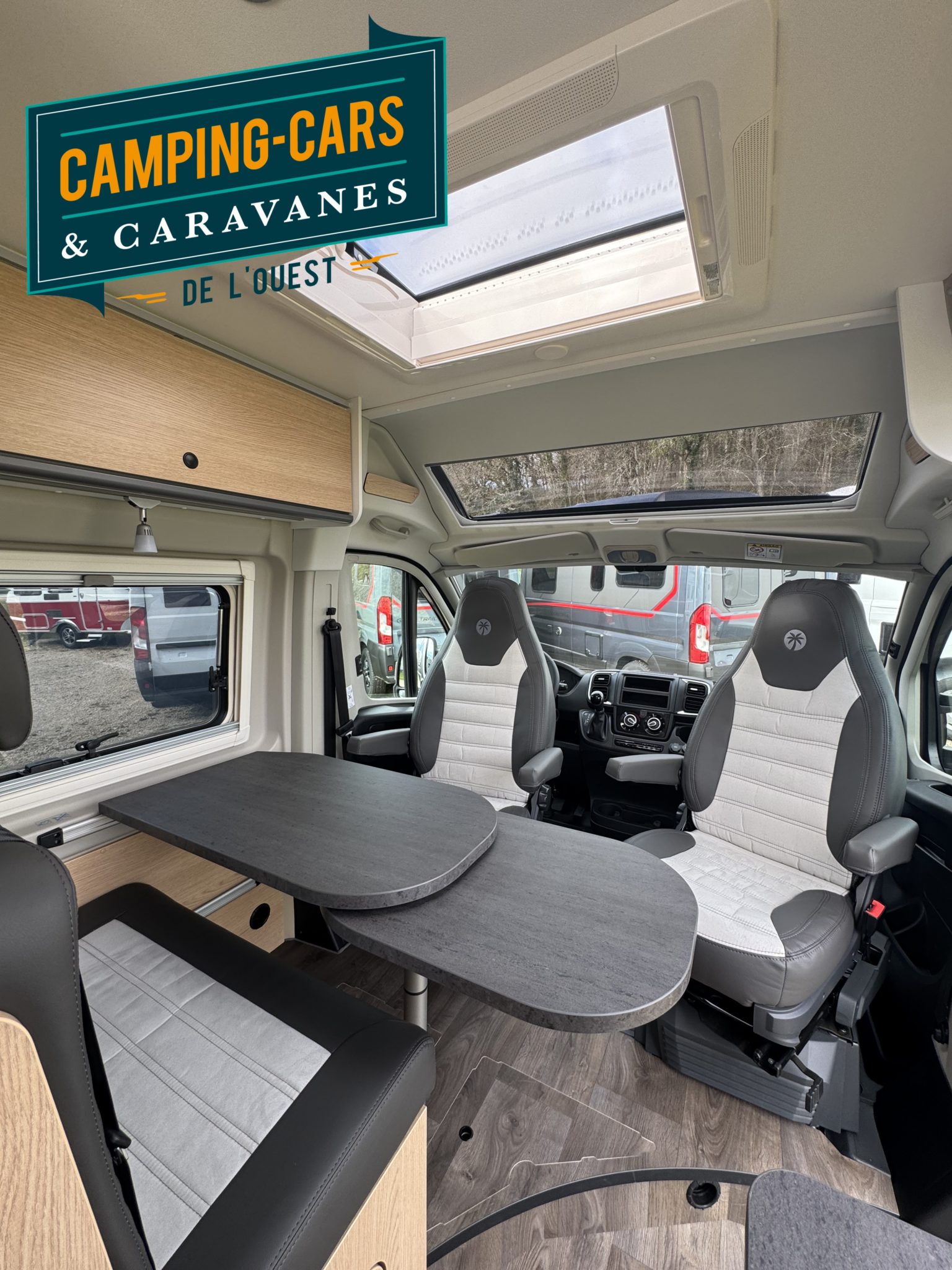 – Sièges conducteur et passager avec 2 accoudoirs et housses coordonnées à la cellule (Captain Chair)