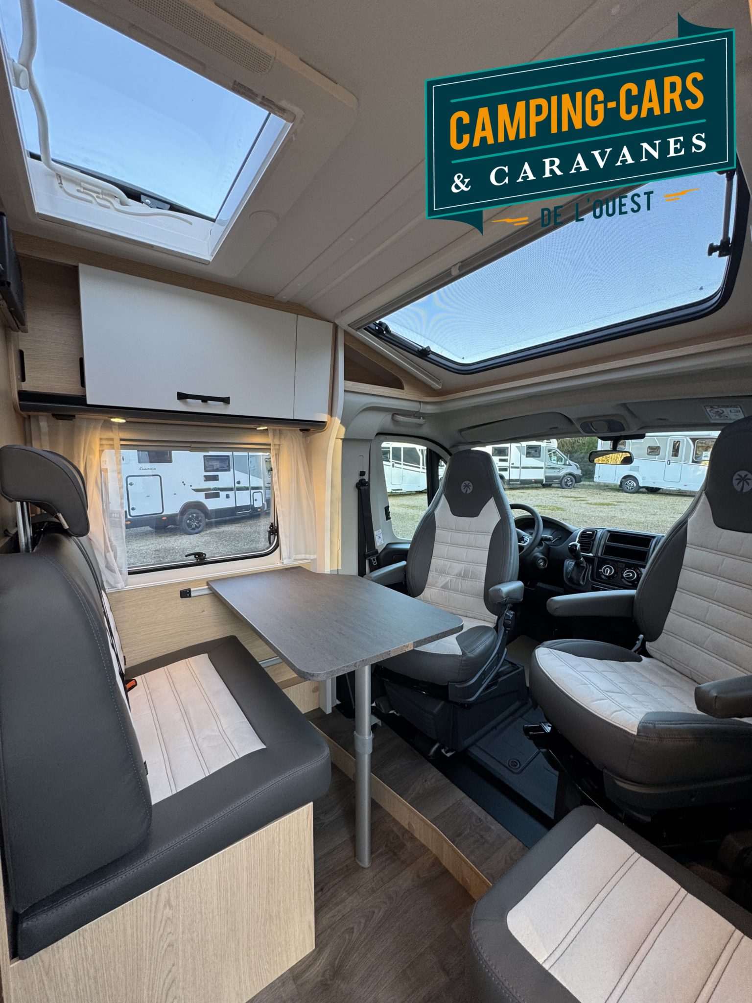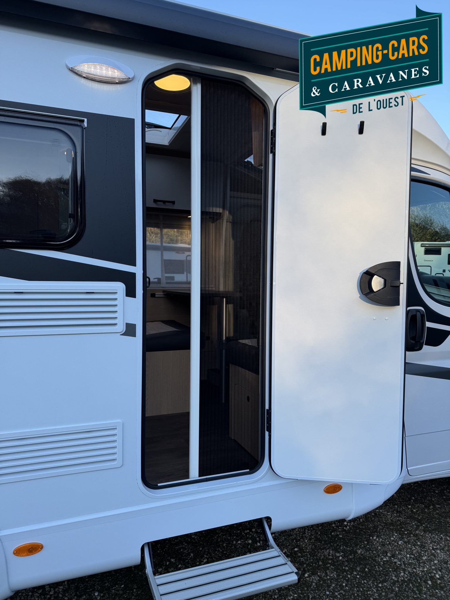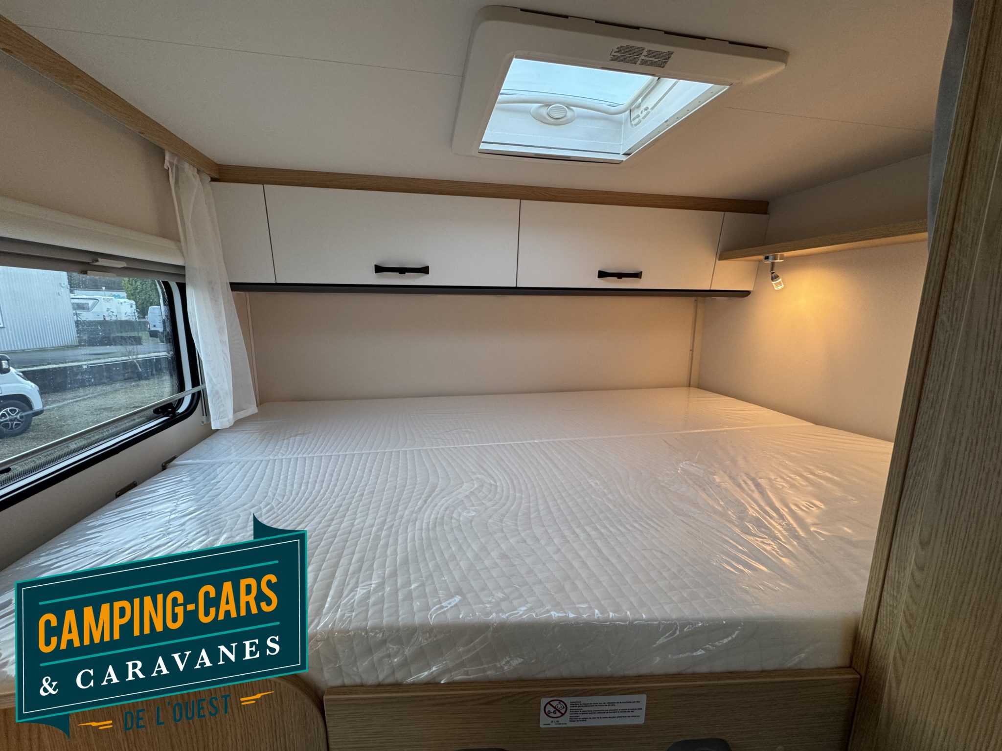– Pack Soleil : Bandeau lumineux entre feux arrière, Porte cellule avec moustiquaire, Miroir avec patères, Lanterneau panoramique 70 x 50 cm, Lanterneau transparent 40 x 40 cm
