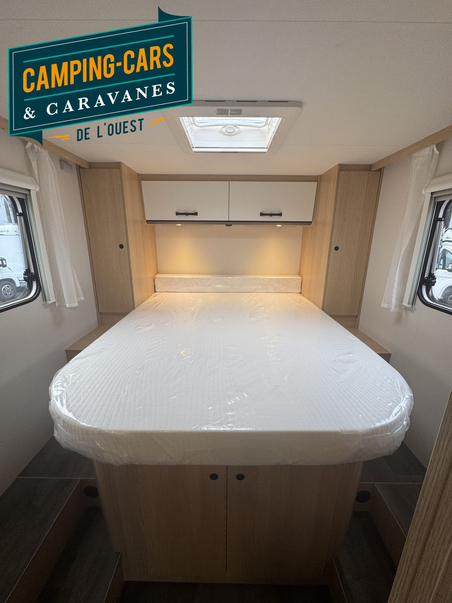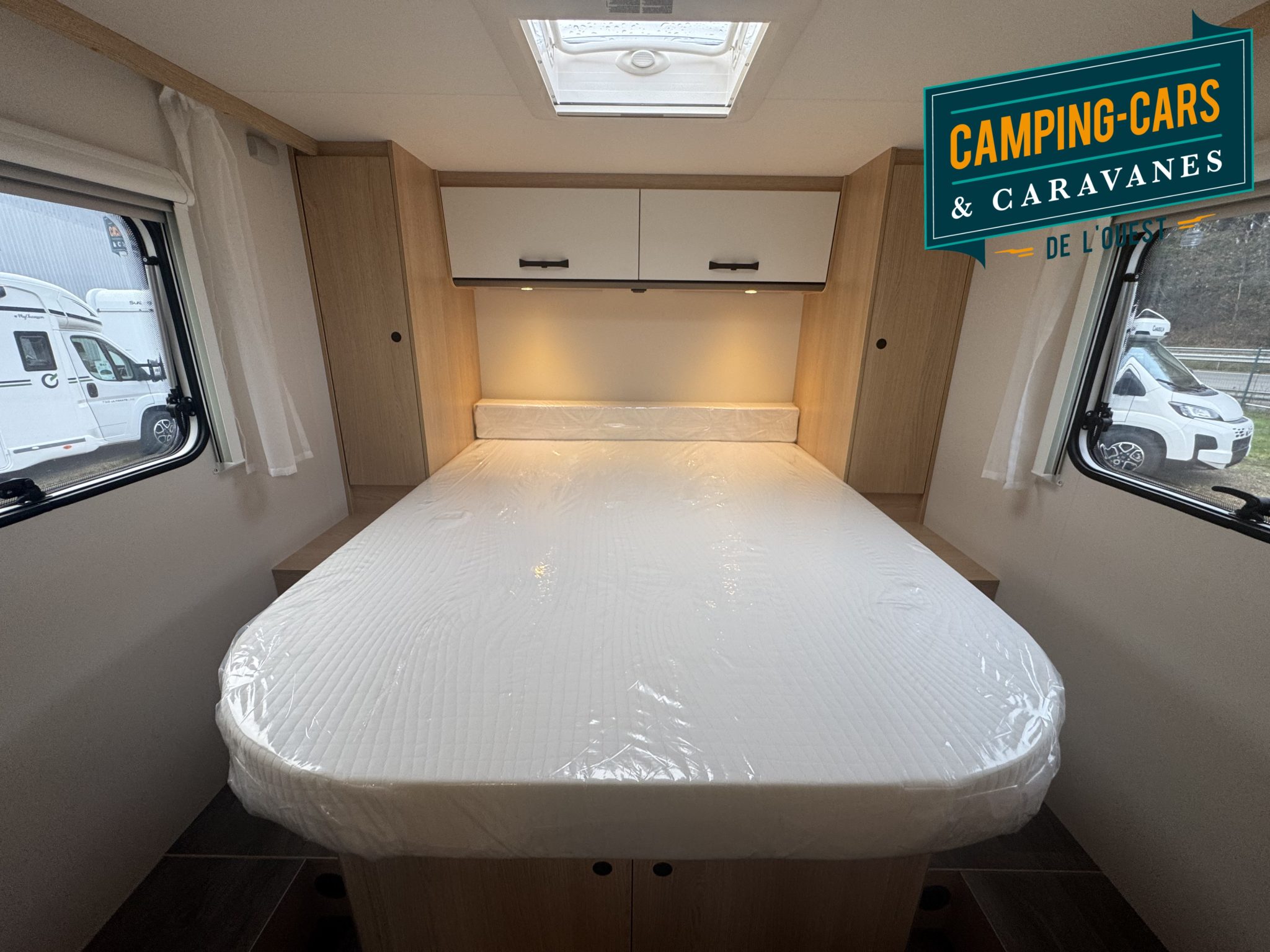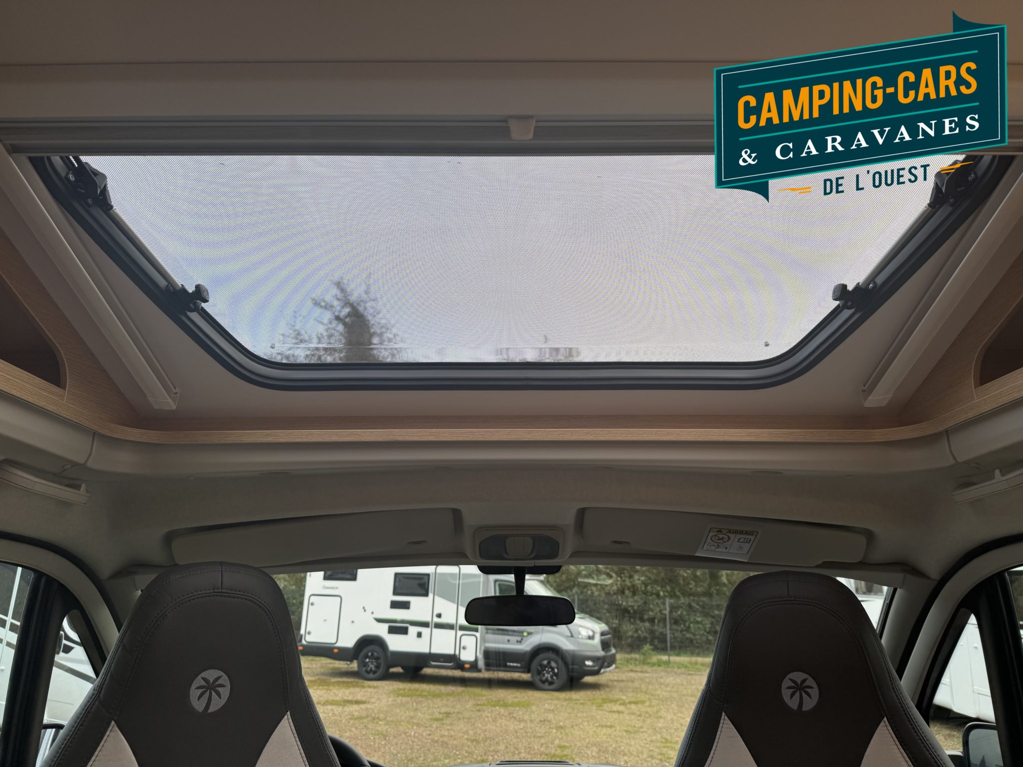 – Pack Soleil : Bandeau lumineux entre feux arrière, Porte cellule avec moustiquaire, Miroir avec patères, Lanterneau panoramique 70 x 50 cm, Lanterneau transparent 40 x 40 cm
